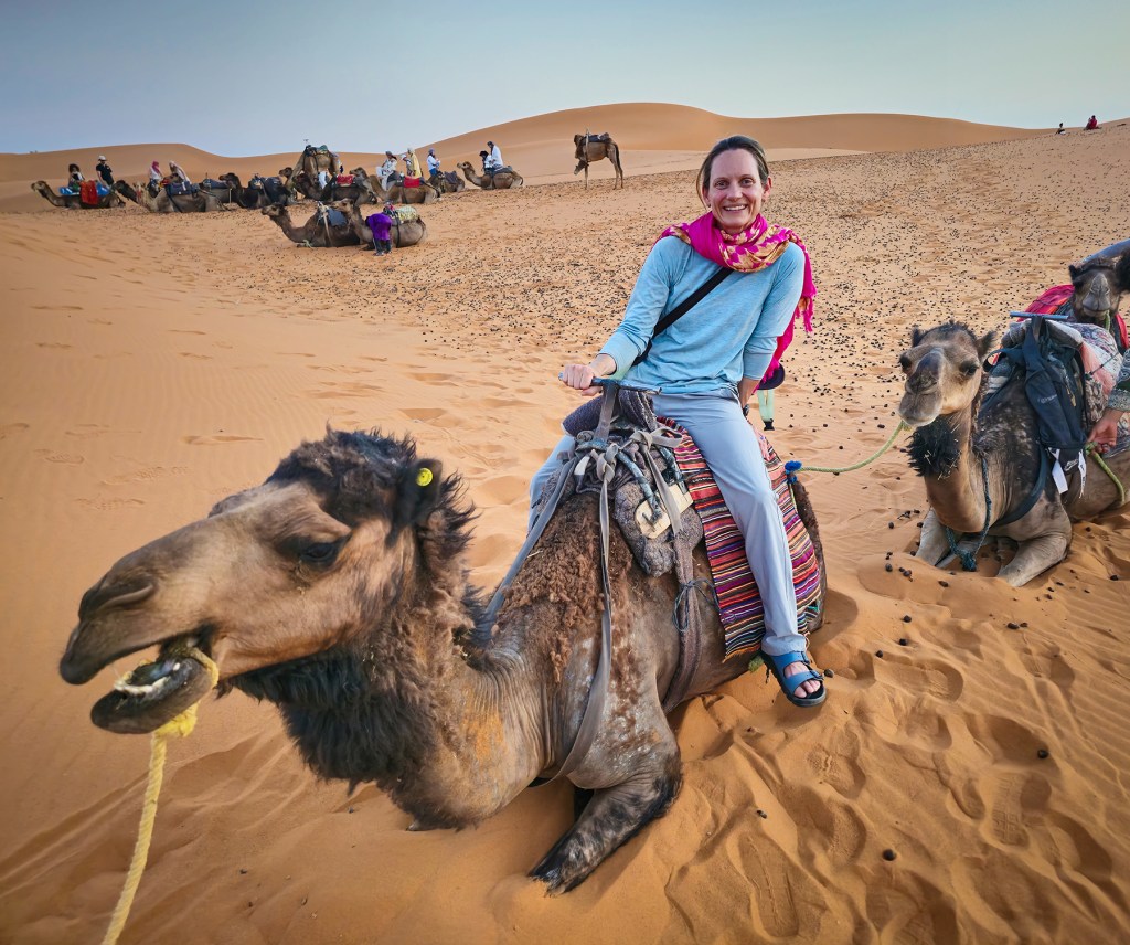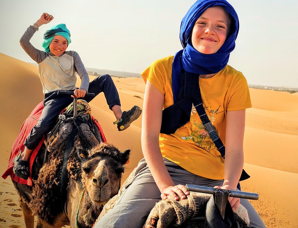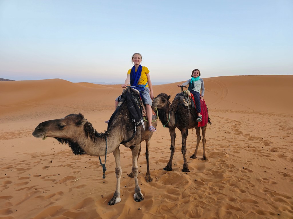 I loved the feeling of being on the edge of something vast and unknown in the Sahara! The dunes were more beautiful than I had imagined, and my favorite part of this leg of the trip. Also, I’d like to take a moment to appreciate Pinkie Pie, Boulder, Sir Camelot, and my personal favorite, DromeGary, who were magnificent companions to carry us to our desert camp. Sure, it was a completely manufactured tourist experience, but at the same time, our family was for a brief moment our own little camel caravan across the Sahara, and that was pretty neat.