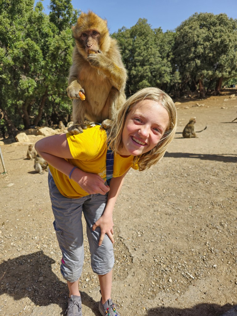 It was memorable to deliver a cautionary lecture to our children about the importance of not approaching wildlife too closely, open the car door, and find that within thirty seconds there was a barbary macaque atop everyone’s head except for mine.