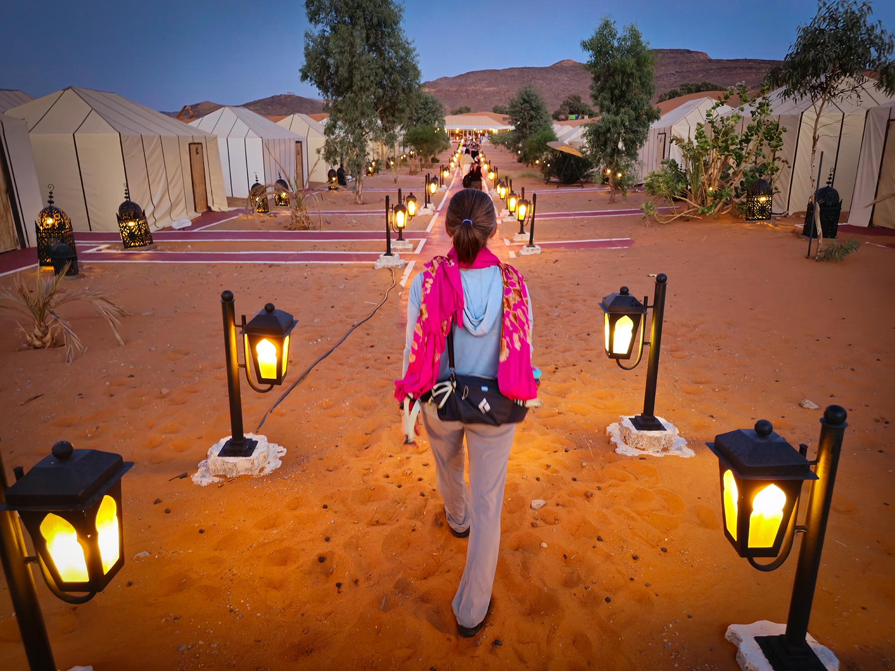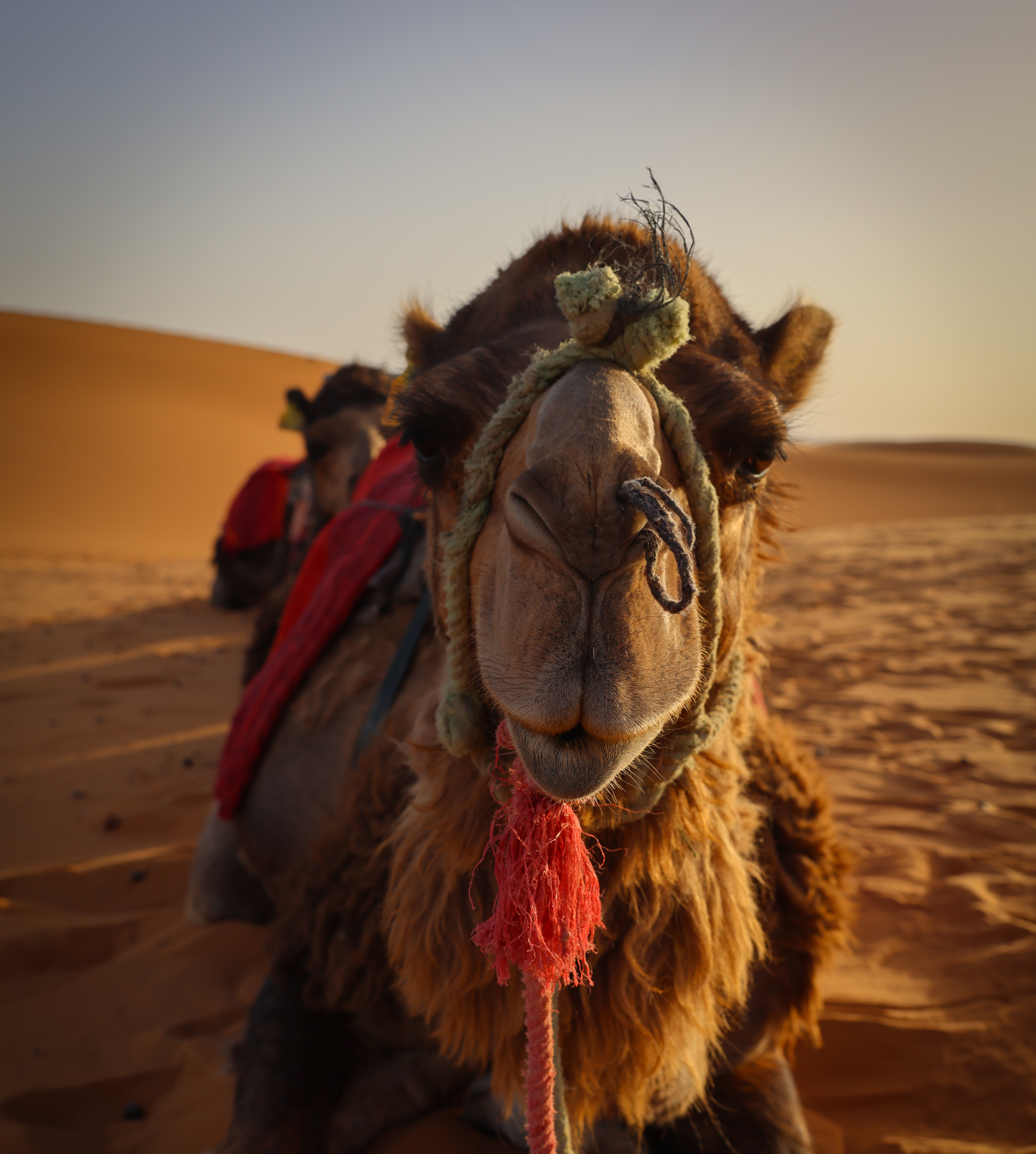 After seven very eye-opening hours (filled with a plethora of questions by Sonya and answers by our driver, Amar) we arrived in Merzouga, on the northern edge of the Sahara Desert known as Erg Chebbi. It was here that we set out on one of the most touristy things we have ever done – a camel ride into the desert and overnight stay in a Sahara desert camp. We shared this experience with 40 other tourists – sadly we missed some memo about needing at least 3 different extravagant wardrobe changes for the evening. Fantastic and amusing people-watching opportunities ensued, and I think the camels appreciated all of the humans’ fashion efforts.