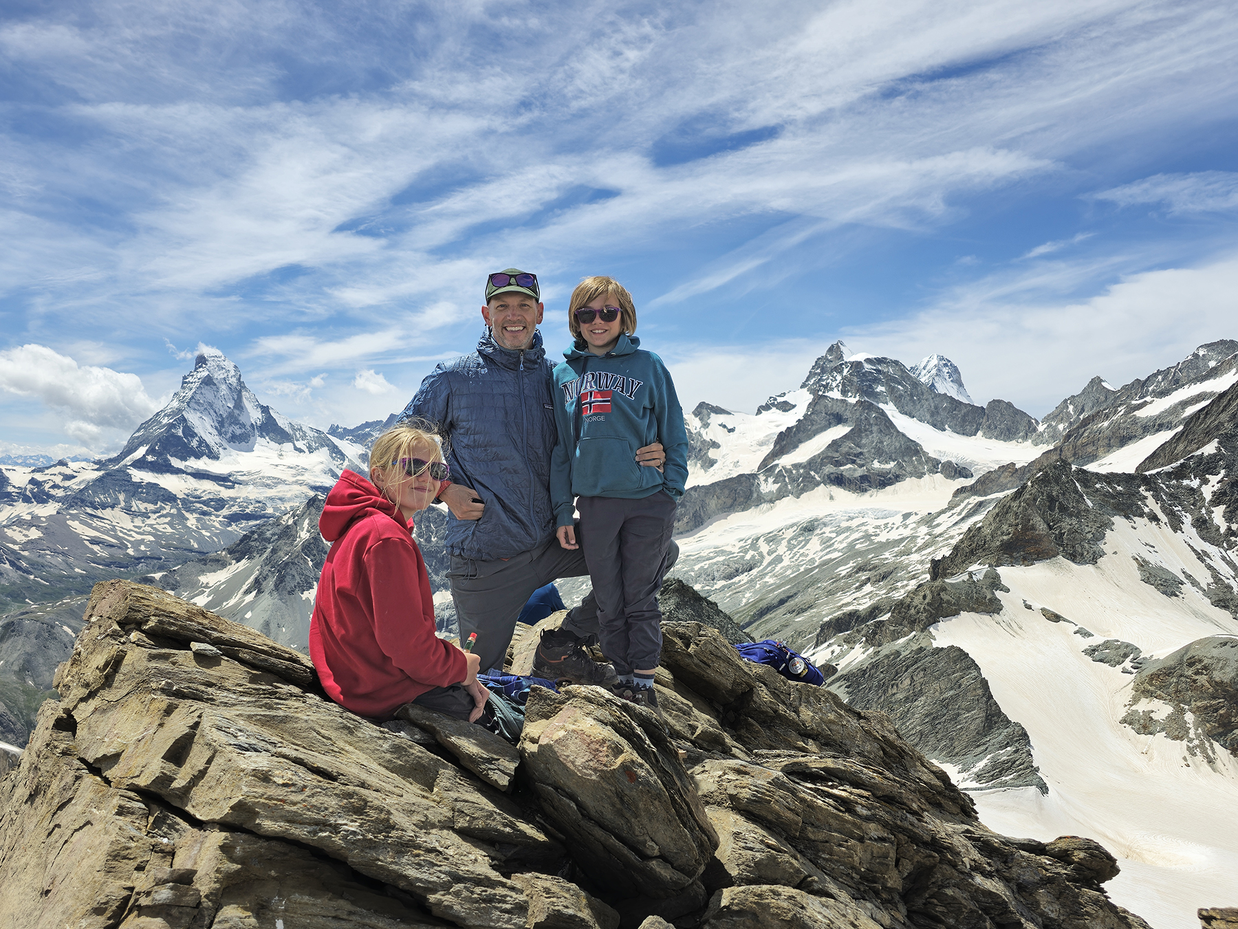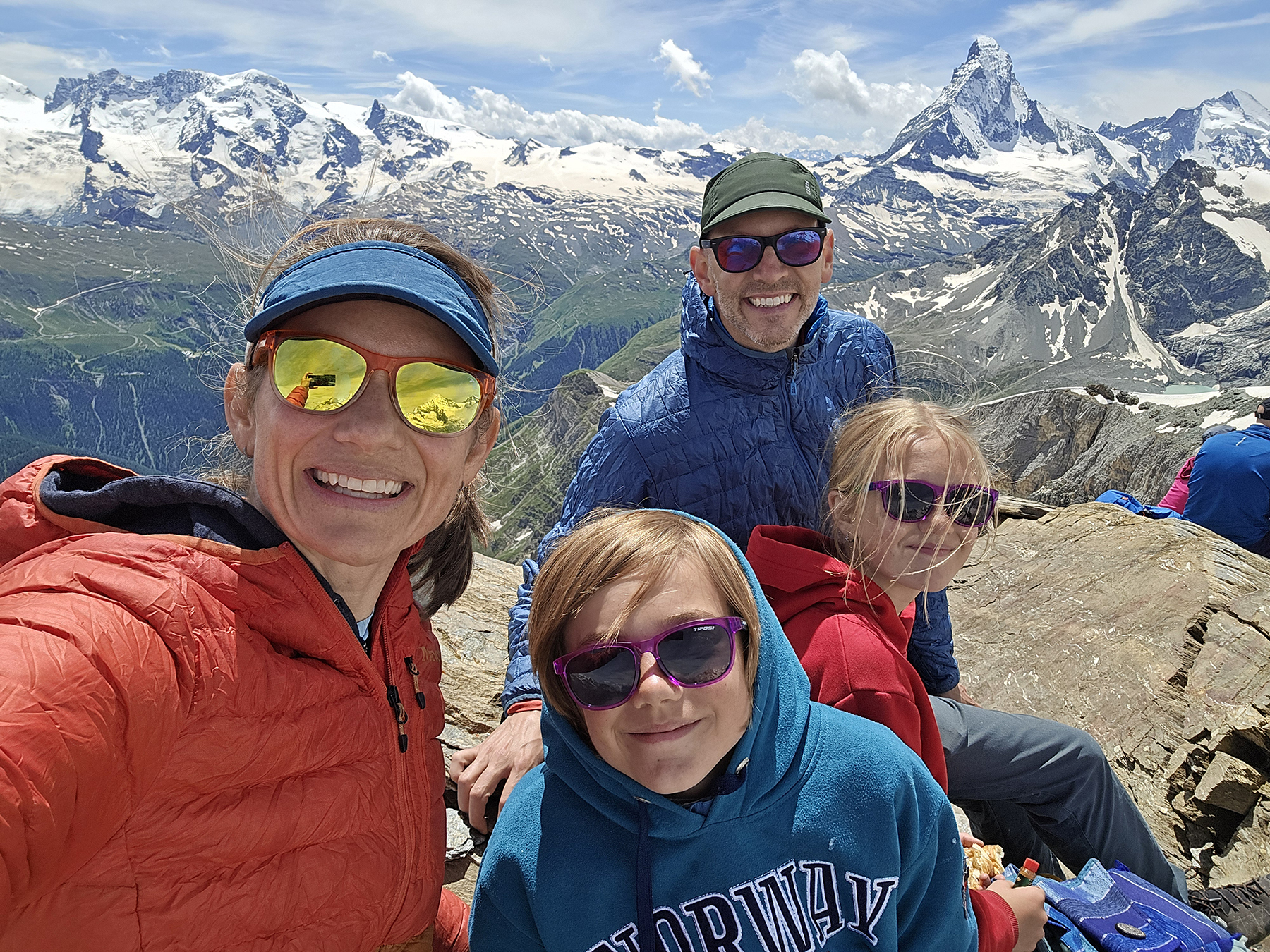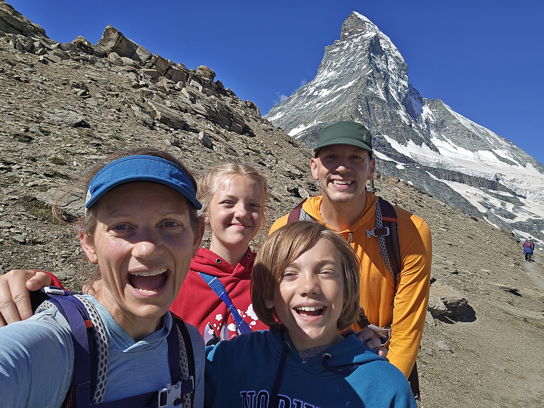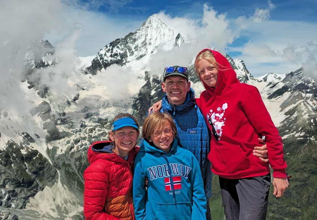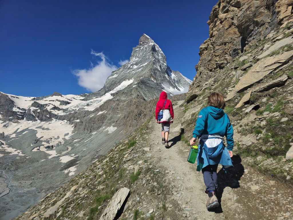 We spent a week in Zermatt, hiking along our favorite trails and showing the kids the exact spot where Howie proposed. We also did some alpine routes, including a scramble up the lower ridge of the Matterhorn to the climbers’ Hörnli Hut. It was fun to encounter so many climbers attempting/returning from their summit bid on this iconic peak.