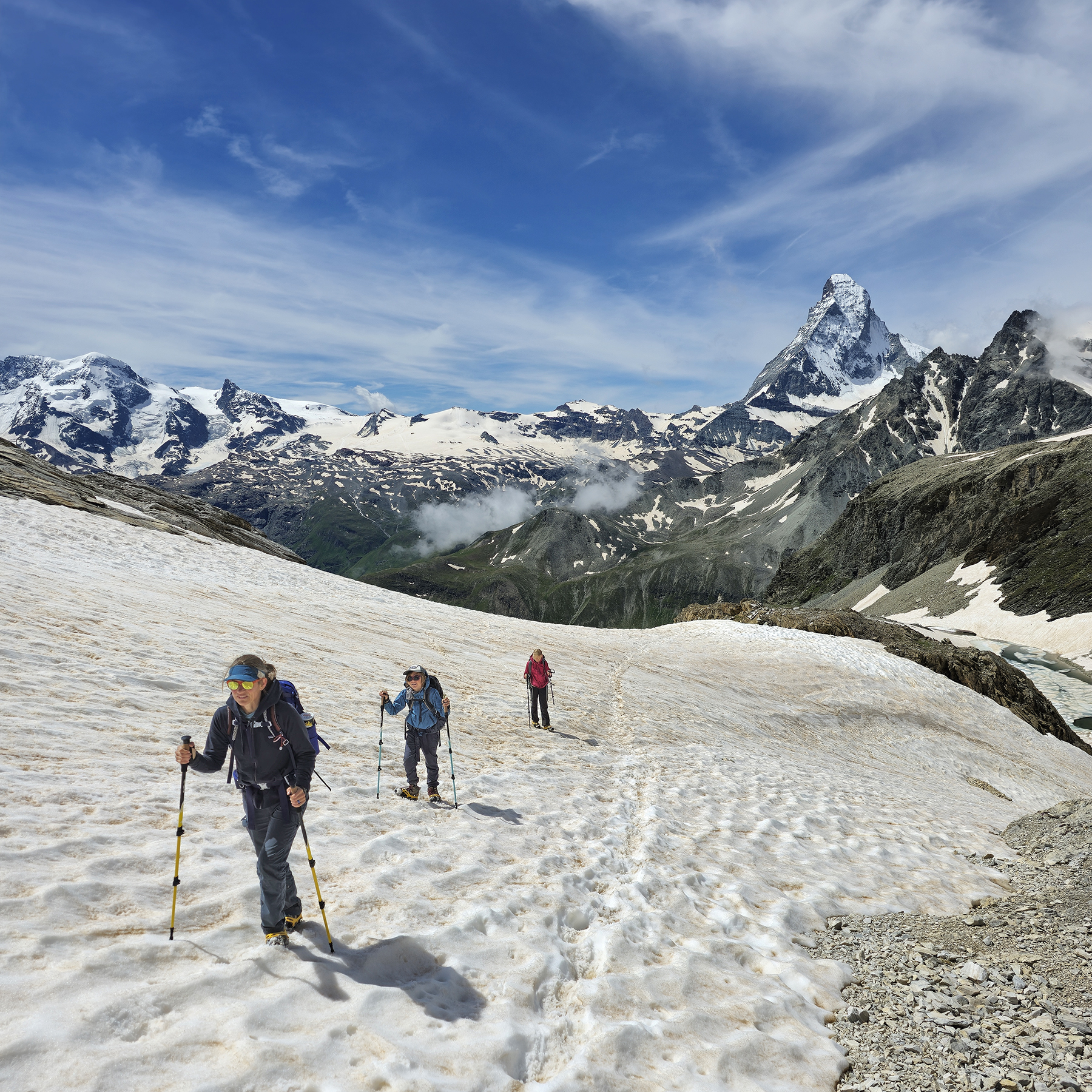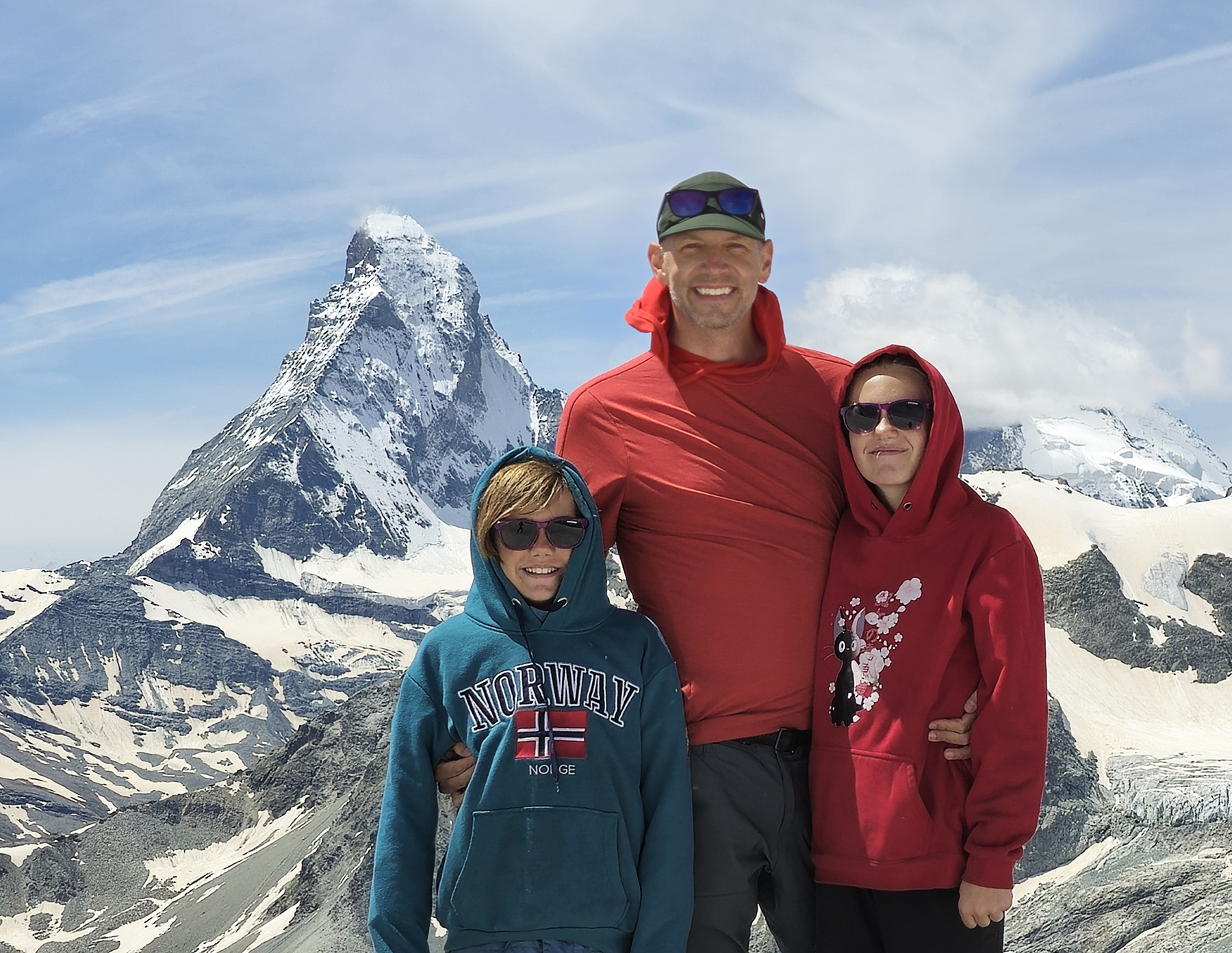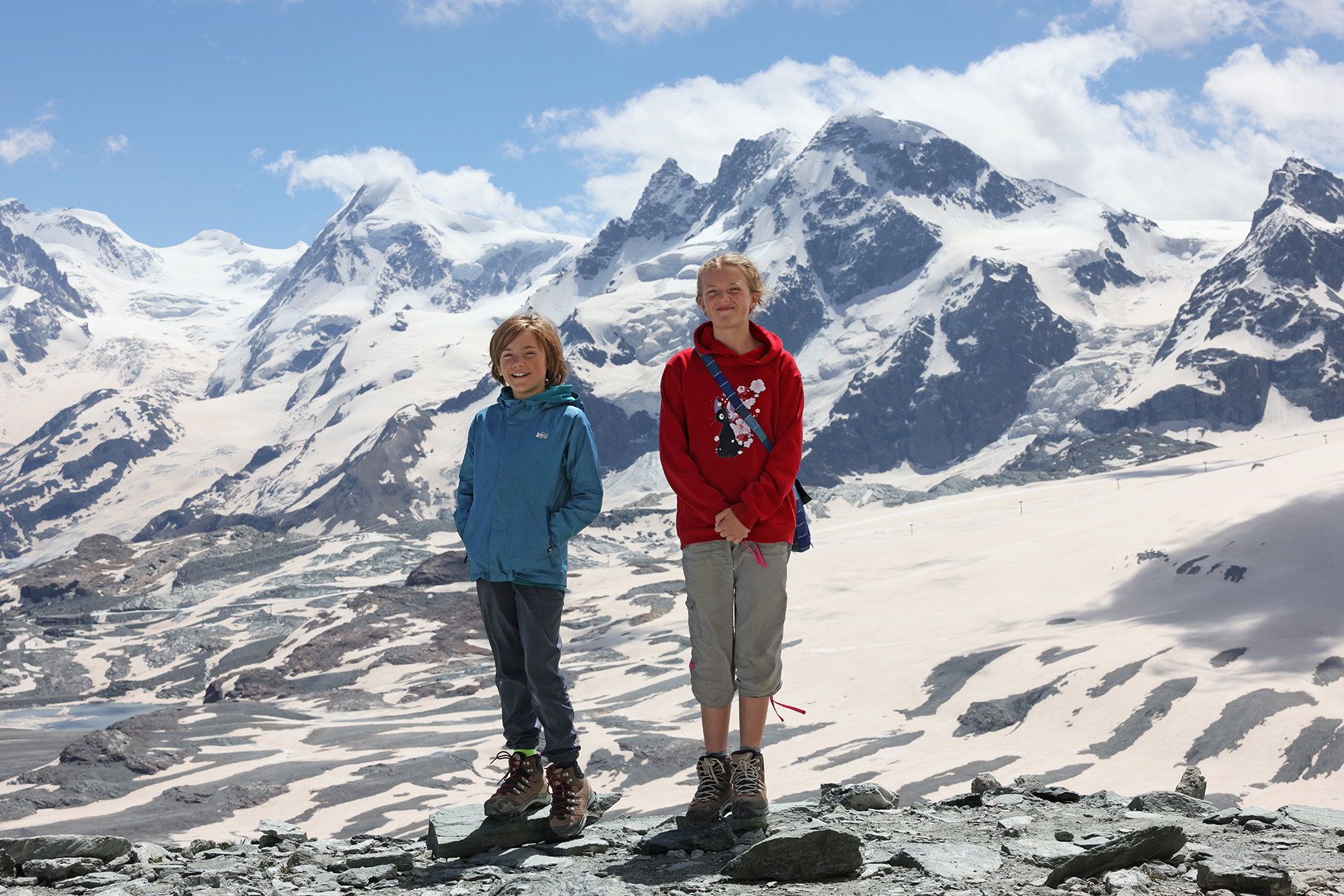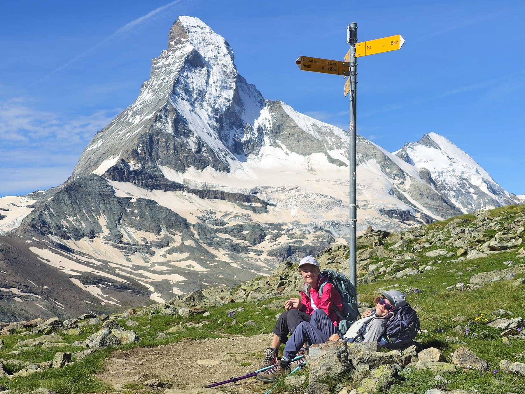 We spent a week in Zermatt, hiking along our favorite trails and showing the kids the exact spot where Howie proposed. We also did some alpine routes, including a scramble up the lower ridge of the Matterhorn to the climbers’ Hörnli Hut. It was fun to encounter so many climbers attempting/returning from their summit bid on this iconic peak.