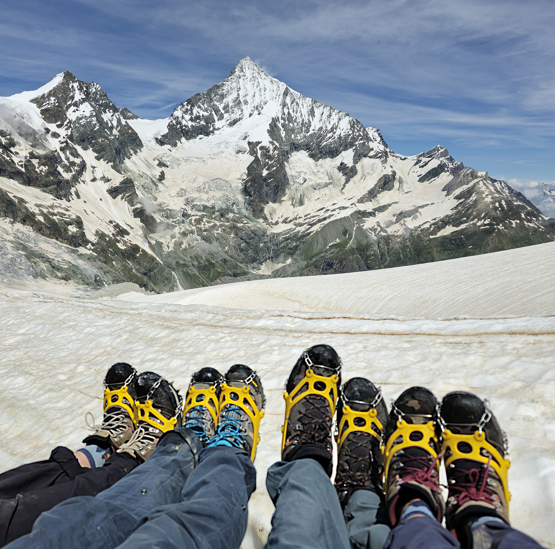 Following the Swiss fondue burn incident, H was unable to comfortably wear any footwear other than flip-flop sandals – so, our previous level of hiking and climbing intensity had to be dialed waaaaaaay back. We spent 2 more days in Zermatt with H in full-on chill mode, keeping the burns covered in antibiotic ointment, trying to minimize risk of infection. Howie and I did some short day hikes while the kiddos became “base camp managers” at the campground (don’t worry – they had food, excellent wifi, walkie-talkies for constant contact with us, and were a-ok with some downtime).