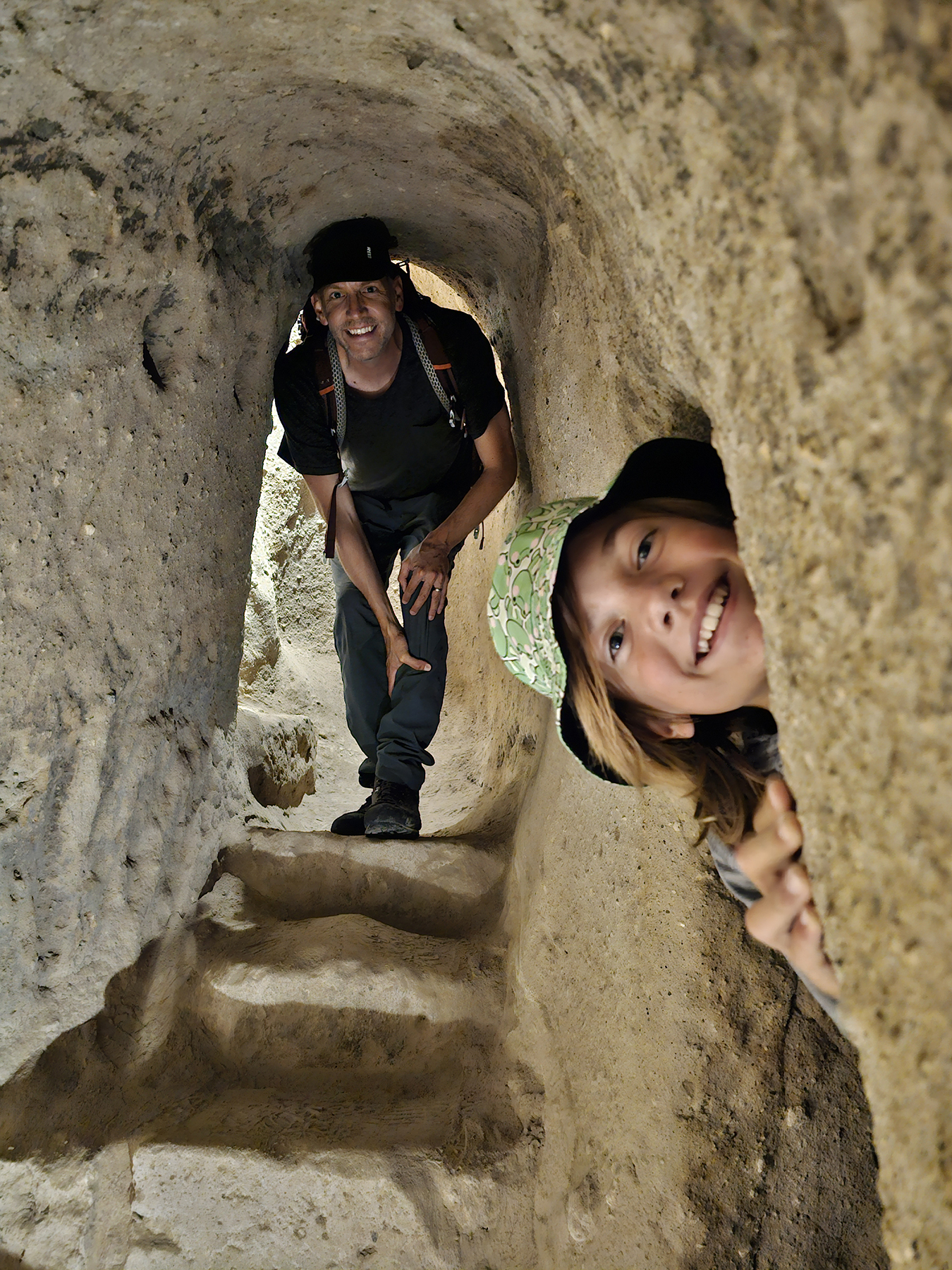 We spent five days exploring the fascinating area around the small town of Göreme. The Cappadocia region has been inhabited by humans for at least 3,500 years, and is home to an extensive network of abandoned underground cities. The largest of these cities (Derinkuyu) had 20,000 inhabitants and extended for 12 stories underground! Our kiddos LOVED exploring the ancient labyrinth of underground tunnels, climbing up and down through narrow chimneys and passageways, playing the most epic (and dusty/dirty) game of hide-and-seek they could imagine!