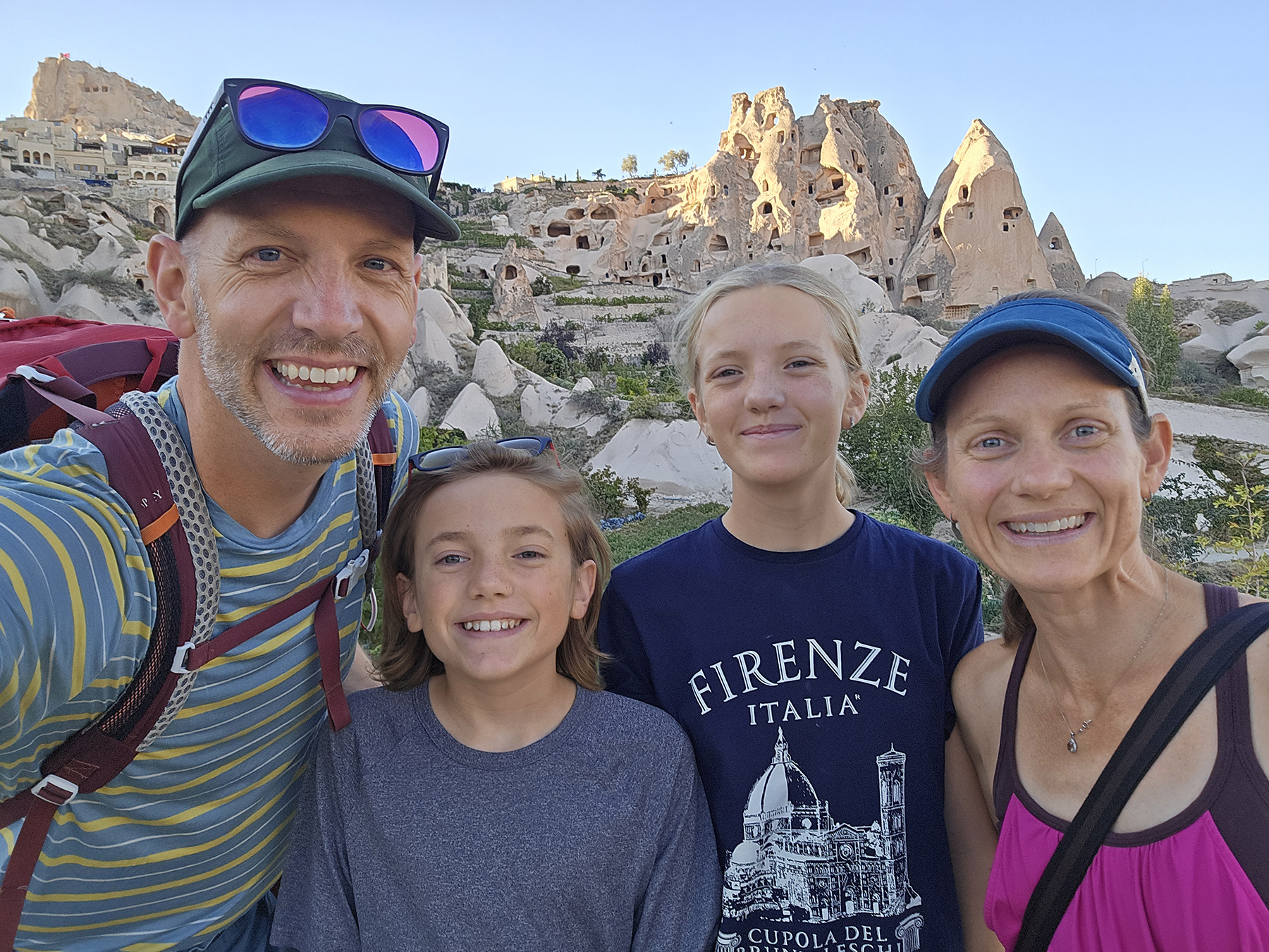 After 5 days in Istanbul, we traveled to the region of Cappadocia in central Türkiye. When we were planning this year, we made a commitment to overland travel by public transport whenever reasonable – not only for environmental reasons, but also because using local public transport does give you a bit of a closer connection to the local people/culture. This commitment to travel by overland public transport is how we found ourselves on a 14-hour overnight bus ride without ventilation, a chainsmoking driver, our vomiting child, and no access to a bathroom. There’s no denying… it was definitely “memorable” and “authentic.” We’ll spare you the rest of the painful details.