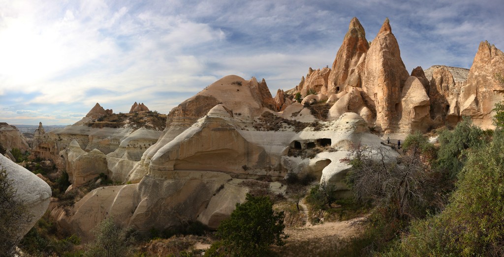 Hiking among the fairy chimneys and hoodoos in Cappadocia was delightful – paths winding along the poplar and apricot trees would open up to views across the badlands, punctuated by improbable cave dwellings, some thousands of years old, and some still inhabited!