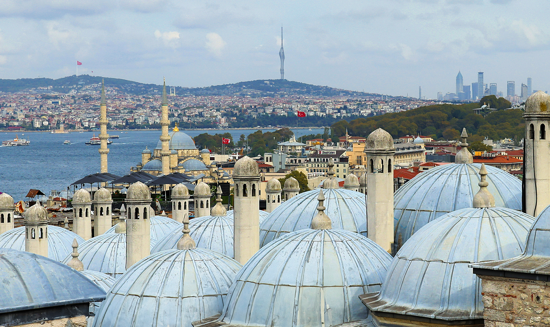 We stayed in central Istanbul, the Golden Horn/Sultanahmet neighborhood – in the shadow of the incredible Blue Mosque and the Hagia Sophia. Most evenings after dinner were spent on our hotel’s quiet rooftop terrace, snacking on Turkish delight and taking in the stunning views: to the south, hundreds of ships lined up to enter the Bosphorus Strait… and to the north, the architectural masterpiece of the Sultanahmet Camii.