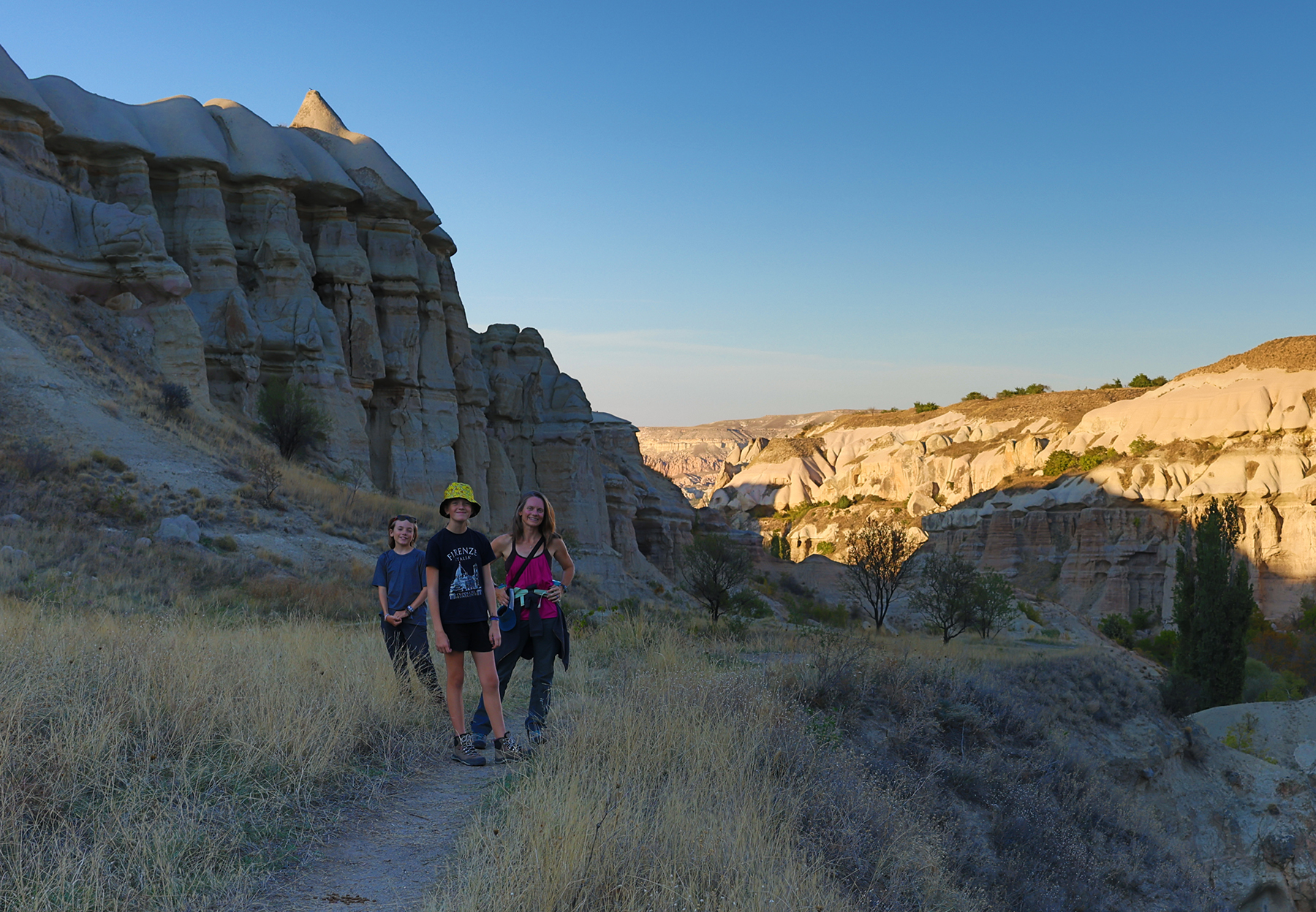 For me, our time in Türkiye was a mixed bag. The roughest part was having a sick kiddo, and the overnight bus from Istanbul to Göreme was a pretty intense experience which I would prefer never to repeat (we changed to a different bus company on the return route and things went much better). It was fascinating to experience the vibrant city of Istanbul – the size of the city is absolutely mind boggling, and the traffic is insane! My favorite part of our Türkiye adventure was spending time in the lovely town of Göreme with Ali and his family. There were heaps of hiking trails through the valleys around town and we found great new routes to wander and explore every day.