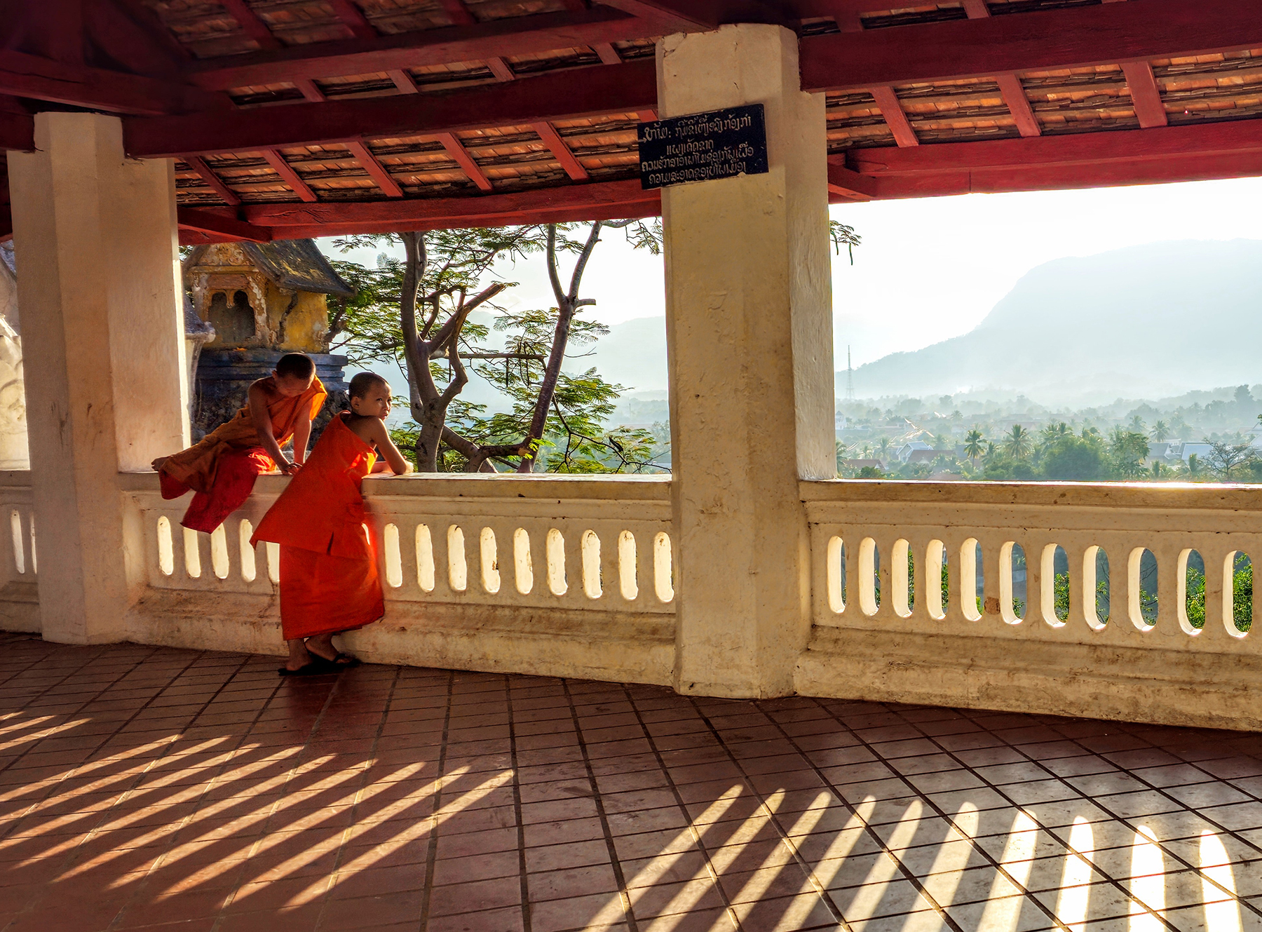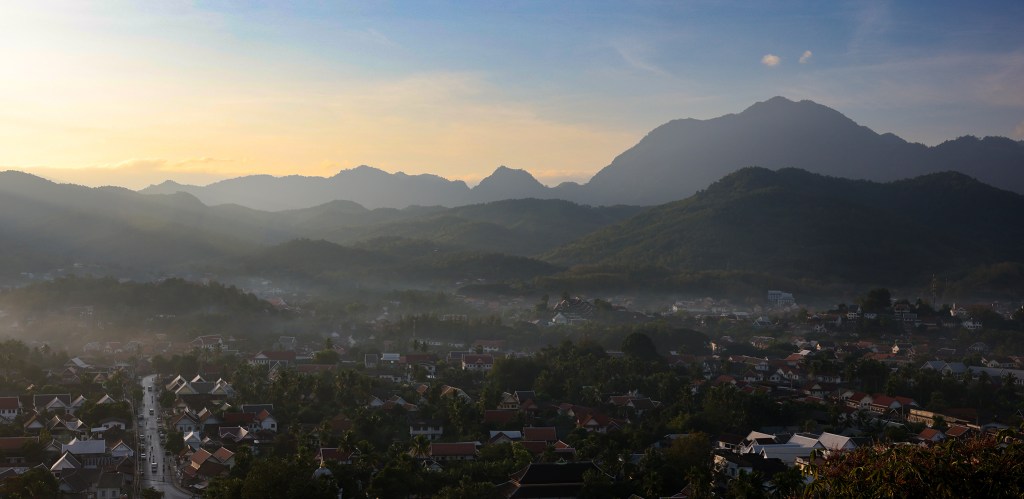 Howie and I spent a quiet morning watching the sunrise from a Buddhist temple atop Phou Si Hill. Located on a peninsula in the heart of Luang Prabang, the hill is bordered by both the Mekong and Nam Kahn Rivers. The views of the city from the top were absolutely spectacular.