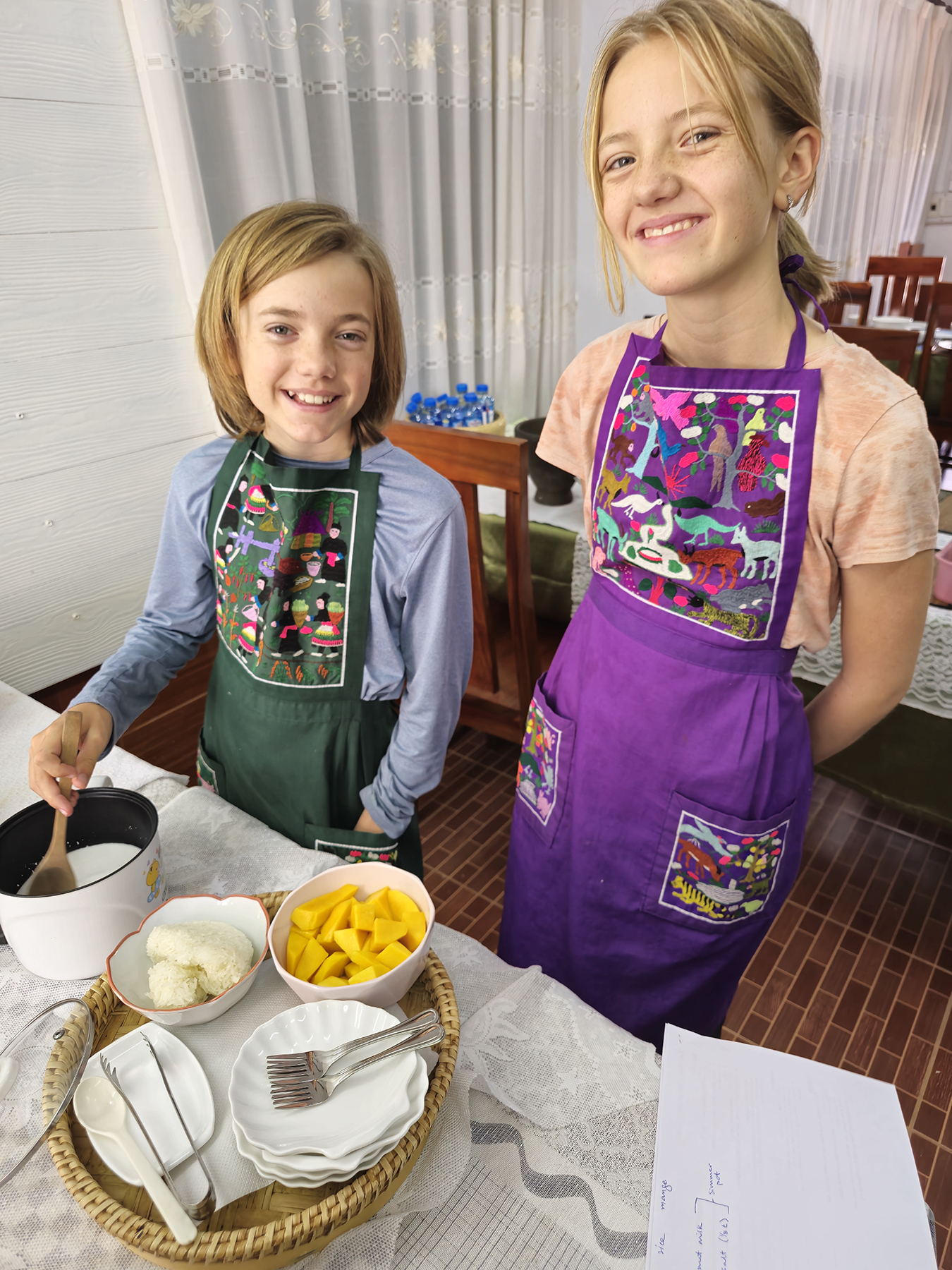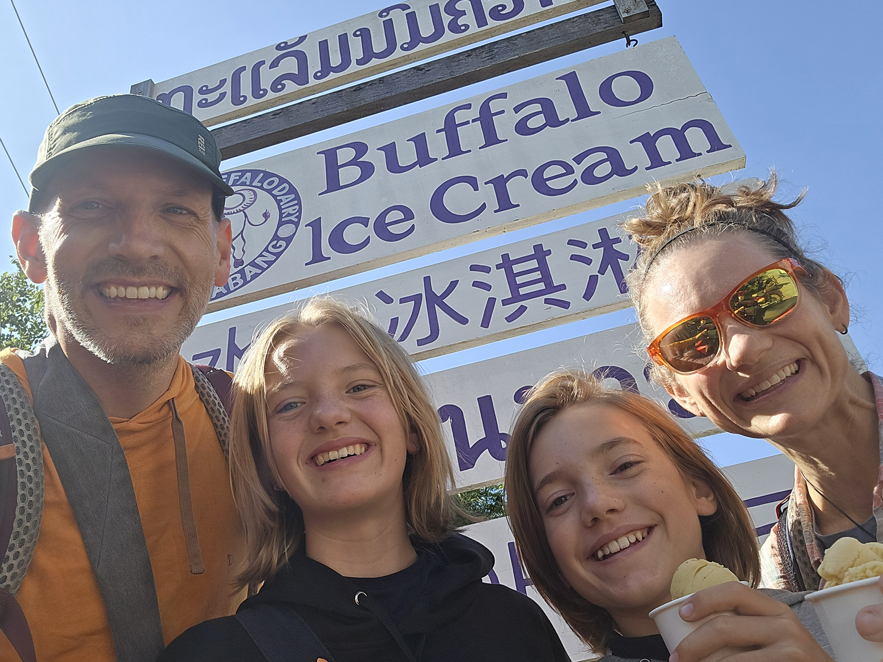 In contrast to our visit to the UXO museum, we were heartened by the time we spent at another location, the Big Brother Mouse school. The school itself was started as a nonprofit educational project by a retired American publisher working together with Laotian college students, with the goal to promote literacy by publishing and providing books featuring accessible Laos-centered content. It also provides a place for students of all ages to improve proficiency in spoken English by hosting meet-ups for conversation with English-speaking visitors. Our kiddos had a great time getting to speak at length with a number of students – it was great to interact in a space that was not centered on tourism, and we appreciated supporting an organization whose mission is unambiguously good.