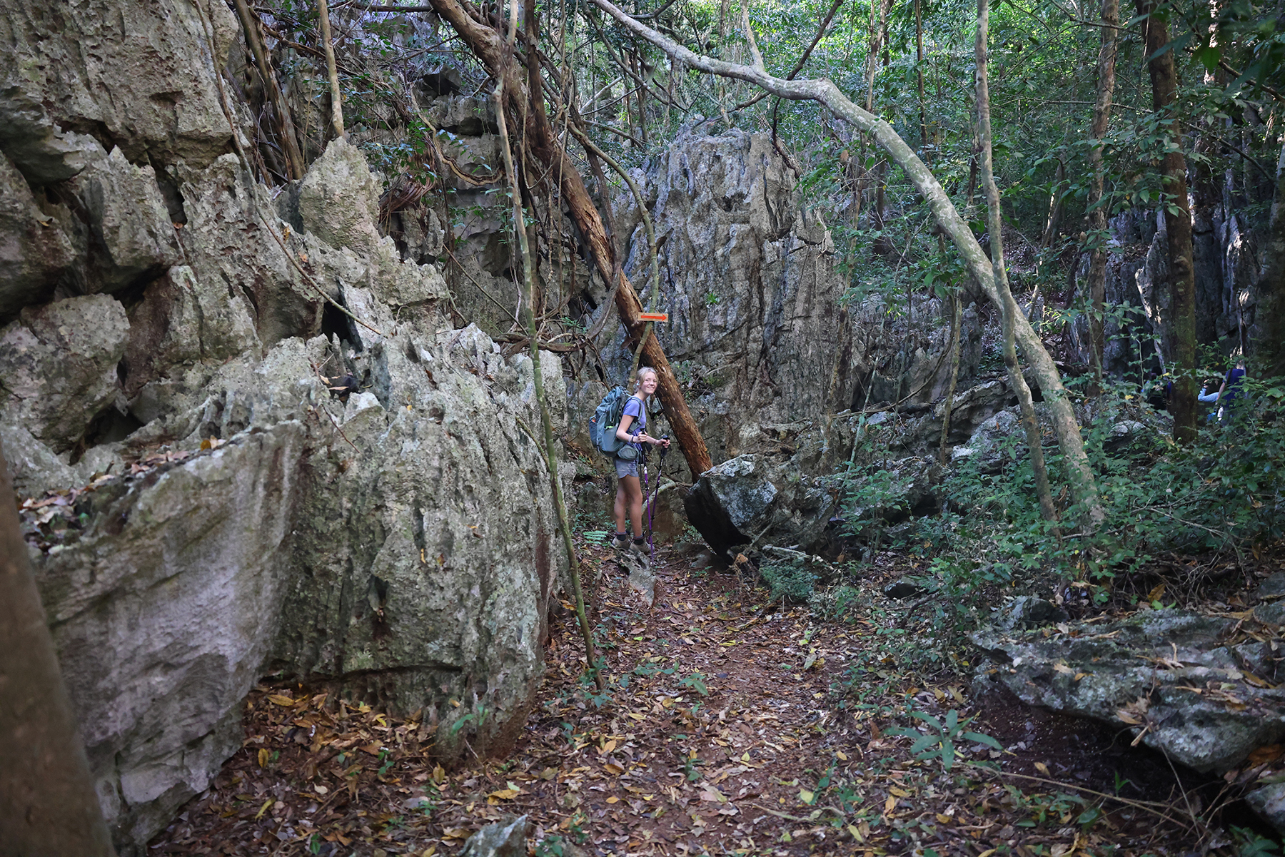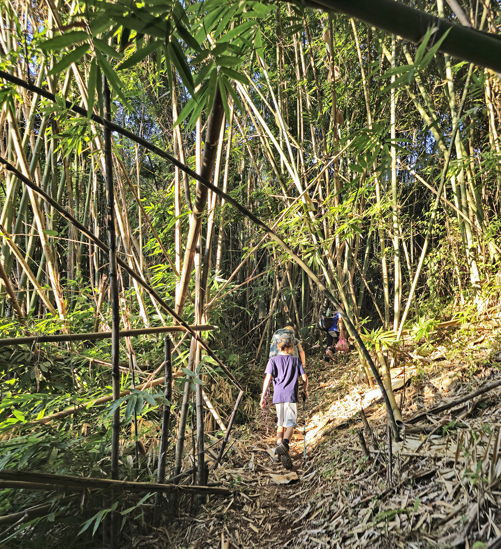 We arrived at the trailhead and discovered the trail itself was completely new, only cut through the jungle and opened for hiking within the last month. We had been using an excellent GPS/trail app during our travels, and this was the first time in 7 months a trail wasn’t noted on our app. Not surprisingly, after about 90 minutes of hiking we started to seriously question the route, and it became apparent that our flip-flop wearing guide had never hiked the trail before. The path became more and more difficult to follow as we climbed over branches and boulders along the route. We pulled out our phones in an attempt to use Google Translate and discuss our concerns with our guide, only to realize we had no reception. Our guide noticed our concern (we weren’t subtle with our apprehension) and simply said: “sorry, you stay” as he disappeared into the woods to try to find a way back to the correct route.