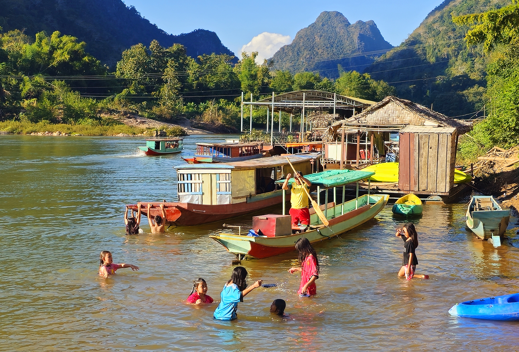 Our trip on the tiny longtail boat from Nong Khiaw to Muang Ngoy and back was also a highlight of our time in Laos. As we returned to Nong Khiaw in the evening, we passed local children cooling off and playing in the river while fishermen from small villages pulled in their catches for dinner.