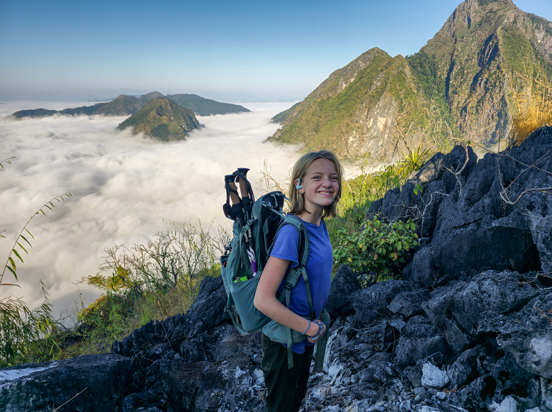 Apart from the unsettling moments during our ascent to the summit of the Phamery Viewpoint in Nong Khiaw, the night spent at the summit under the stars felt like a peak sabbatical year adventure moment. We were in a place that felt simultaneously unique, distant, unfamiliar, and stunningly beautiful, with just our own little family (and one utterly unprepared guide). Sleeping uncovered beneath the winter night sky, watching shooting stars, and seeing the sunrise over a blanket of clouds while surrounded by mountains rising up out of the jungle all made for a night we will forever remember.