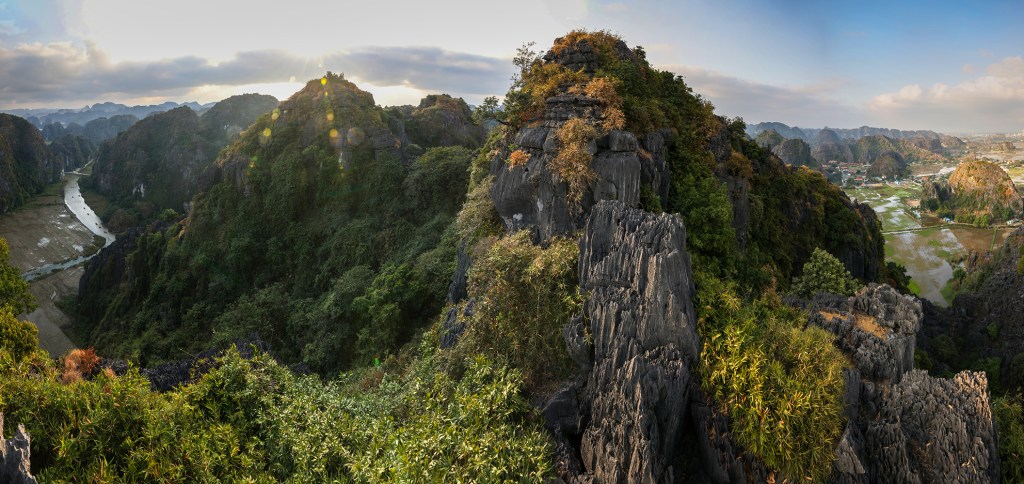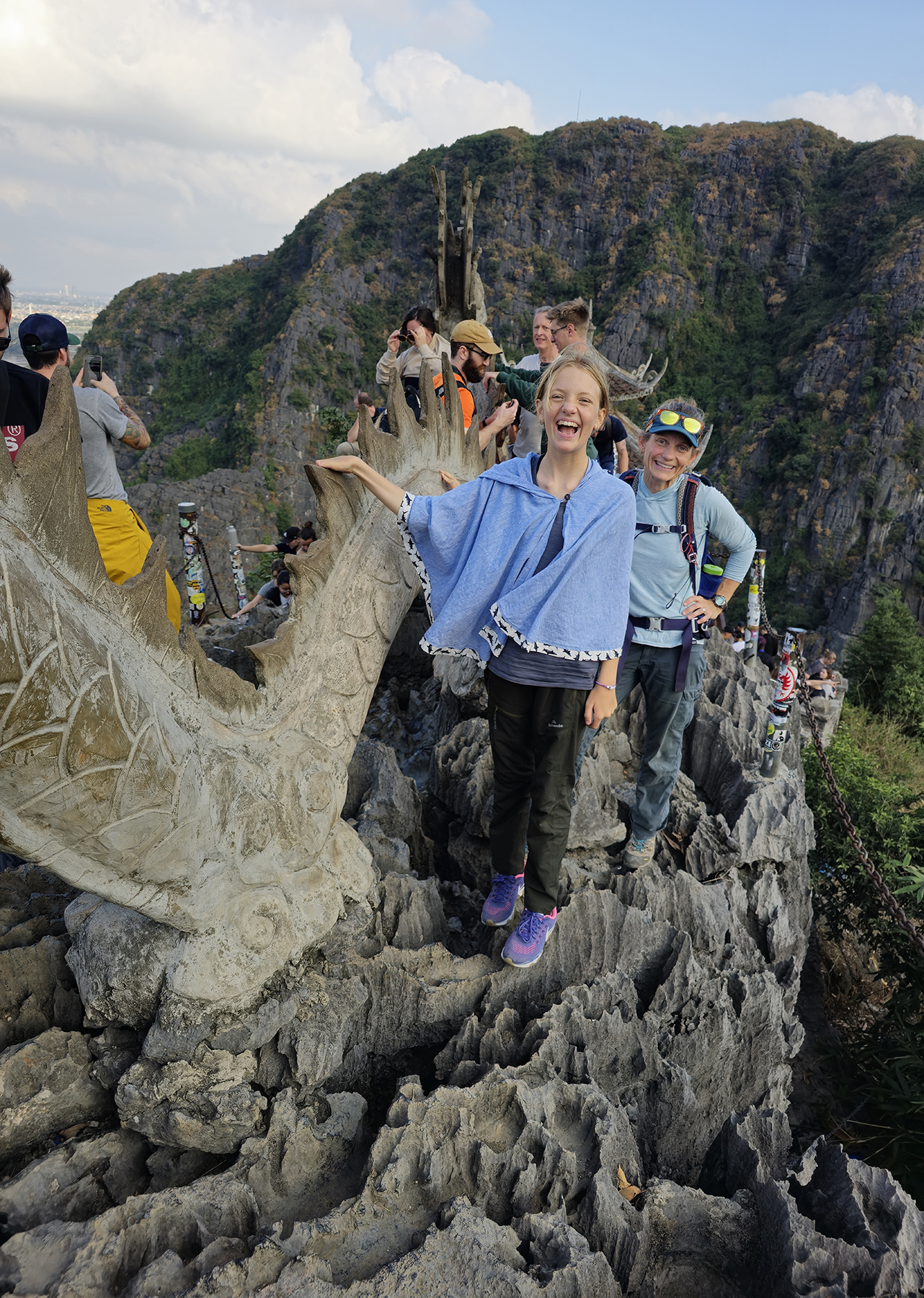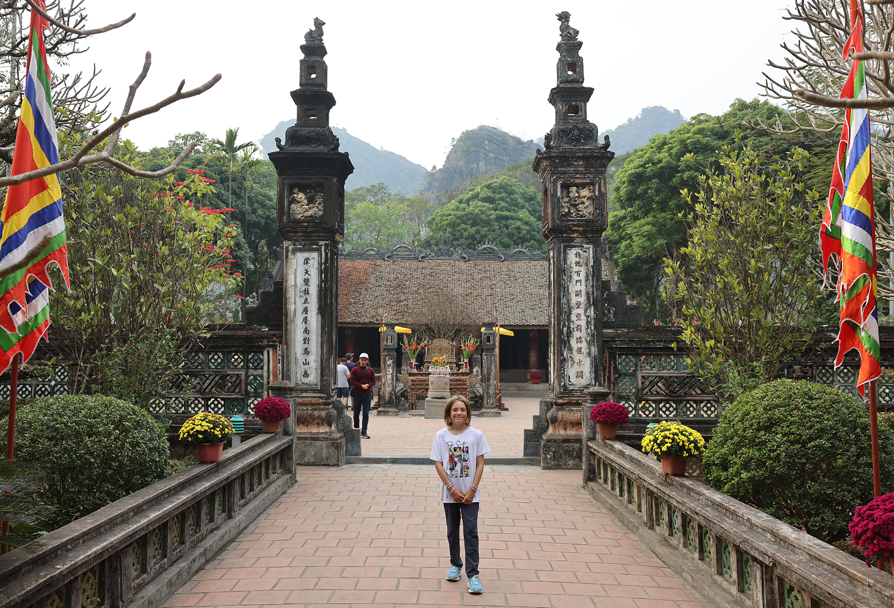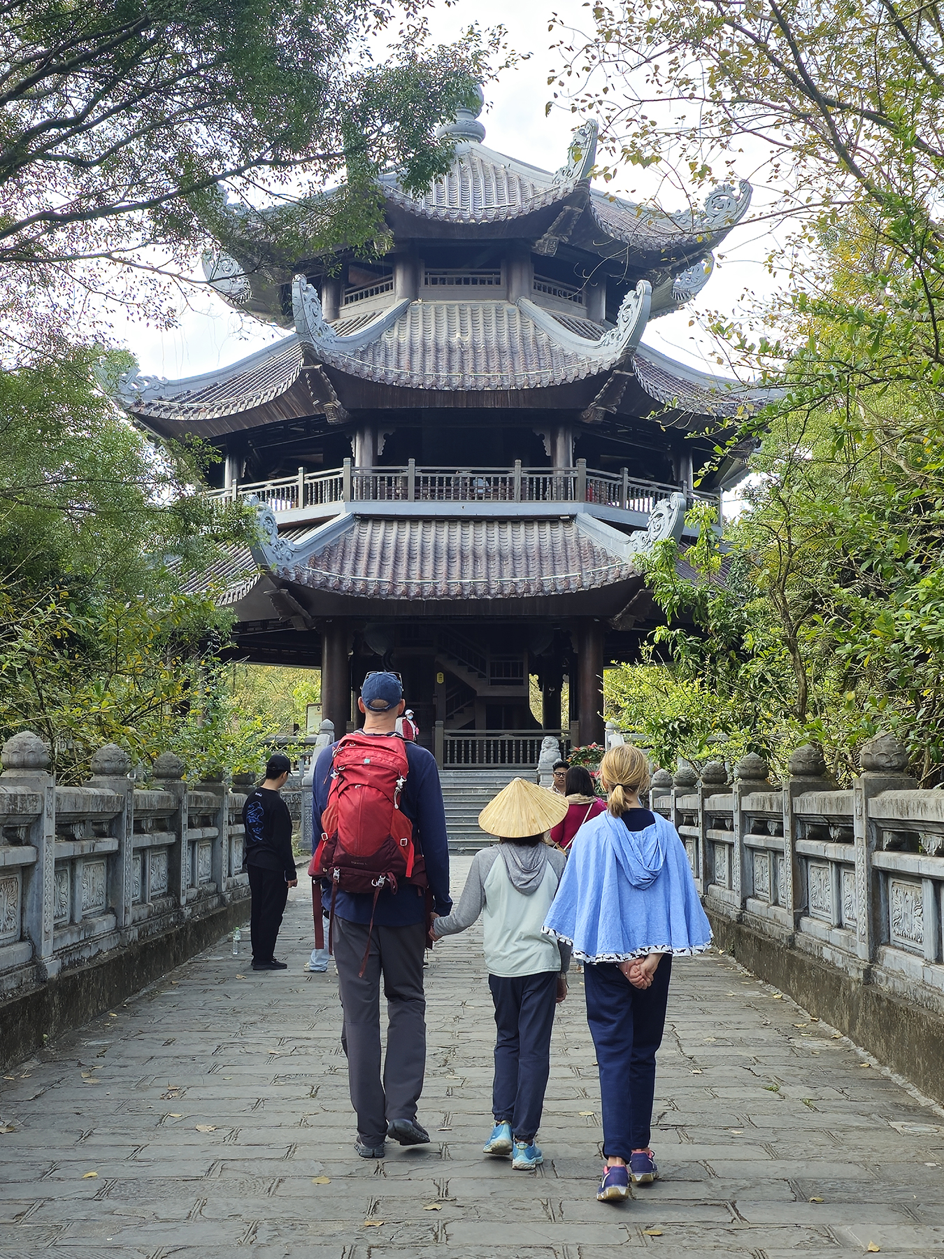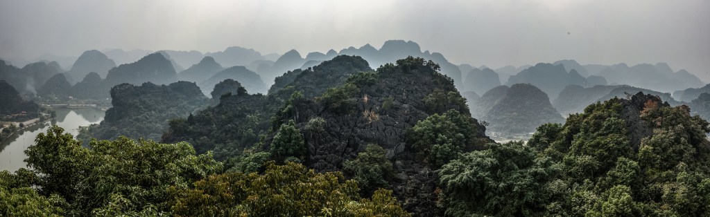 The area of Ninh Binh is breathtakingly beautiful, covered in steep limestone peaks, rivers, caves, and rice fields. It’s also steeped in history as the first capital of the Kingdom of Dai Co Viet during the 10th century (the precursor of today’s Vietnam). Temples abound, many with Chinese influence due to the region’s rule by China for a Millenia (from 111 BC to 939 AD). We hiked to the top of limestone peak lookouts above Hoa Lu and Hang Múa, and explored the Bái Đính Pagoda complex (the largest Buddhist temple complex in Vietnam).