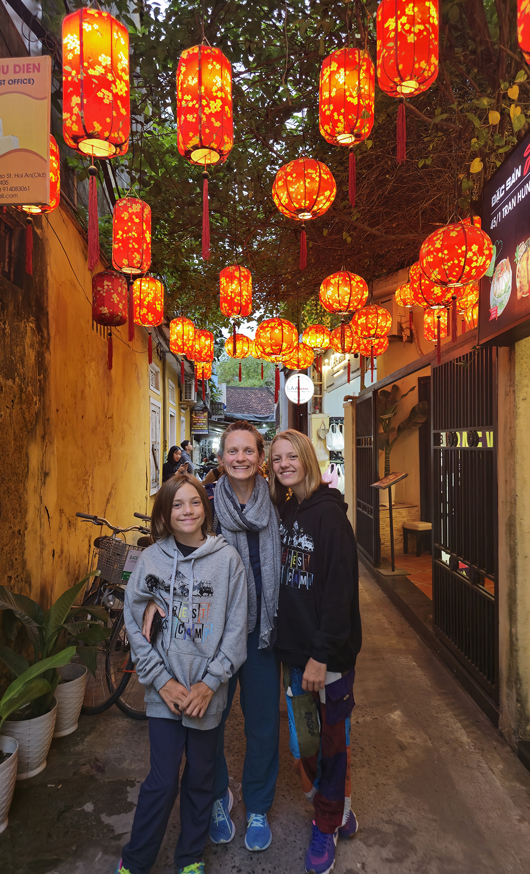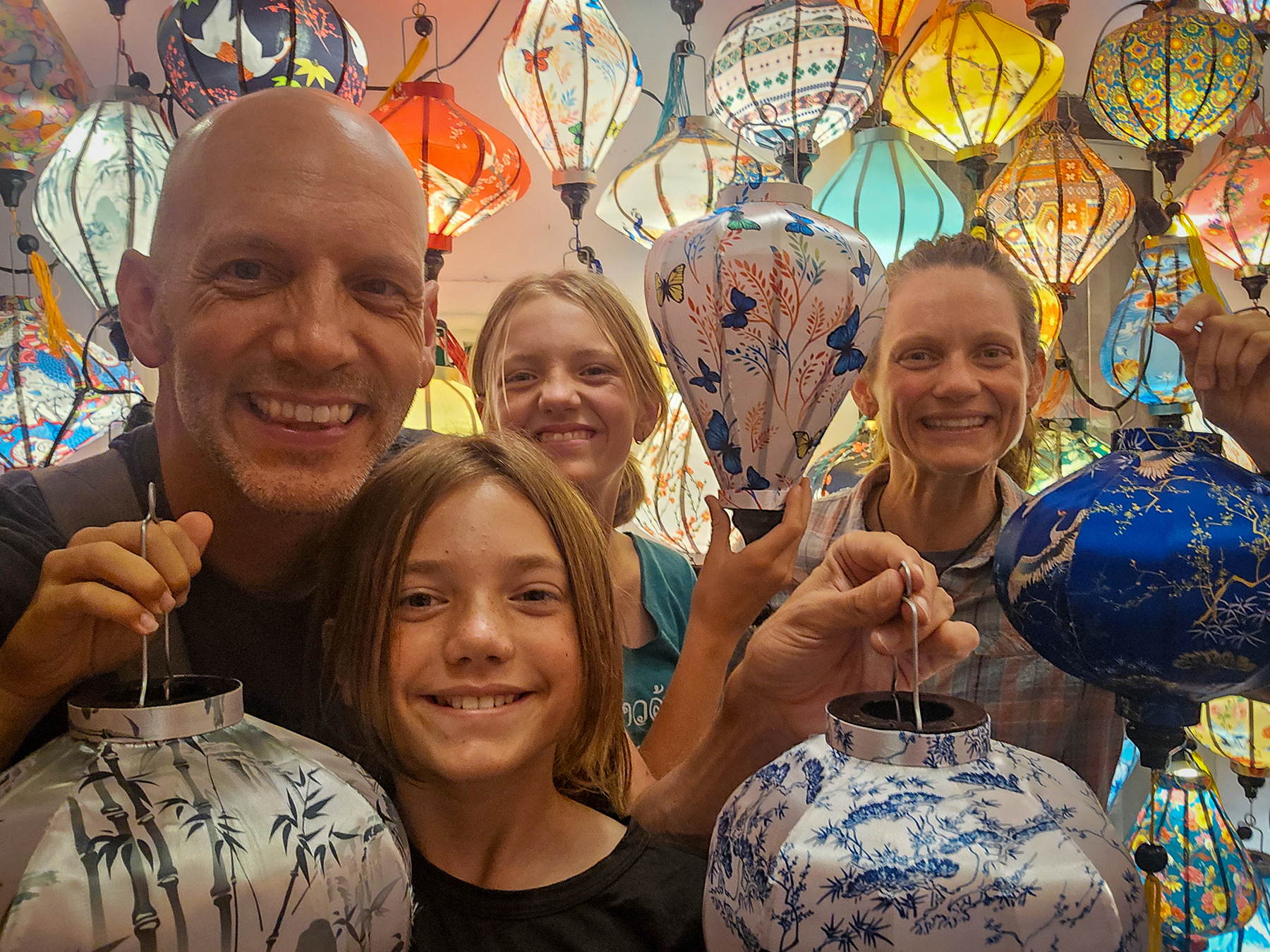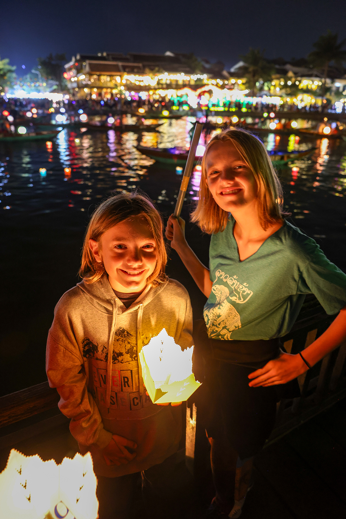 After our adventurous two week family “snorkelfest” through the islands of West Papua in Indonesia, we headed back north to Vietnam. Our time spent here was coordinated with the Lunar Lantern Festival in Hội An (January 13th) and the Vietnamese New Year (Tết, the week-long period around January 29th)! We had originally considered adding the famous Ha Long Bay near Hanoi to our itinerary, but after weeks spent sailing among the remote karst islands of Indonesia, we decided to skip Ha Long Bay and spend more time doing relatively slower travel through the areas around Hội An/DaNang/Huế and Ninh Binh/Trang An. Along the way we were also able to meet up with more traveling families, and our kids got to do movie nights and game days with other kids their ages!