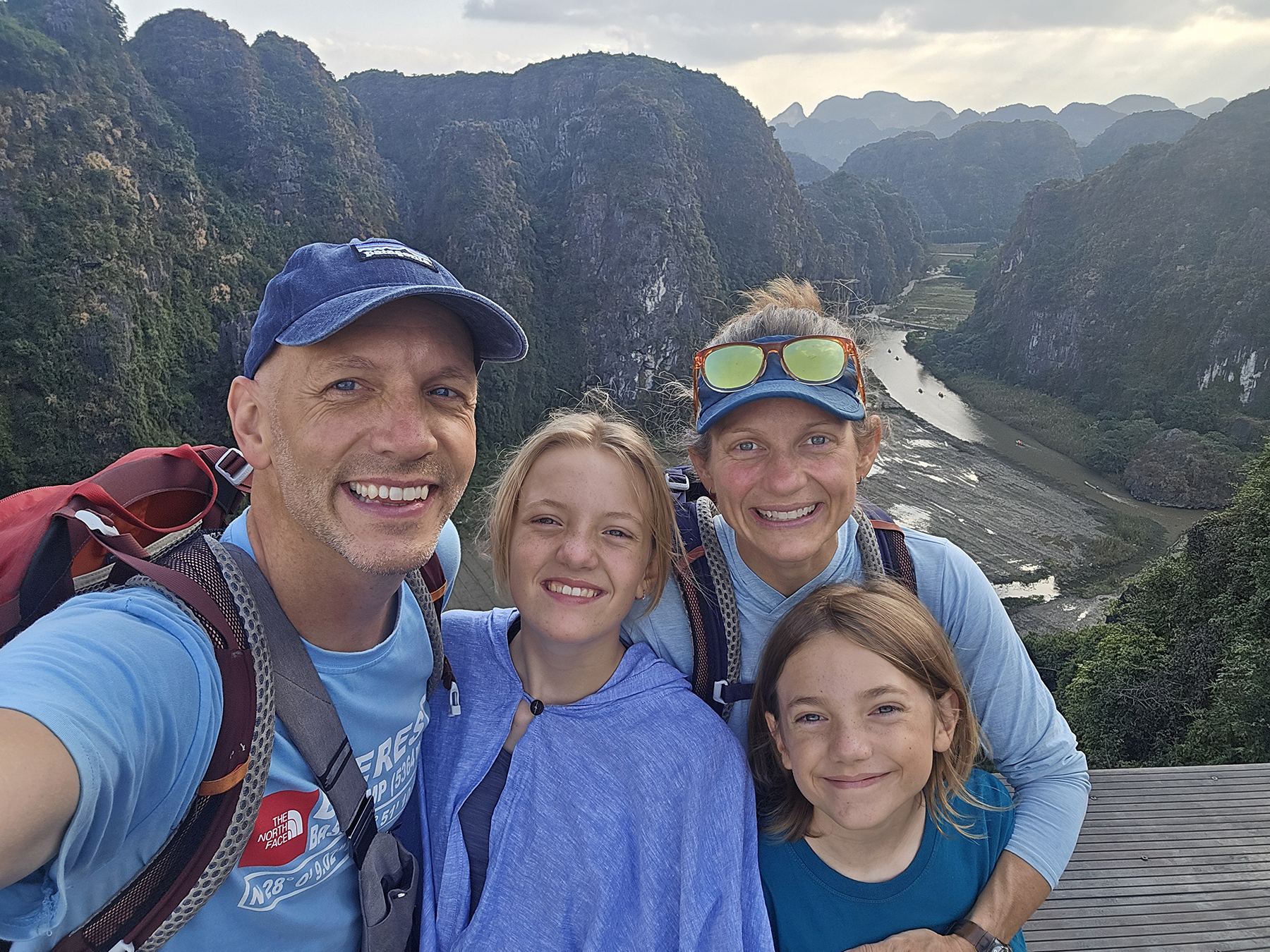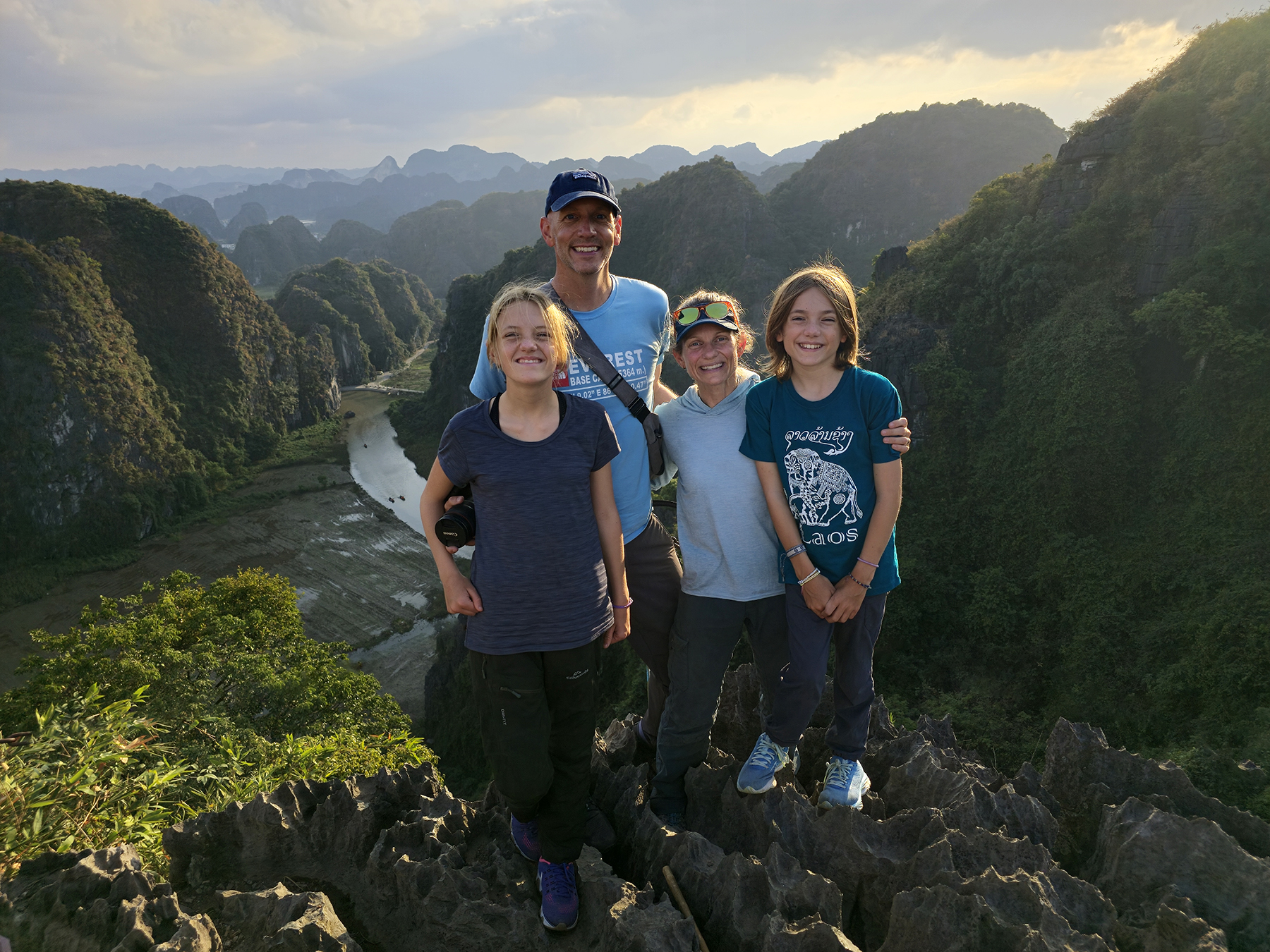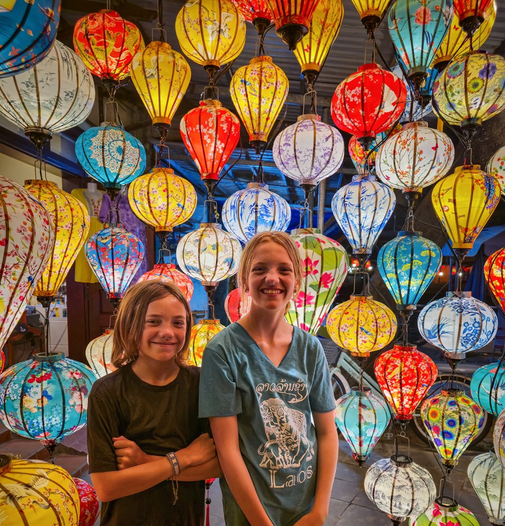 After our adventurous two week family “snorkelfest” through the islands of West Papua in Indonesia, we headed back north to Vietnam. Our time spent here was coordinated with the Lunar Lantern Festival in Hội An (January 13th) and the Vietnamese New Year (Tết, the week-long period around January 29th)! We had originally considered adding the famous Ha Long Bay near Hanoi to our itinerary, but after weeks spent sailing among the remote karst islands of Indonesia, we decided to skip Ha Long Bay and spend more time doing relatively slower travel through the areas around Hội An/DaNang/Huế and Ninh Binh/Trang An. Along the way we were also able to meet up with more traveling families, and our kids got to do movie nights and game days with other kids their ages!