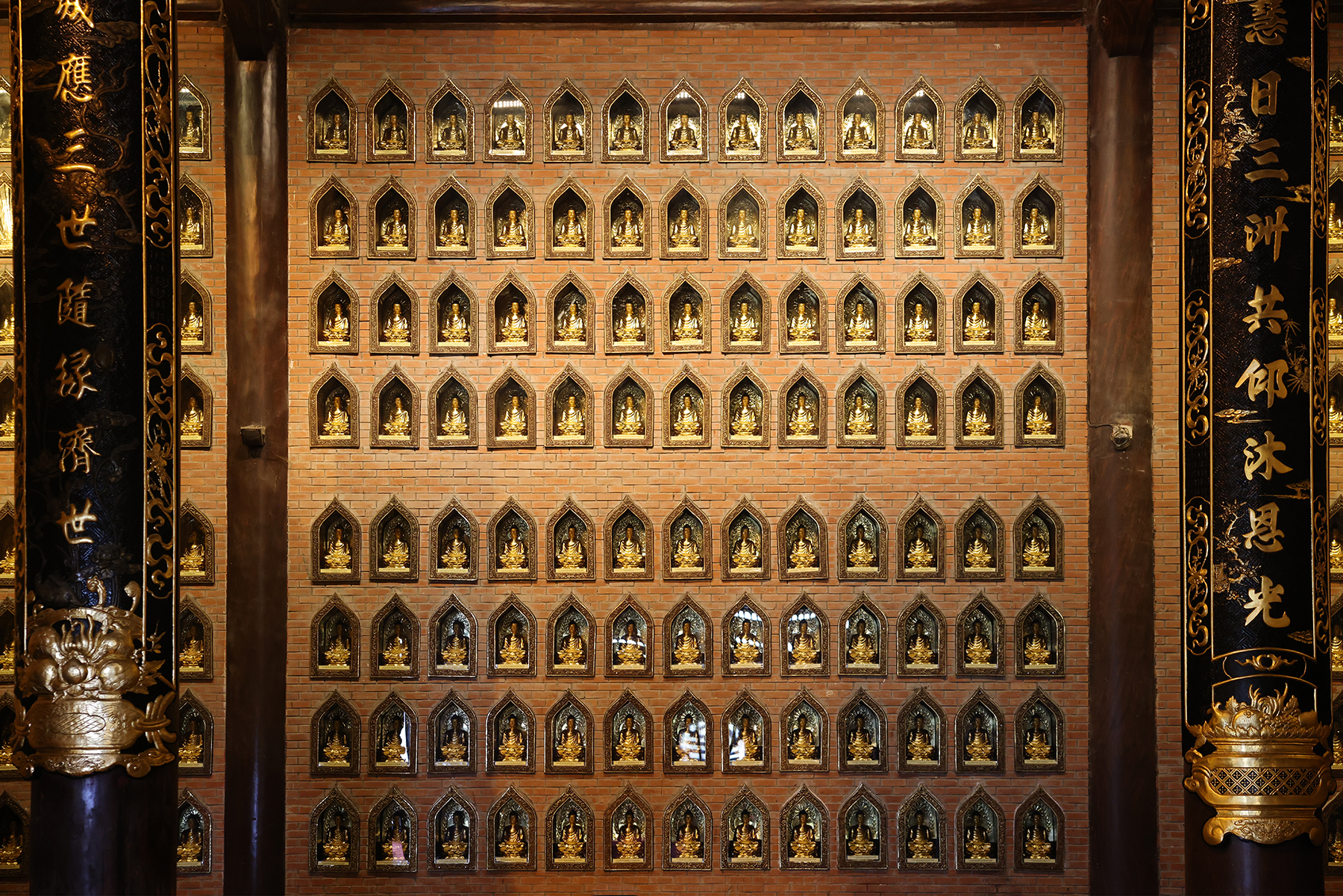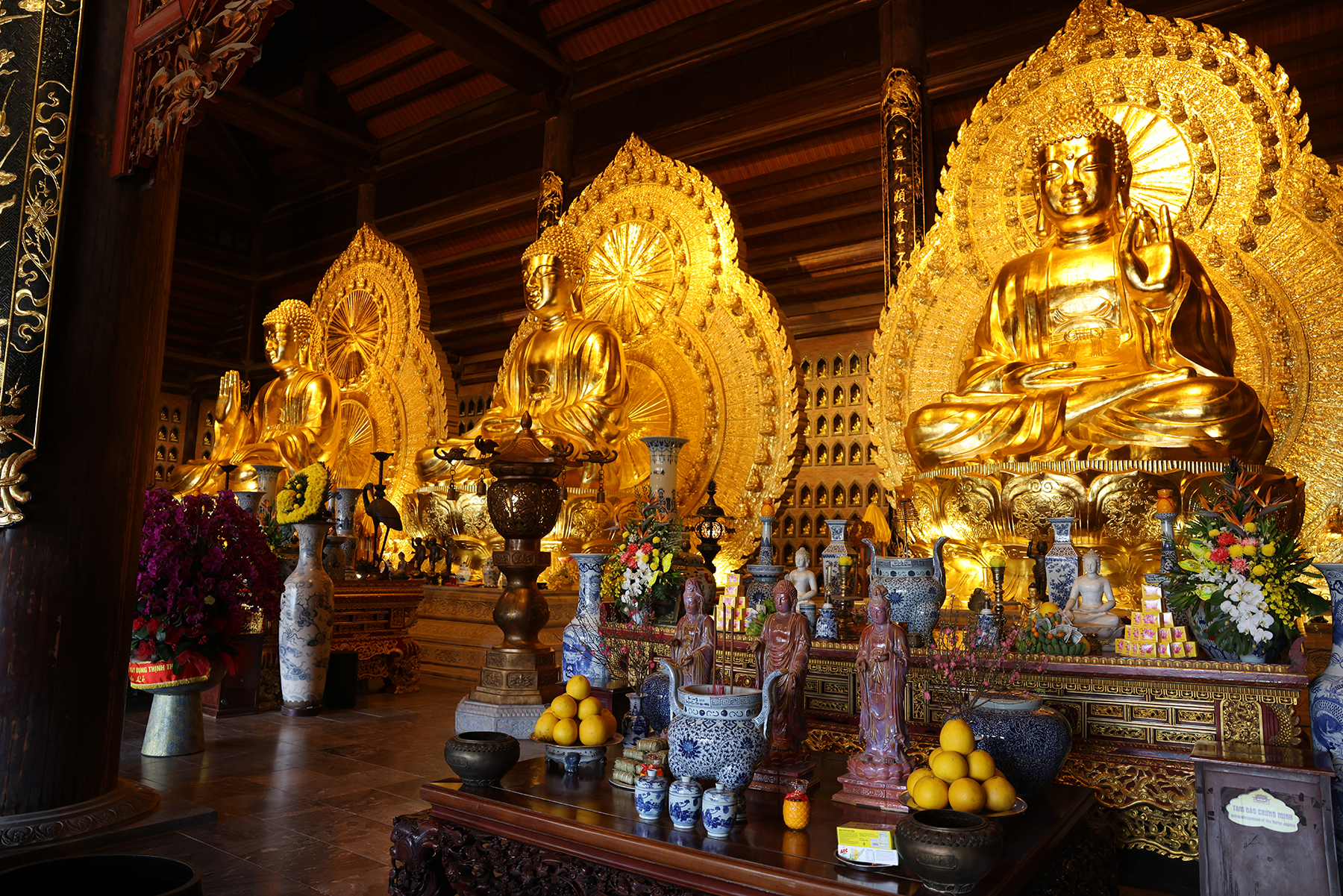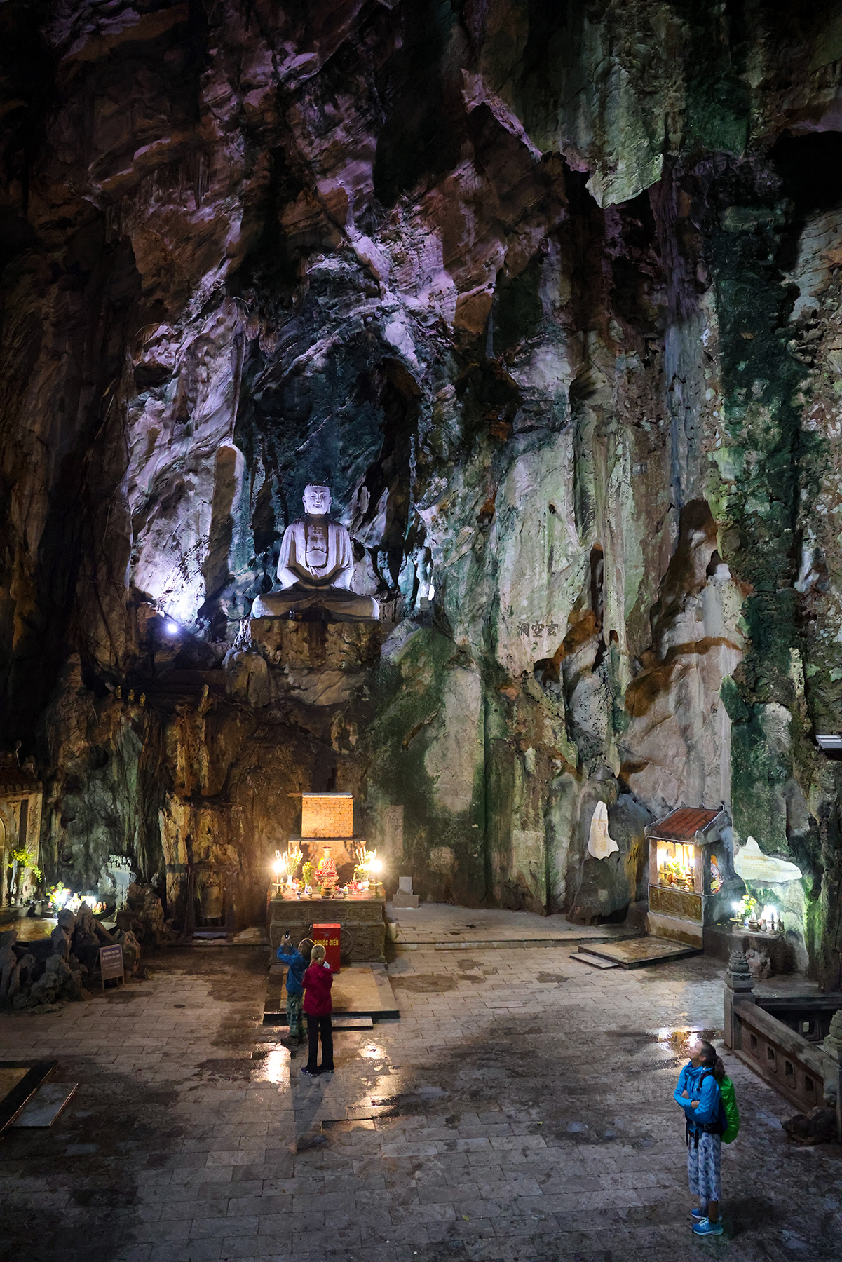 One thing I found particularly unusual about Vietnam was the collision between the ancient and modern worlds. In many locations we have visited around the world, there has often been an effort to maintain a delineation between the past and present. Surely, restoration and maintenance work on ancient architectural masterpieces across the world has always been performed, using a combination of traditional and modern methods. But in most places we have visited, the past and present felt like two distinct and identifiable times. However, in Vietnam, there seems to be an entire industry devoted to creating modern historic structures. When we would come across pagodas, temples, stone staircases winding through limestone peaks and caves, castle walls, and tombs, it was often impossible to determine if the structure had been built five years ago, fifty years ago, or five hundred years ago without doing some internet research. Modern structures are built essentially replicating ancient designs, often with the express purpose of creating new tourist attractions. Nowhere was this more evident than in the Bai Dinh temple outside of Ninh Binh. At the Bai Dinh site, there is a small, original Buddhist temple constructed in the year 1136. This small ancient temple, however, is now part of the now enormous Bai Dinh temple complex, constructed in 2010, which includes multiple enormous temple structures, as well as the tallest pagoda in all of Vietnam, spread out across 1700+ acres. All of these buildings, while traditional in appearance, serve as the center of a vast tourism enterprise, with stadium-sized parking lots funnelling visitors onto hundreds of small electric buses, which drop the tourists off to view thousands of ancient-looking statues in dozens of ancient-looking temples, all of which is about a decade old. Further blurring the lines between past and present, offerings left on the altars of these Buddhist temples consist of not only incense, flowers, and the traditional meal of bahn tet (rice and bean meal wrapped in banana leaves), but also hundreds of plastic-wrapped packages and tins of biscuits, sweets, and junk foods. This juxtaposition served to remind us that what may from our perspective be considered as an ancient religion is very much a part of the modern world.
