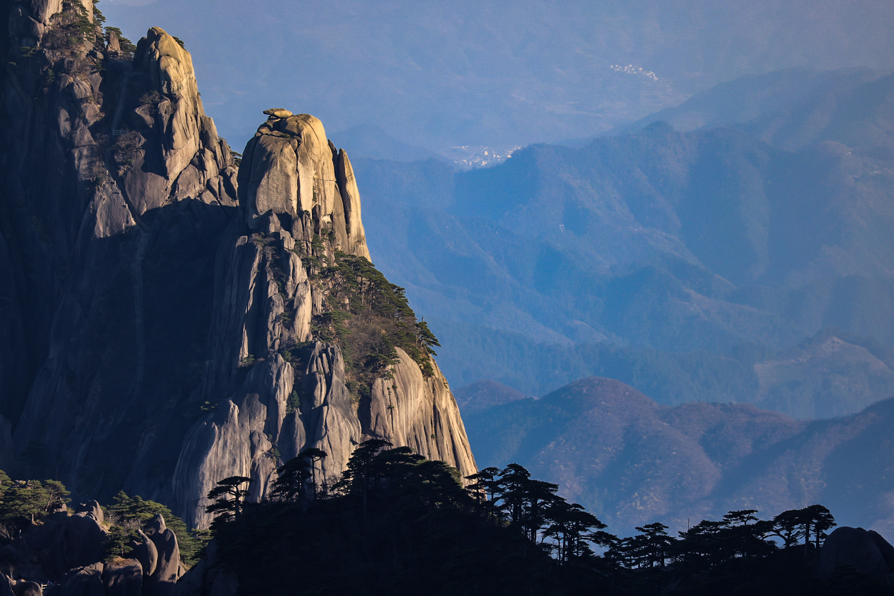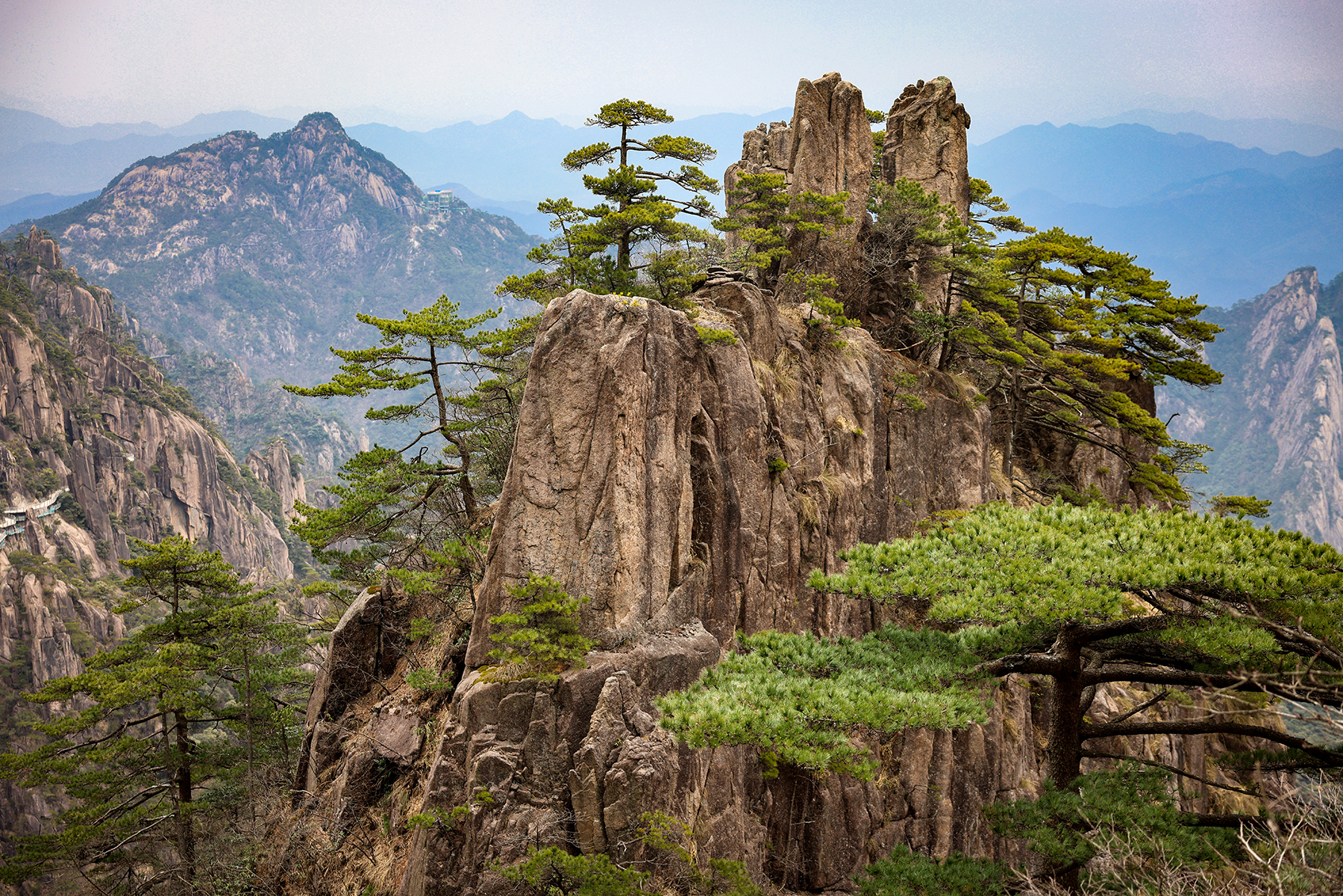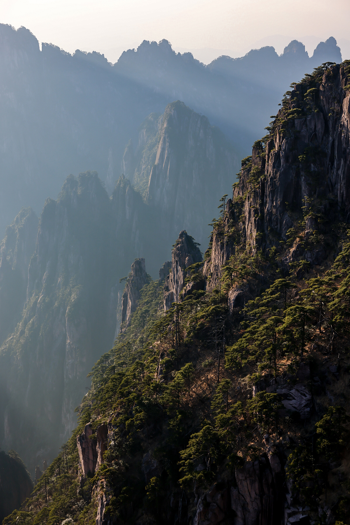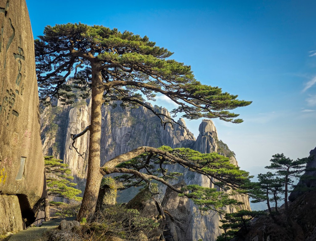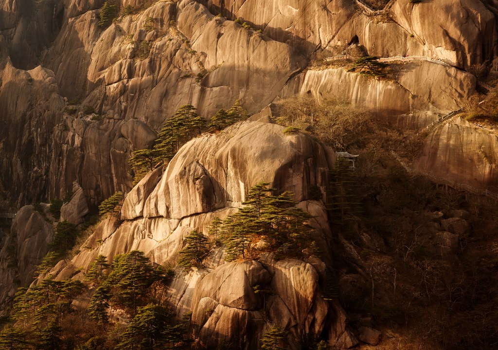 After our time in Xi’an came to a close, we took a final internal flight to Huangshan City, the gateway to Huangshan, the fabled Yellow Mountains. Along with the karst pillars of Xingping and the limestone towers of Zhangjiajie, our visit to the granite peaks of Huangshan completed a trilogy of traditional Chinese landscapes for our family. Much like Zhanjiajie, the miles of hiking trails around Huangshan are designed to accommodate huge numbers of visitors, so we did not enjoy much solitude during our visit. We sadly again timed our visit during a period of bland, mostly overcast weather, so my dreams of photographing the famous Huangshan Pines rising elegantly above the misty cliffs will have to wait for another year.