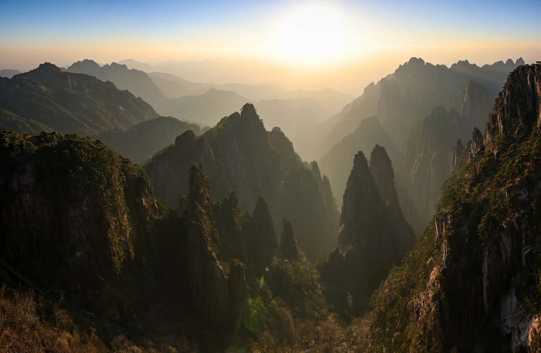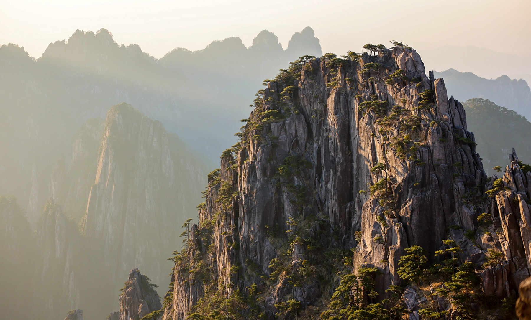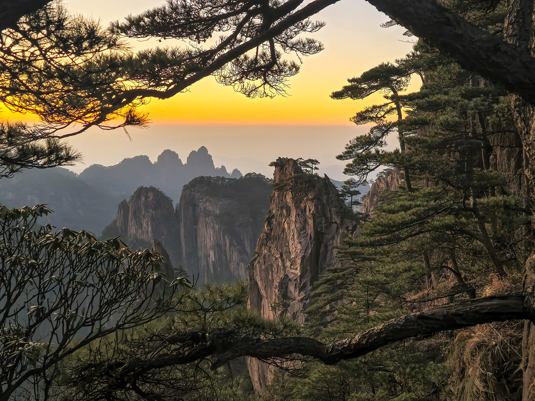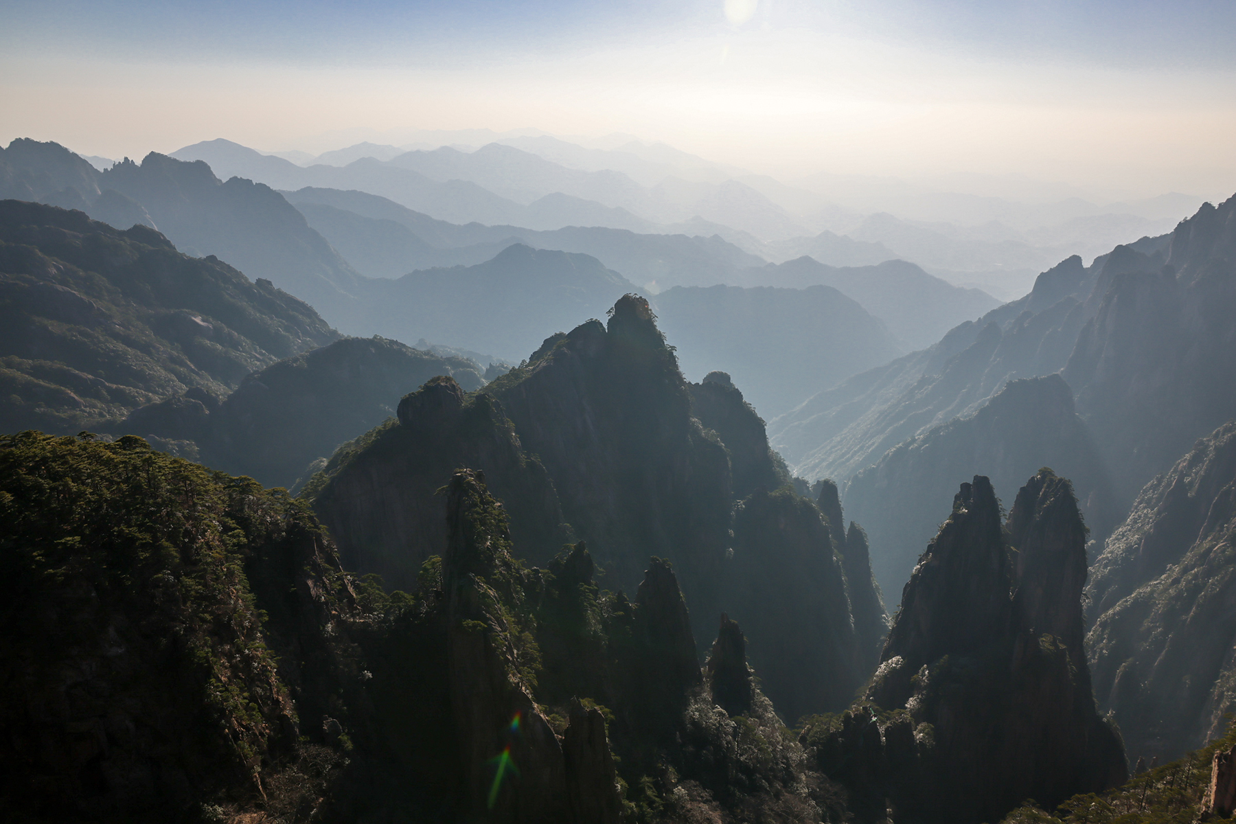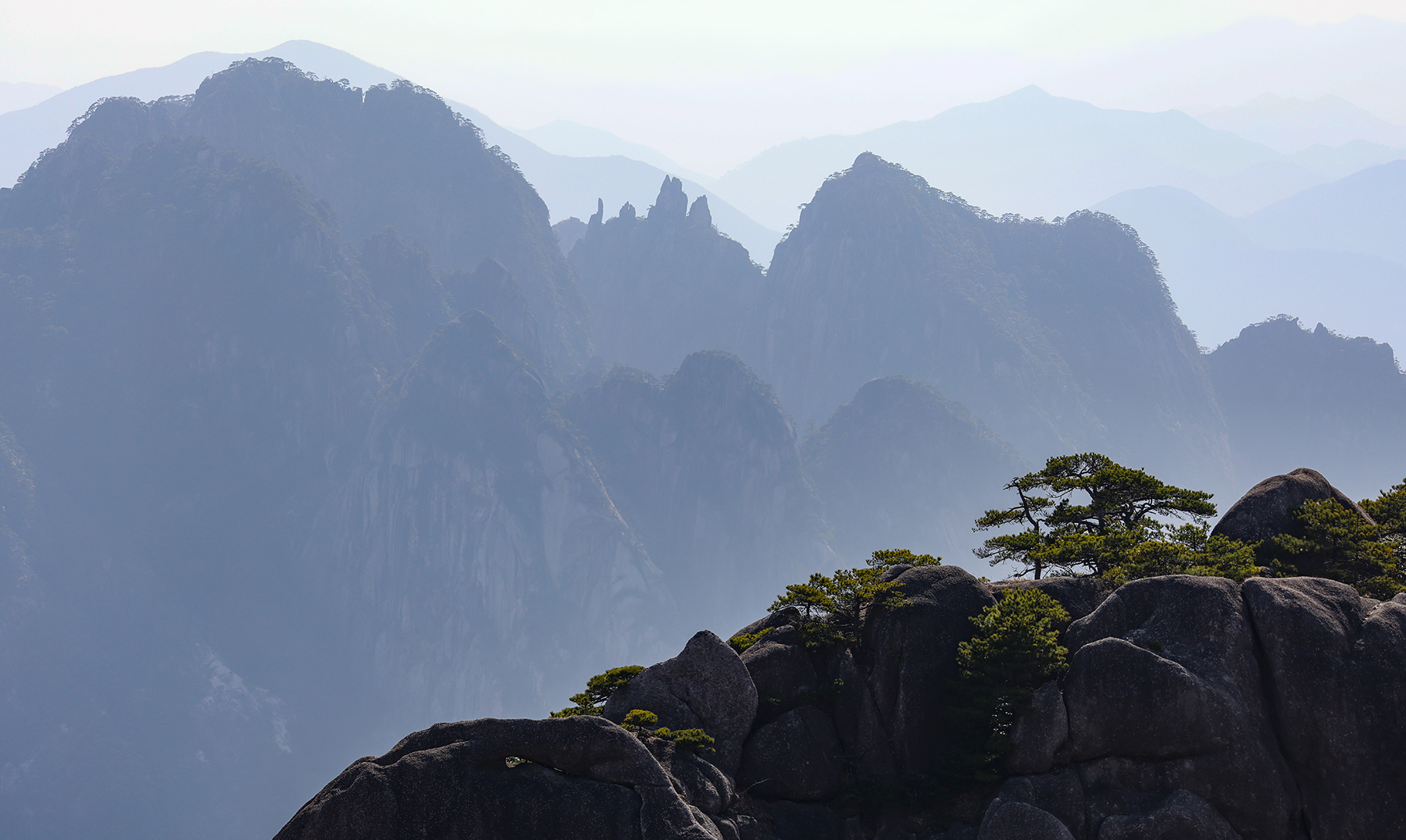 After our time in Xi’an came to a close, we took a final internal flight to Huangshan City, the gateway to Huangshan, the fabled Yellow Mountains. Along with the karst pillars of Xingping and the limestone towers of Zhangjiajie, our visit to the granite peaks of Huangshan completed a trilogy of traditional Chinese landscapes for our family. Much like Zhanjiajie, the miles of hiking trails around Huangshan are designed to accommodate huge numbers of visitors, so we did not enjoy much solitude during our visit. We sadly again timed our visit during a period of bland, mostly overcast weather, so my dreams of photographing the famous Huangshan Pines rising elegantly above the misty cliffs will have to wait for another year.