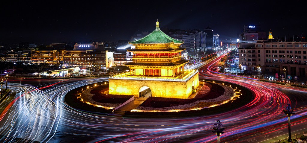 Departing from Zhangjiajie, we took a cheap flight to Xi’an with the goal of viewing the spectacular archaeological site of the Terracotta Army. We were excited to learn that in addition to hosting the thousands of buried warrior statues, Xi’an was also the location of the easternmost starting point of the Silk Road beginning in the second century BCE. Highlights of our time in the city included our visit to the Giant Wild Goose Pagoda and the Bell Tower of Xi’an, site of an ancient crossroads and a beautifully preserved Ming dynasty architectural treasure. Seeing the bell tower lit up at night, contrasting with the lights and highways of modern Xi’an in the surroundings, was a treat. We also had a chance to attend a play depicting a traditional story of travel on the Silk Road called the Legend of the Camel Bell. The set design featured an impressive rotating theatre and some amazing visuals, though the story felt a bit flimsy (and featured more volcanoes than we remember being located along the Silk Road).