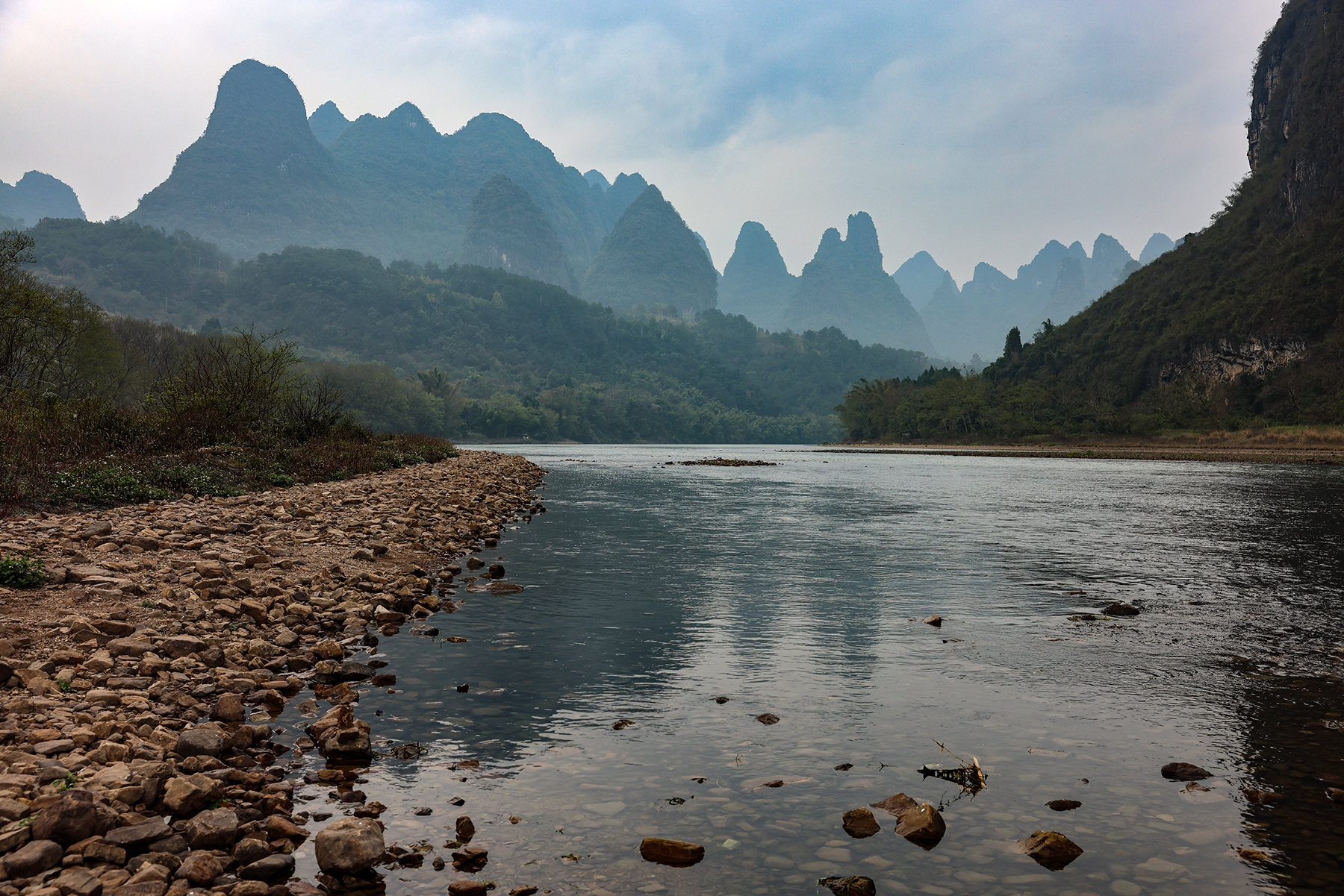 Once our plans were complete we set out to explore Guilin for a couple of days in the rain, and we found it to be a delightful city! Our favorite discovery was a small stall selling traditional landscape paintings run by an art teacher from the local university – we were pleased to purchase a couple of small paintings to remember our visit.