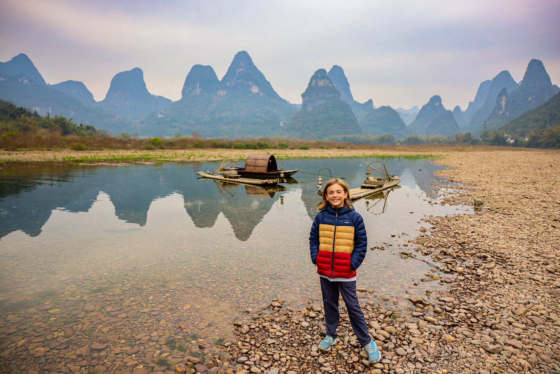 This visit to China would be a very different experience than our first visit had been, just eight years prior. In 2017, we had planned our trip down to every microscopic detail. Every hotel and every train ticket was booked ahead of our arrival, and we converted currency at home in Colorado before leaving the States. We knew it would be difficult to get help once abroad, due to not only the language barrier, but also due to the inability to use our familiar tools of travel – credit cards were not accepted, ATMs were rarely seen (and not compatible even when we managed to find them), and email, Google maps, and the internet were all inaccessible to us due to the Great Firewall. Successfully navigating the country for three weeks with two very young children had given us the confidence we needed to believe a year of travel with our family was feasible. So it was that this year, we returned to China under quite different circumstances – this time we did not have much of a plan at all! We booked a hotel in Guilin for our first three nights, and decided that we would figure everything else out once we arrived.
