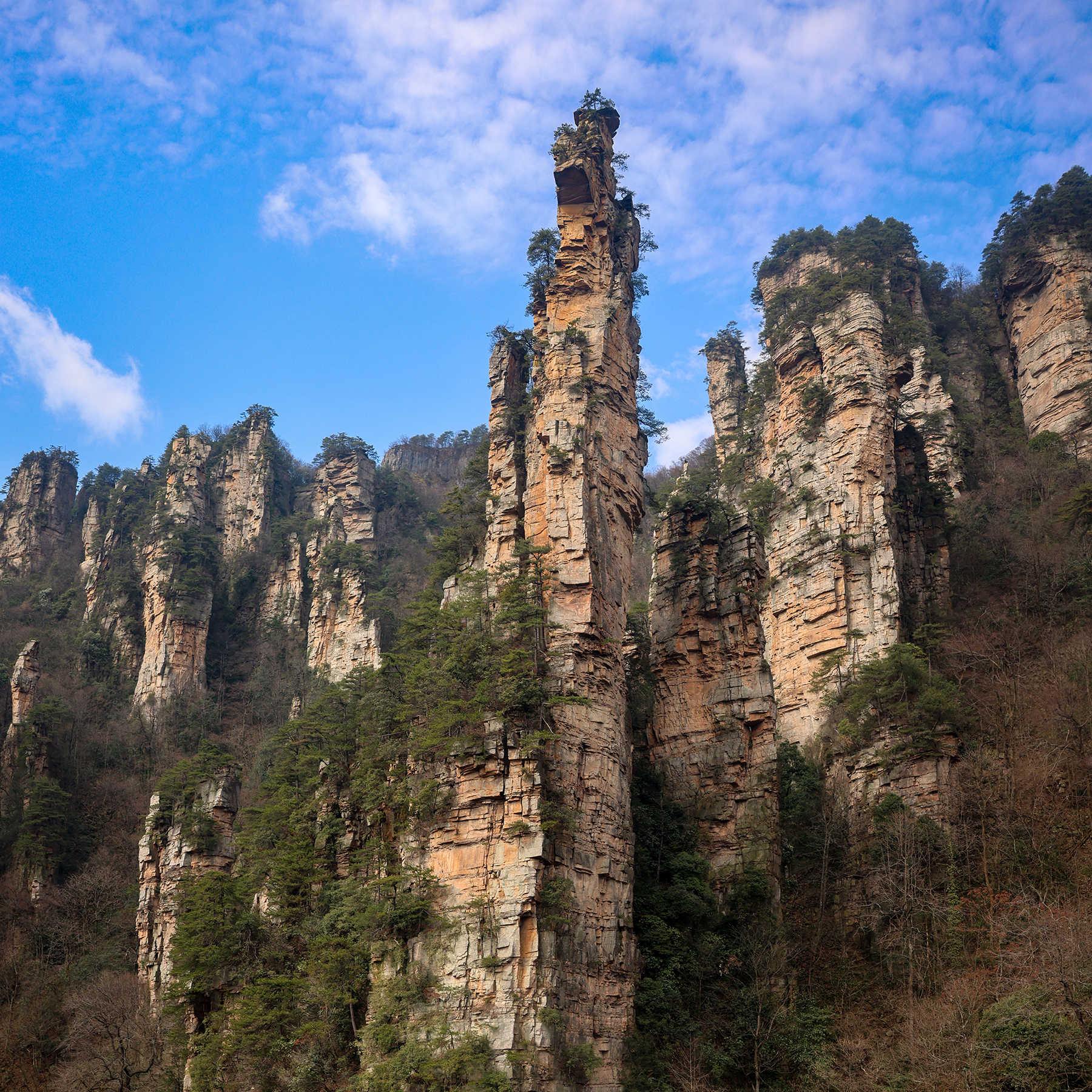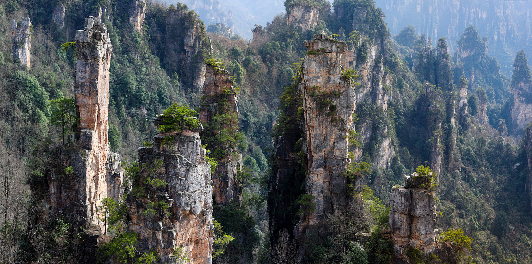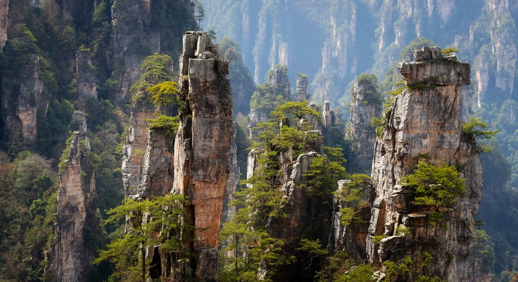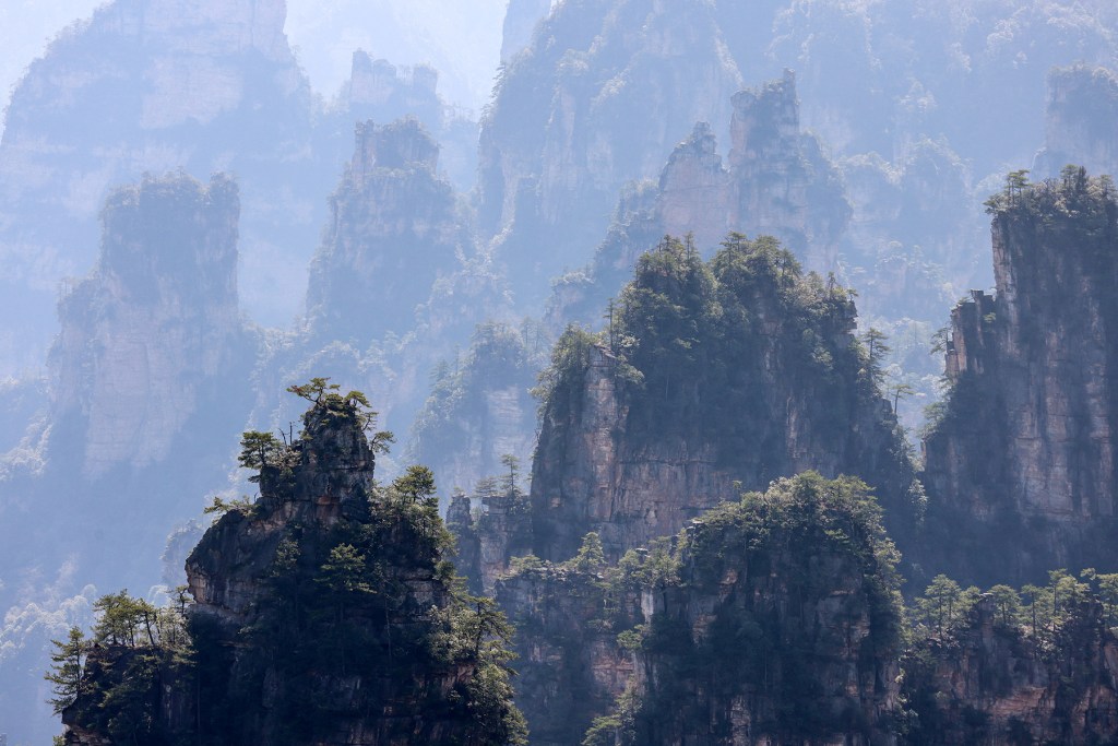 Within Zhangjiajie National Forest Park, we absolutely loved the spectacular Tianzi Mountain area, which we visited on several occasions. A sign near the summit suggests that one will “regret forever not to visit the scenic overlook,” which turns out to be good advice. The spot is ridiculously photogenic, and I took approximately three bazillion pictures. Sonya sometimes teases me that each time I upgrade to a new camera setup I decide we should revisit everywhere we have ever been to retake our favorite photos, which seems perfectly reasonable to me! We also enjoyed a long day of hiking in Huangshi Village, along the Golden Whip Stream, and across the high route around Yuanjiajie, site of the stunning South Sky Pillar.
