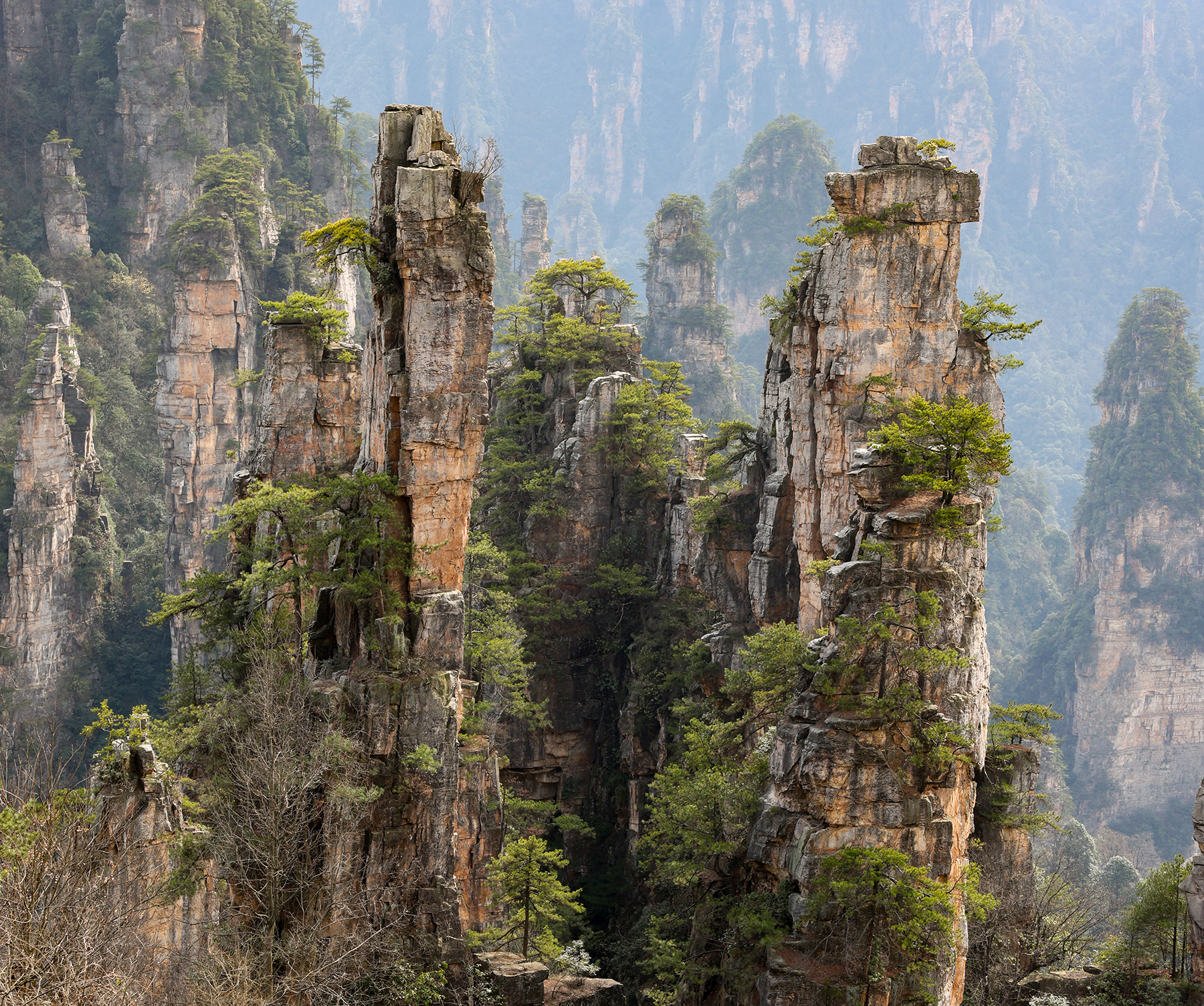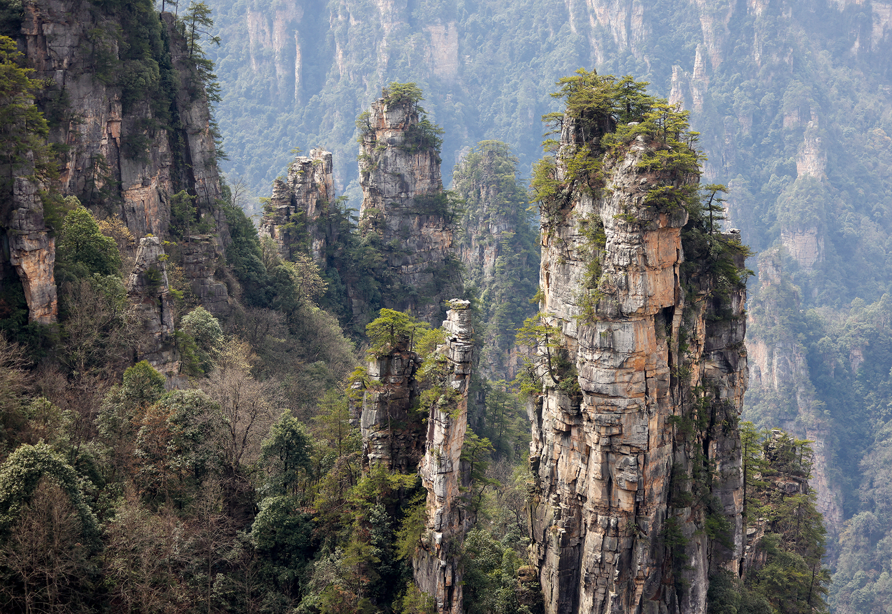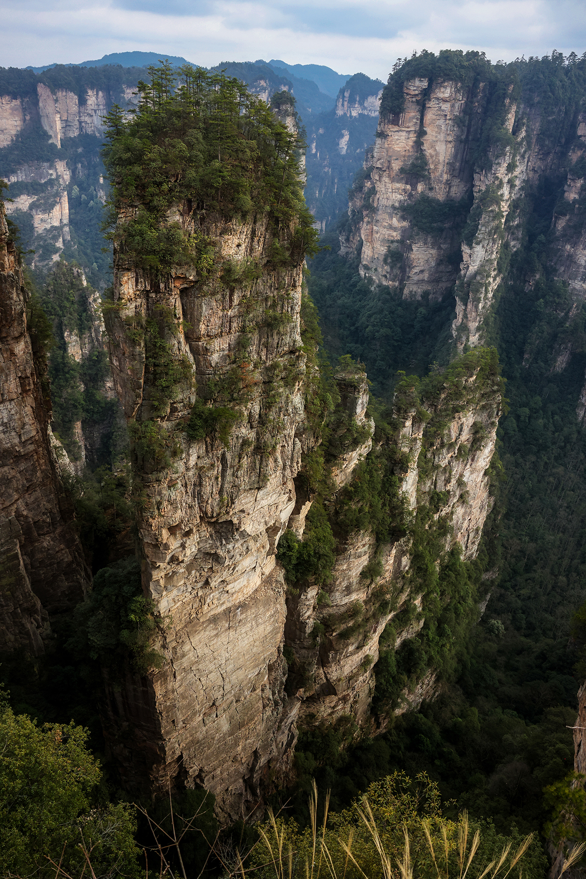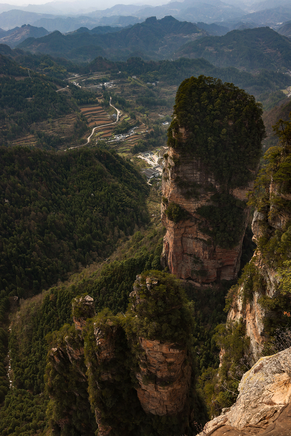 After departing from Xingping we took another train from Xingping to Zhangjiajie, another spot we had visited on our previous trip. Zhangjiajie is one of the most spectacular geologic sites on the entire planet, and as such has a well developed infrastructure to accommodate huge numbers of tourists. As much as we love the landscape, we are not too keen on hiking among large crowds, so we went about devising a plan to find some quiet moments in the park. Our plan was to stay within the park boundary overnight so we would not have to take the sequence of buses and gondolas that most people use to access the trails inside the park. Luckily, Sonya was able to track down a tea plantation within the park boundary that seemed to sometimes welcome visitors for overnight stays. The plantation turned out to be the only accommodation within the park boundary, and sadly it was permanently shut down by the government just three days after we left! We were fortunate to enjoy quiet walks through the forest to and from the plantation to reach the main hiking trails, and we also benefited from some great advice from the man running the plantation on tracking down a number of quiet secret spots in the park. Almost all the domestic tourists seem to travel in large organized tours, so once we got off the main route we found the trails to be nearly empty!