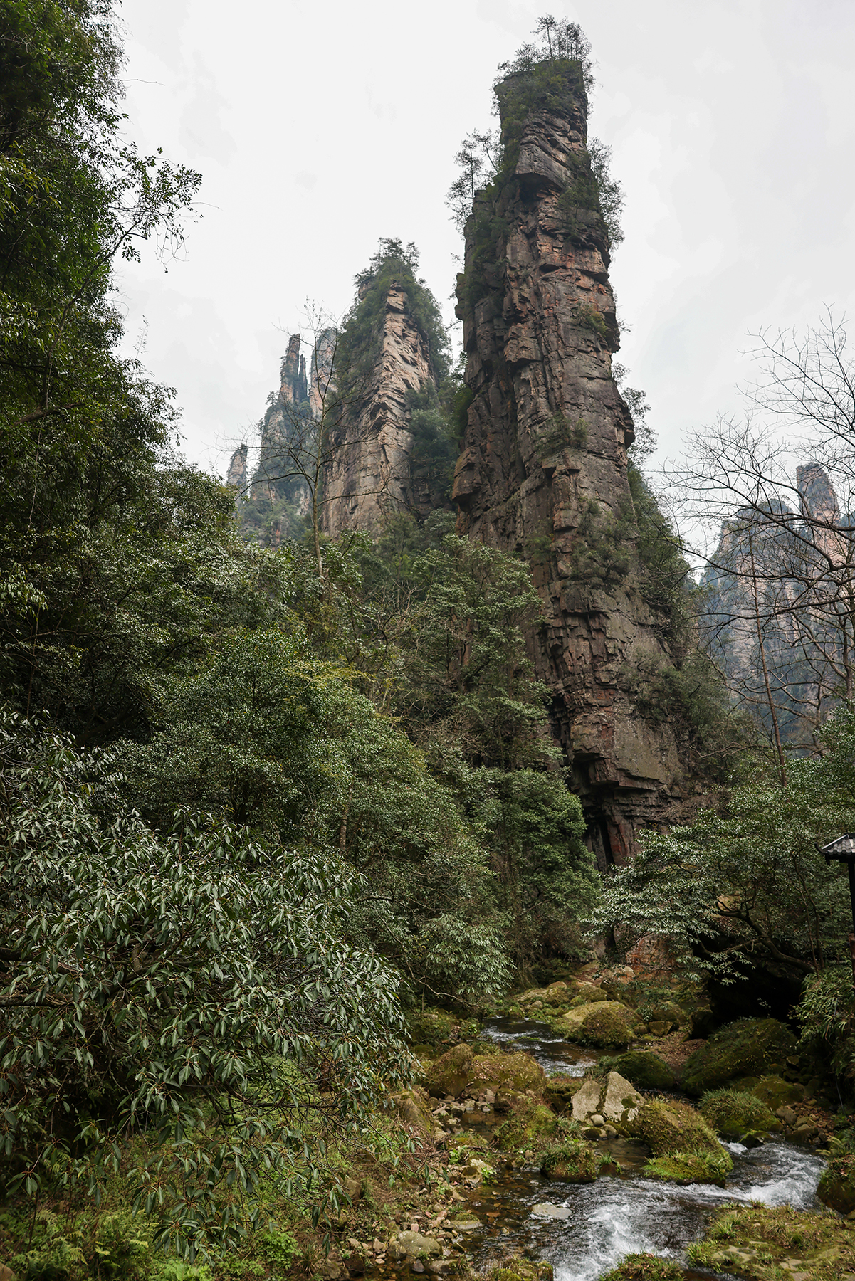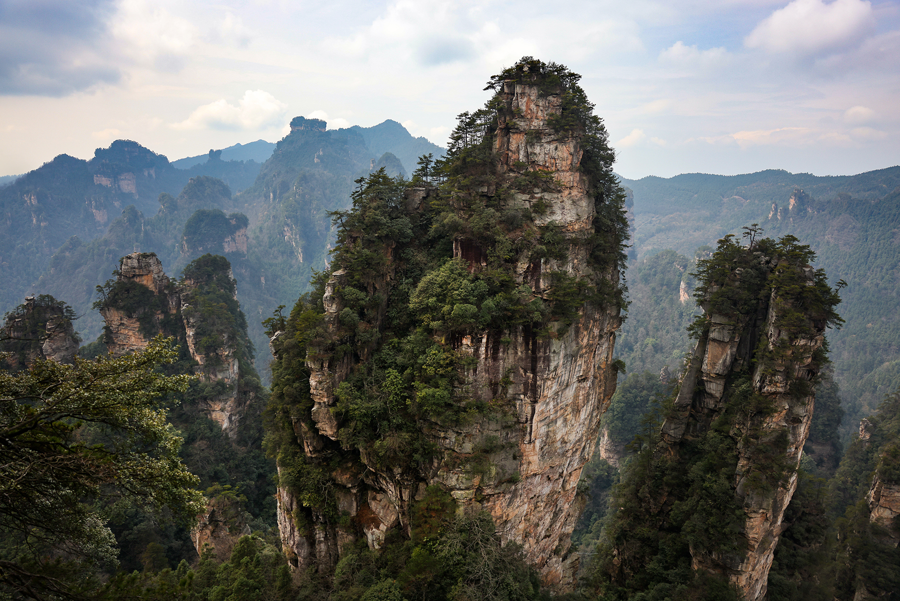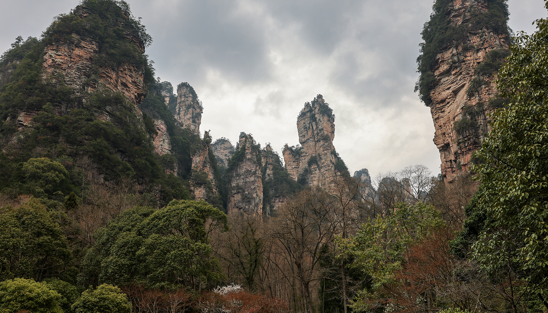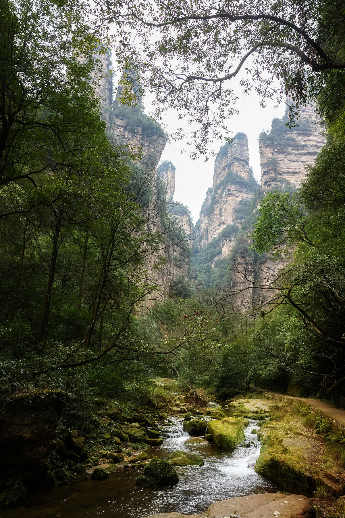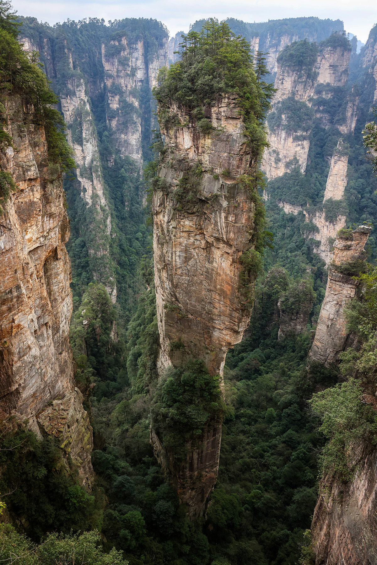 After departing from Xingping we took another train from Xingping to Zhangjiajie, another spot we had visited on our previous trip. Zhangjiajie is one of the most spectacular geologic sites on the entire planet, and as such has a well developed infrastructure to accommodate huge numbers of tourists. As much as we love the landscape, we are not too keen on hiking among large crowds, so we went about devising a plan to find some quiet moments in the park. Our plan was to stay within the park boundary overnight so we would not have to take the sequence of buses and gondolas that most people use to access the trails inside the park. Luckily, Sonya was able to track down a tea plantation within the park boundary that seemed to sometimes welcome visitors for overnight stays. The plantation turned out to be the only accommodation within the park boundary, and sadly it was permanently shut down by the government just three days after we left! We were fortunate to enjoy quiet walks through the forest to and from the plantation to reach the main hiking trails, and we also benefited from some great advice from the man running the plantation on tracking down a number of quiet secret spots in the park. Almost all the domestic tourists seem to travel in large organized tours, so once we got off the main route we found the trails to be nearly empty!