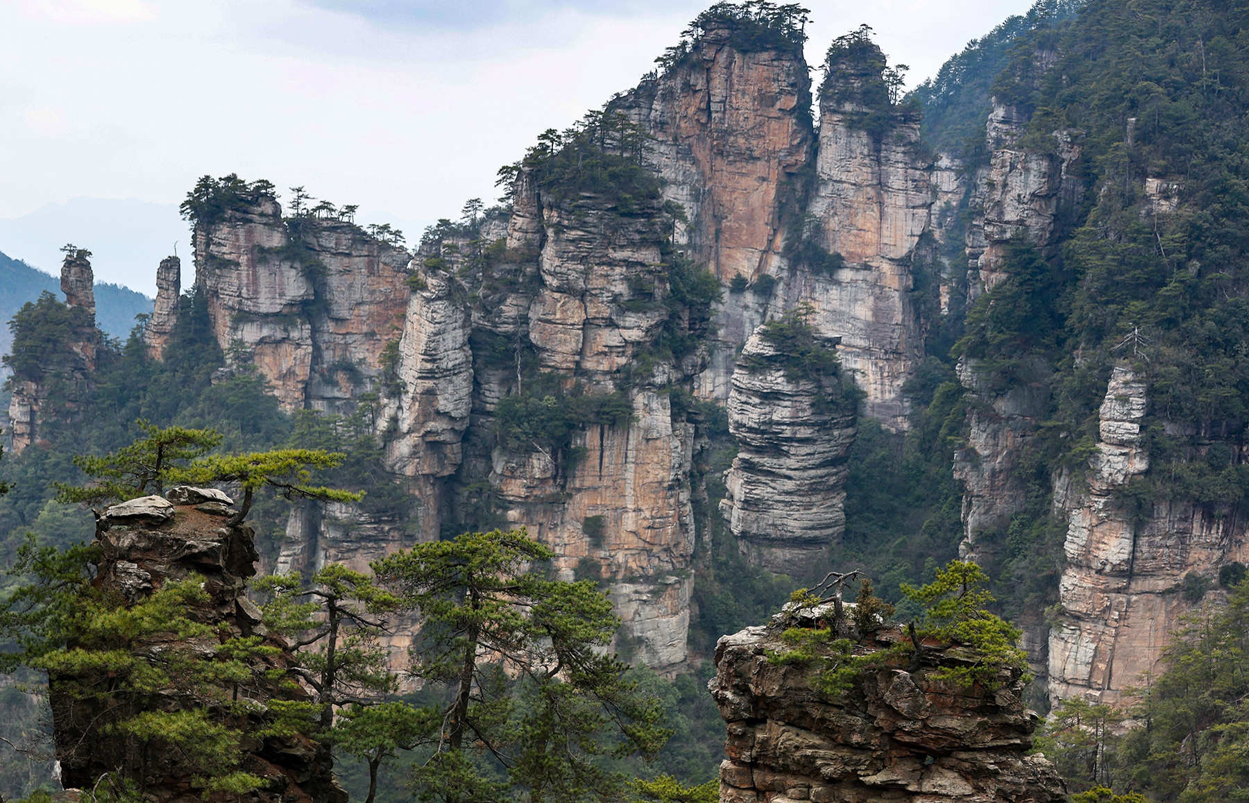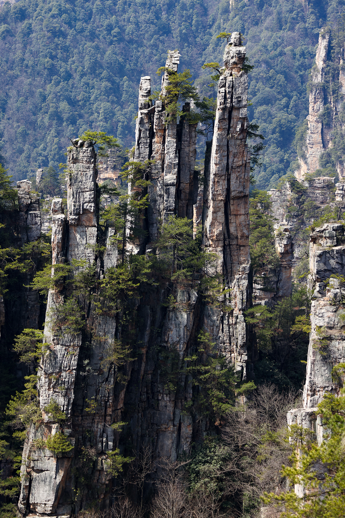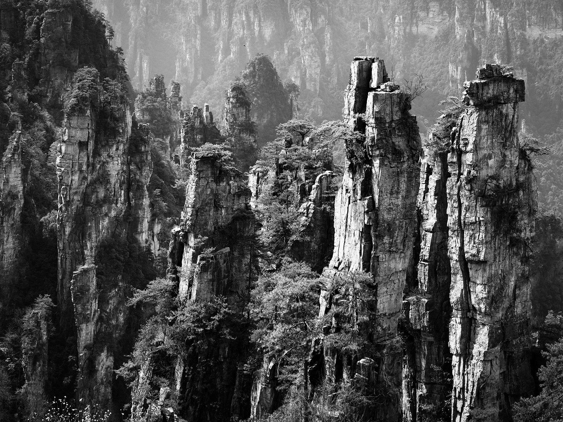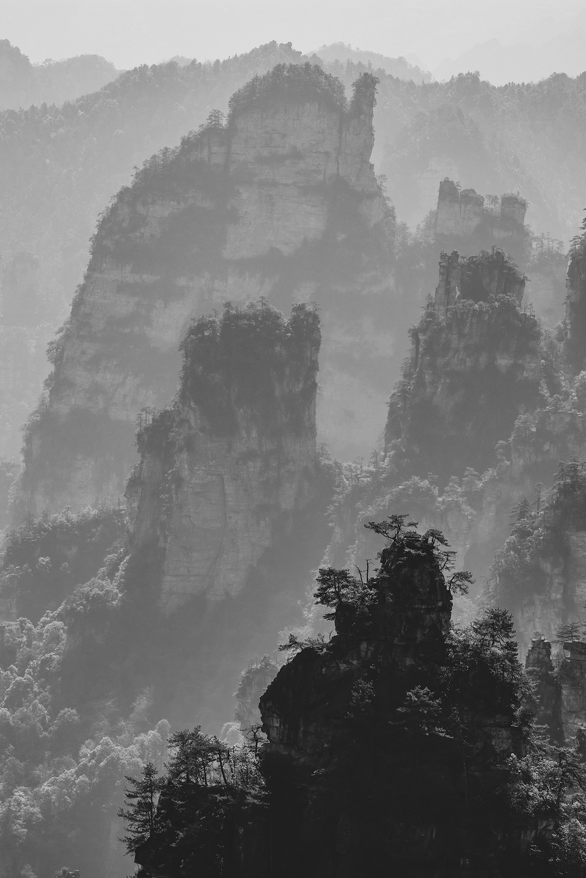 After departing from Xingping we took another train from Xingping to Zhangjiajie, another spot we had visited on our previous trip. Zhangjiajie is one of the most spectacular geologic sites on the entire planet, and as such has a well developed infrastructure to accommodate huge numbers of tourists. As much as we love the landscape, we are not too keen on hiking among large crowds, so we went about devising a plan to find some quiet moments in the park. Our plan was to stay within the park boundary overnight so we would not have to take the sequence of buses and gondolas that most people use to access the trails inside the park. Luckily, Sonya was able to track down a tea plantation within the park boundary that seemed to sometimes welcome visitors for overnight stays. The plantation turned out to be the only accommodation within the park boundary, and sadly it was permanently shut down by the government just three days after we left! We were fortunate to enjoy quiet walks through the forest to and from the plantation to reach the main hiking trails, and we also benefited from some great advice from the man running the plantation on tracking down a number of quiet secret spots in the park. Almost all the domestic tourists seem to travel in large organized tours, so once we got off the main route we found the trails to be nearly empty!