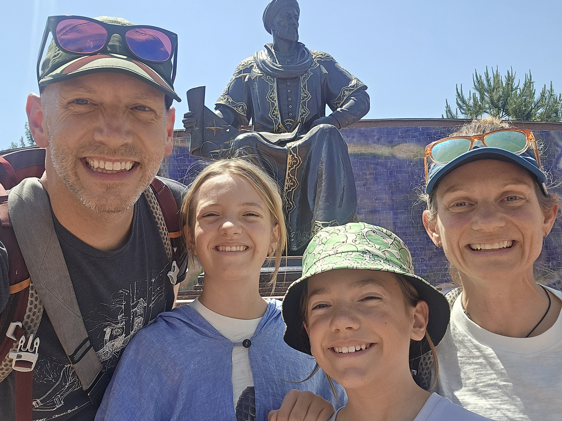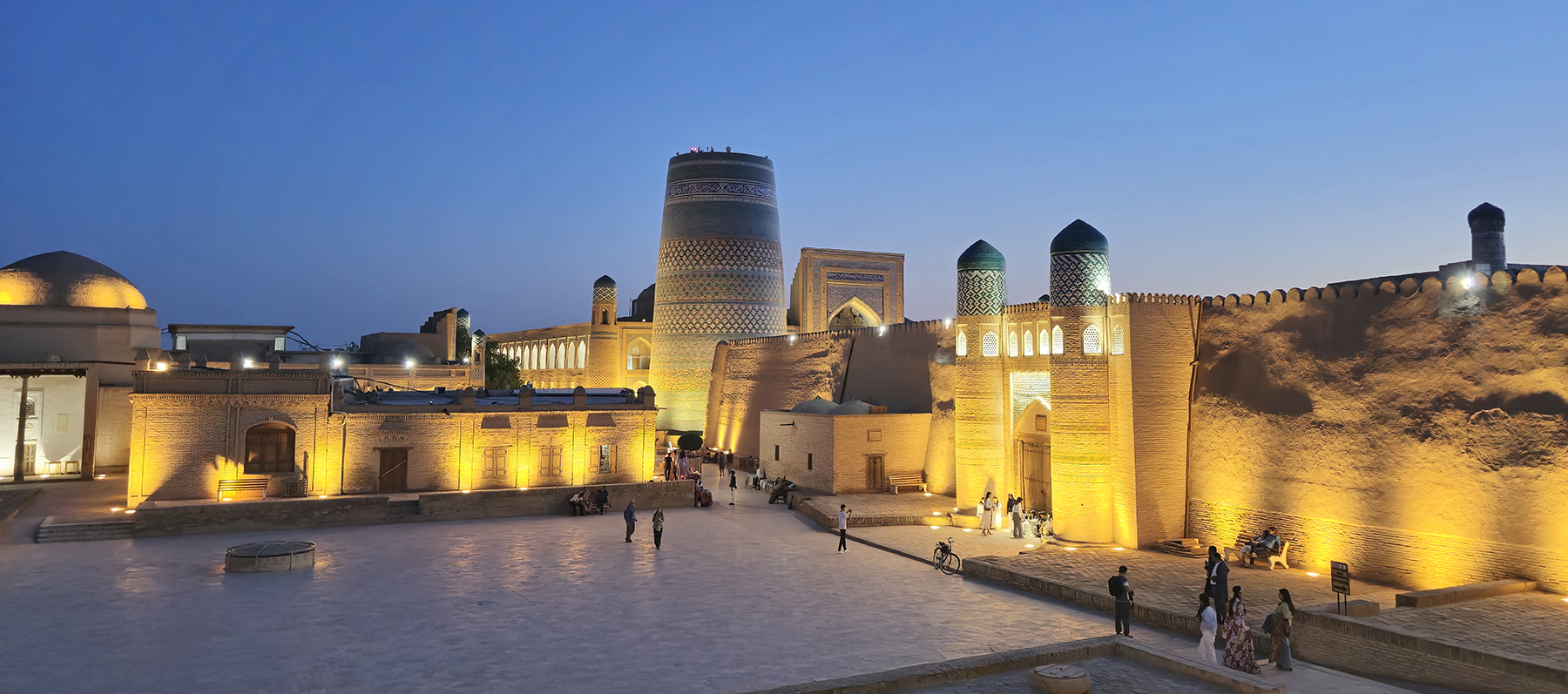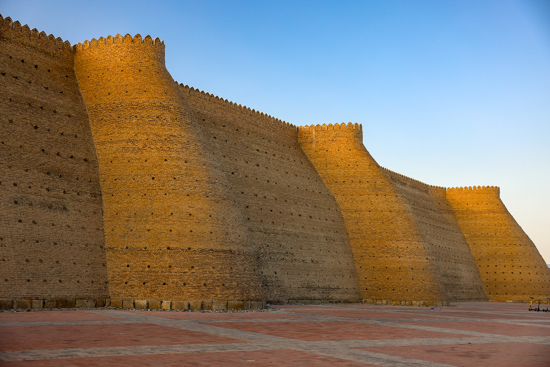 Enjoying the sunset from the high fortress walls on the Ark of Bukhara. Over 1,500 years old, this massive fortress once housed royal families until the early 20th century. Today, it stands as the most well-preserved ancient stronghold in Central Asia. An evening family walk along its upper walls offered breathtaking views over the historic city below.