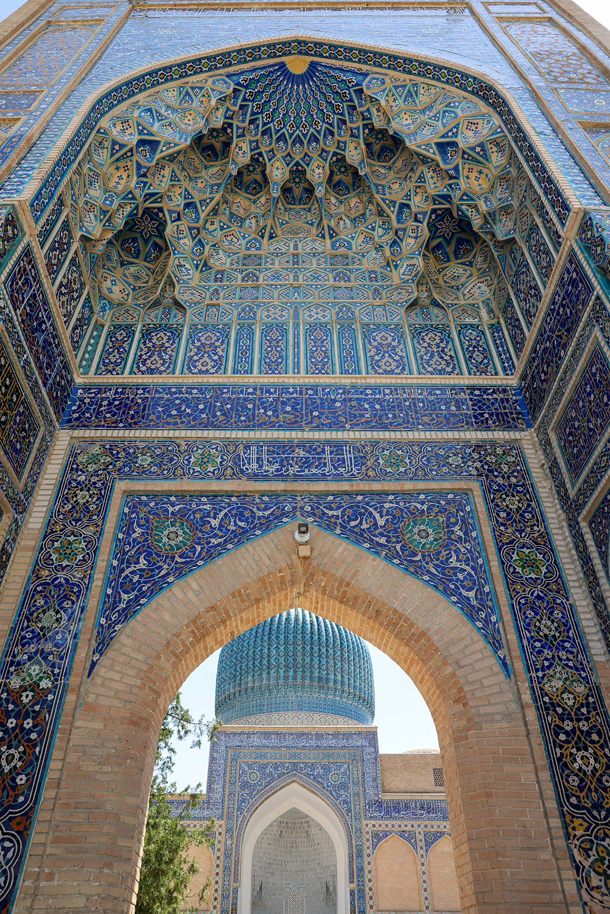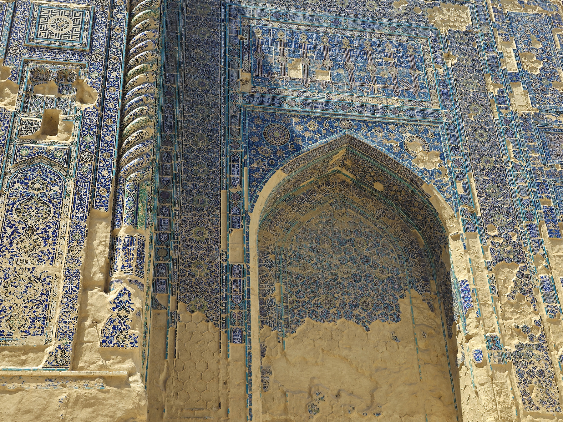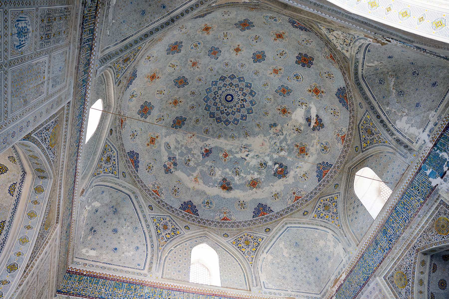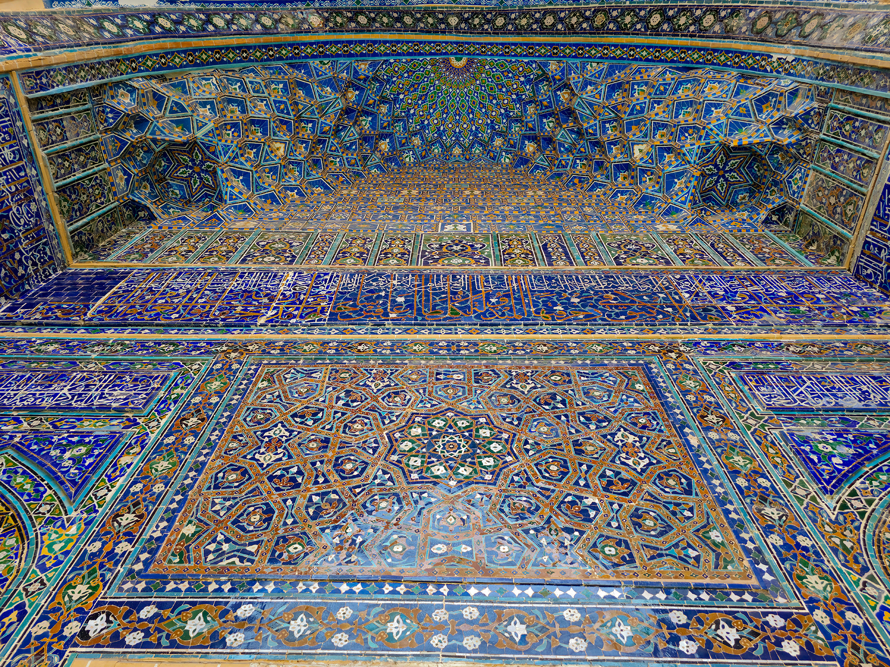 Exquisite blue and turquoise tilework covers the exterior and interior surface of every ancient mausoleum, minaret, mosque, and madrassa in the city. The grandiose size of each structure is difficult to comprehend.
