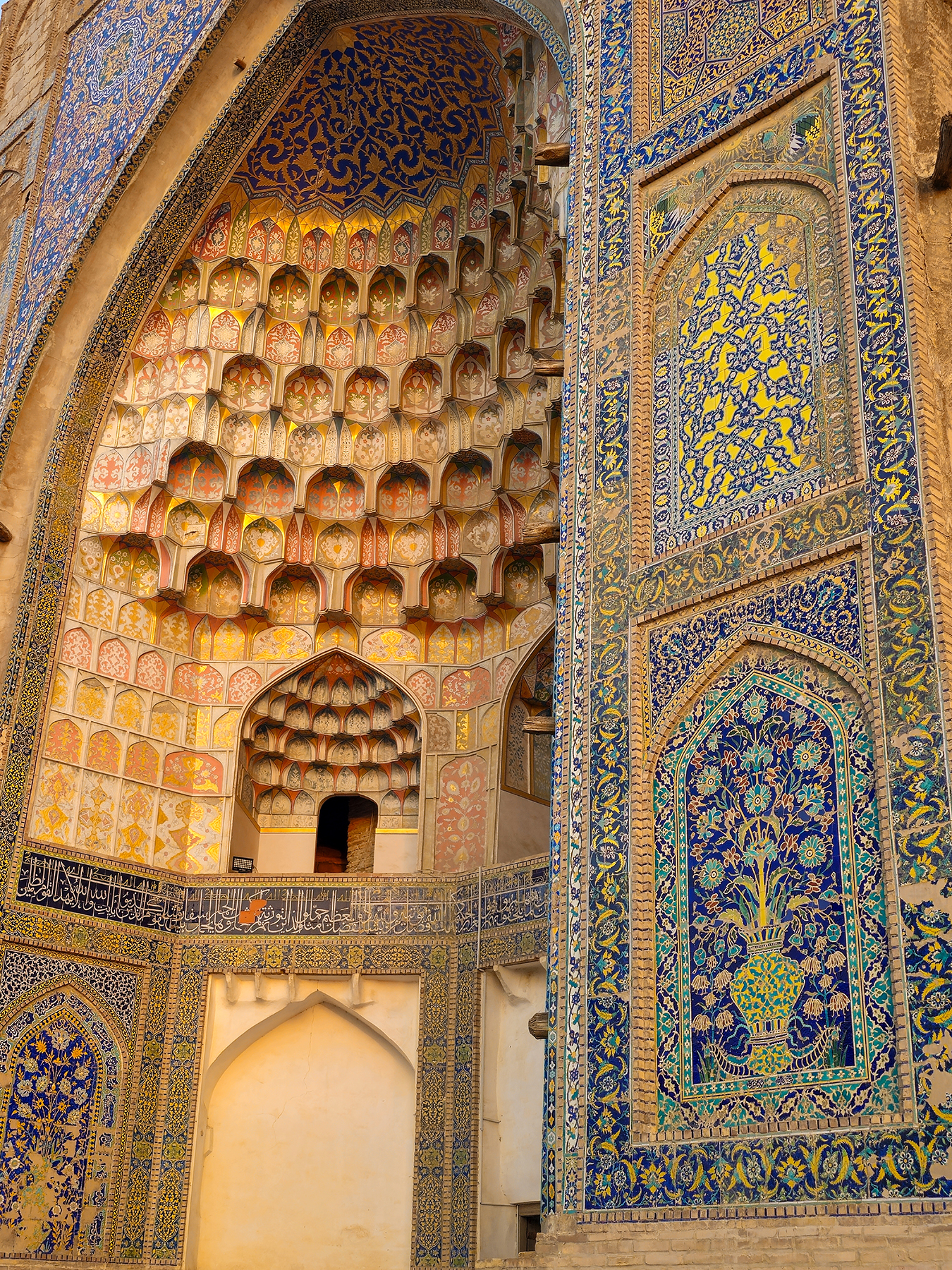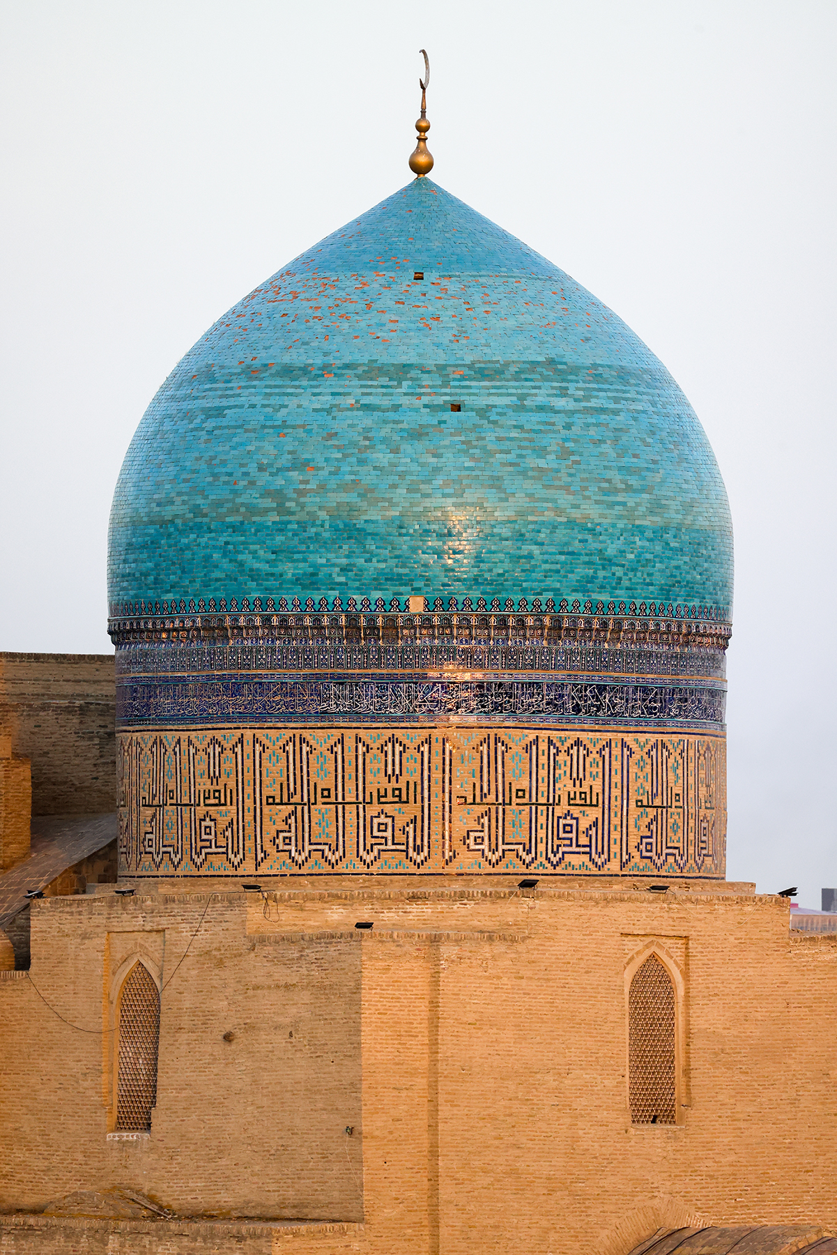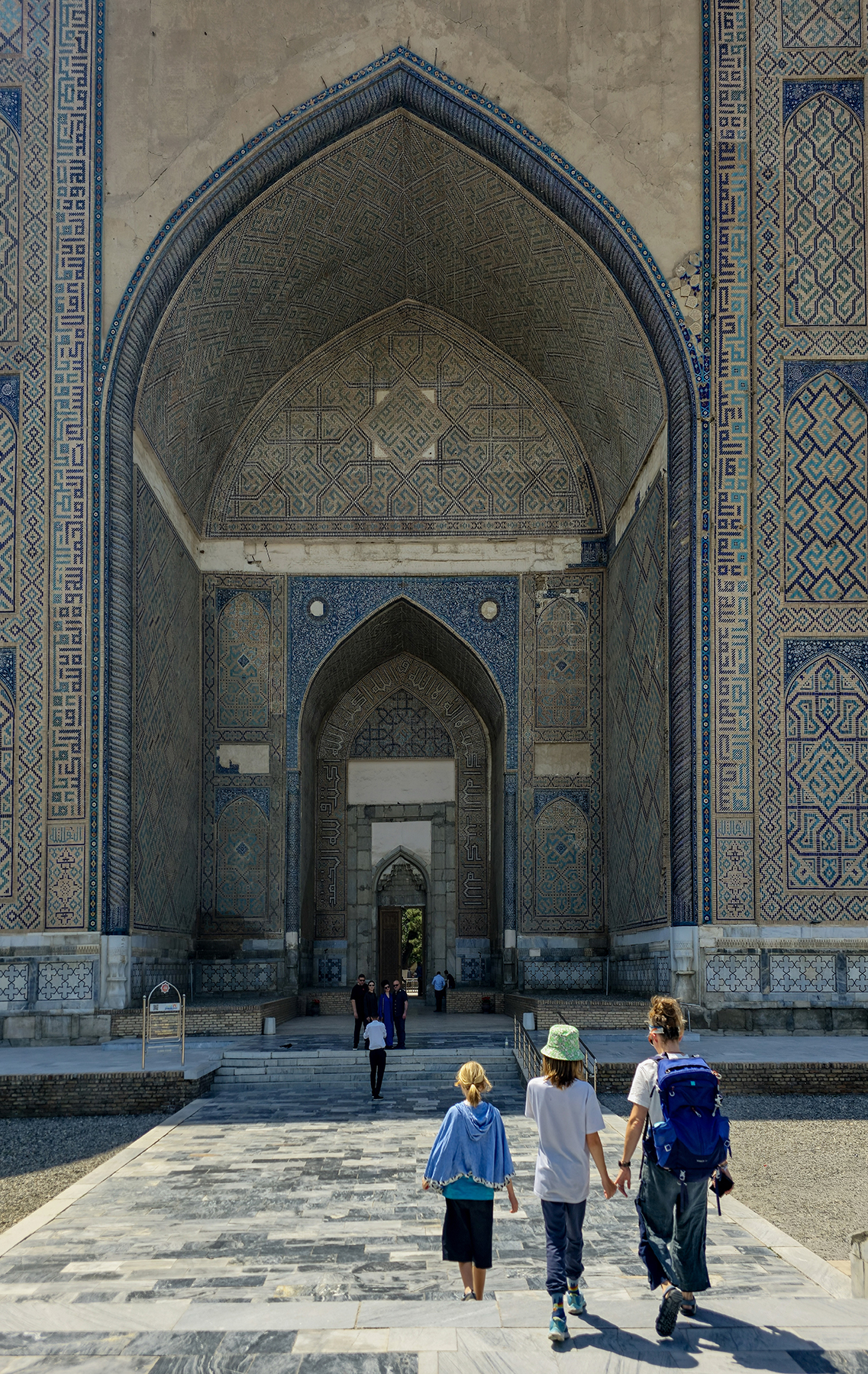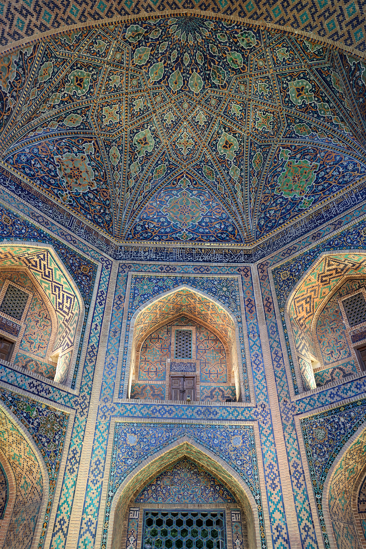 Exquisite blue and turquoise tilework covers the exterior and interior surface of every ancient mausoleum, minaret, mosque, and madrassa in the city. The grandiose size of each structure is difficult to comprehend.