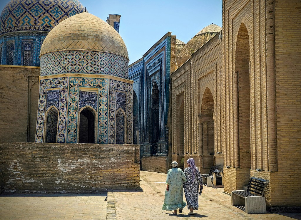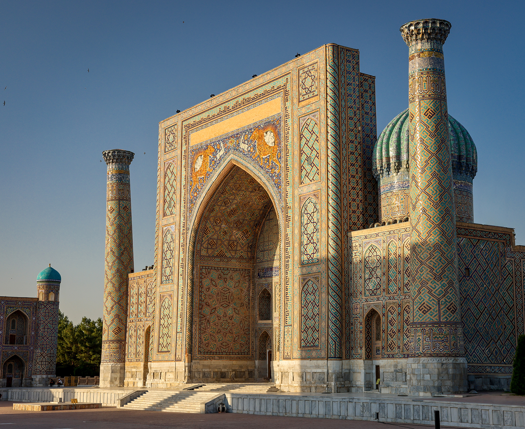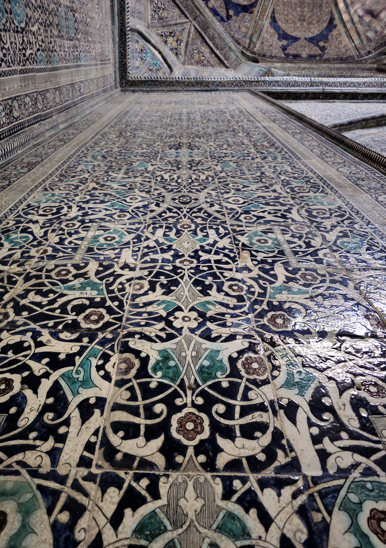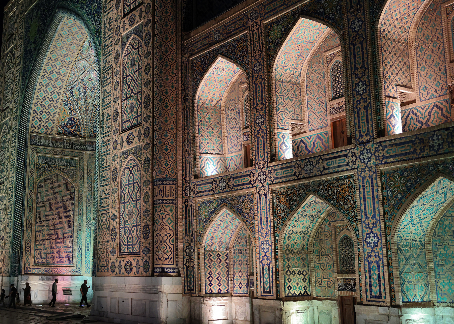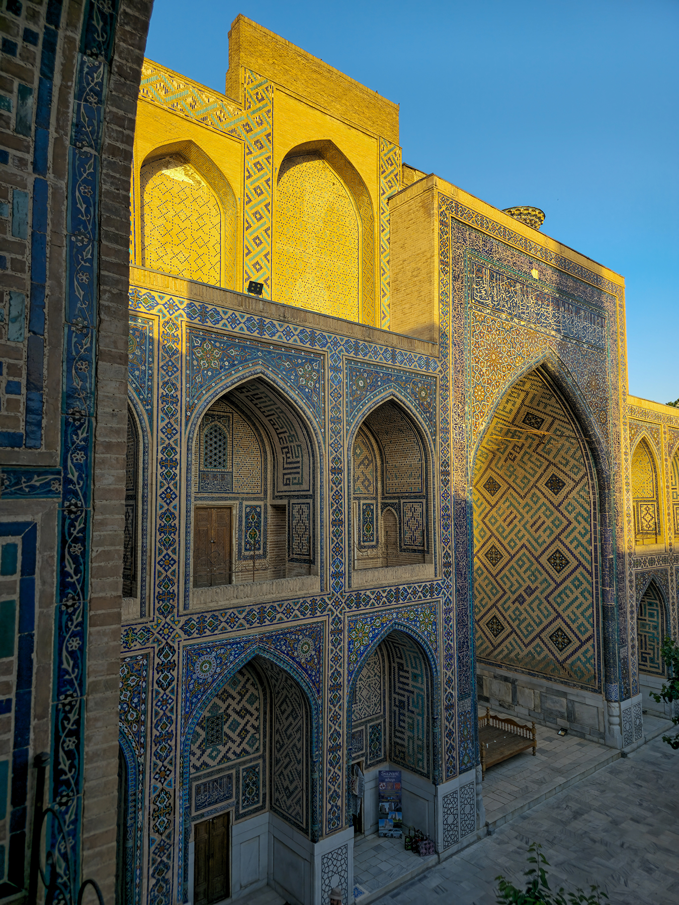 Exquisite blue and turquoise tilework covers the exterior and interior surface of every ancient mausoleum, minaret, mosque, and madrassa in the city. The grandiose size of each structure is difficult to comprehend.