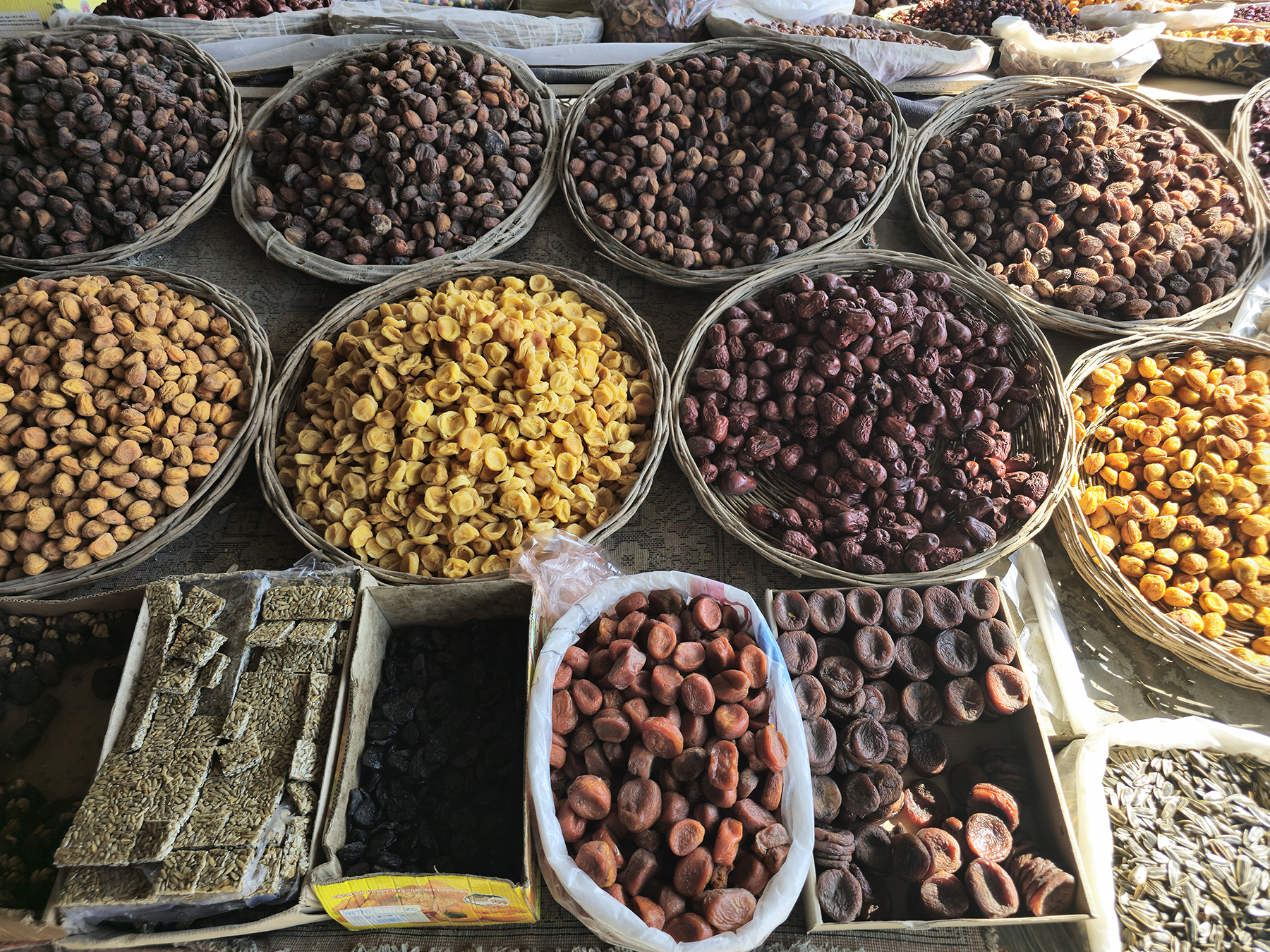 The architecture, preserved and reconstructed in various states around Samarkand, was extraordinary. In particular, I found Registan Square to be the equal of any other ancient site we have visited. Much like our previous visit to Chartres Cathedral outside of Paris, it was fascinating to see the results of modern restoration work on ancient monuments, and to reflect on the centuries-long existence of these structures that have been damaged by earthquakes, destroyed by fires, rebuilt, conquered, looted, and buried. Watching the evening light pass across the facades of the madrasahs was definitely a highlight. The magical atmosphere was unfortunately diminished by the intrusion of a light and music show each evening, featuring garish colors that clashed inelegantly with the serene timelessness of the ancient architecture.