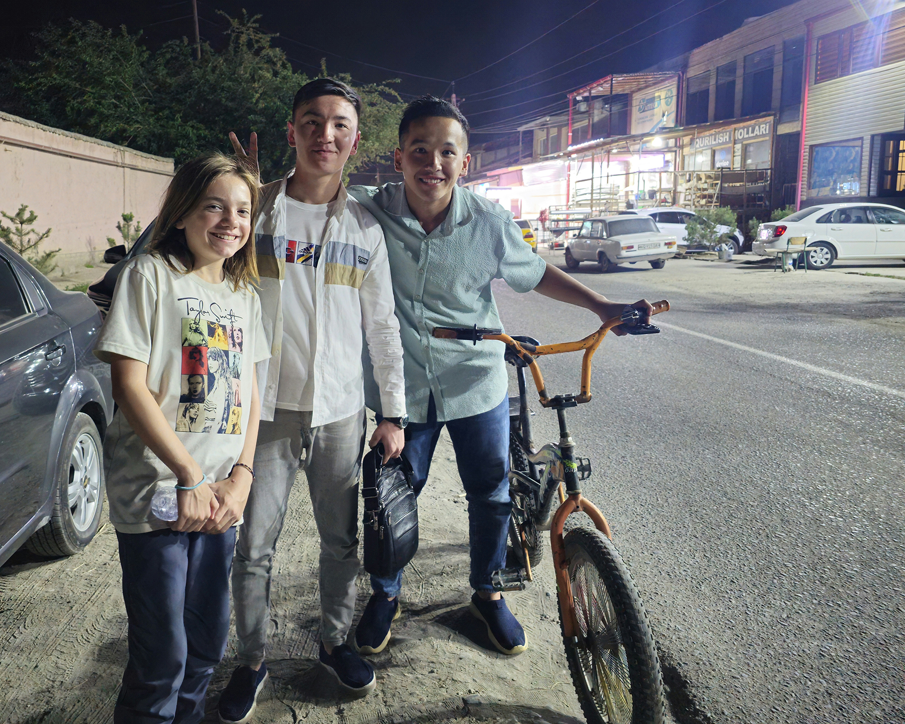It was during these evenings in the Registan Square that we befriended two local high school boys eager to practice their English skills. Our new Uzbek friends, Hasan and Mirjalol, met us each night in Registan Square to chat, ask questions about American culture, and share stories of their own. These conversations were both fascinating and meaningful – we all gained a deeper understanding of the people, history, and culture of Uzbekistan. In fact, by our final night in Samarkand, we found ourselves walking the dusty roads of a remote village, invited into Hasan’s home to meet his extended family! What a rare and special honor. Hasan was convinced we were the only Americans ever to have visited that particular spot in Uzbekistan.