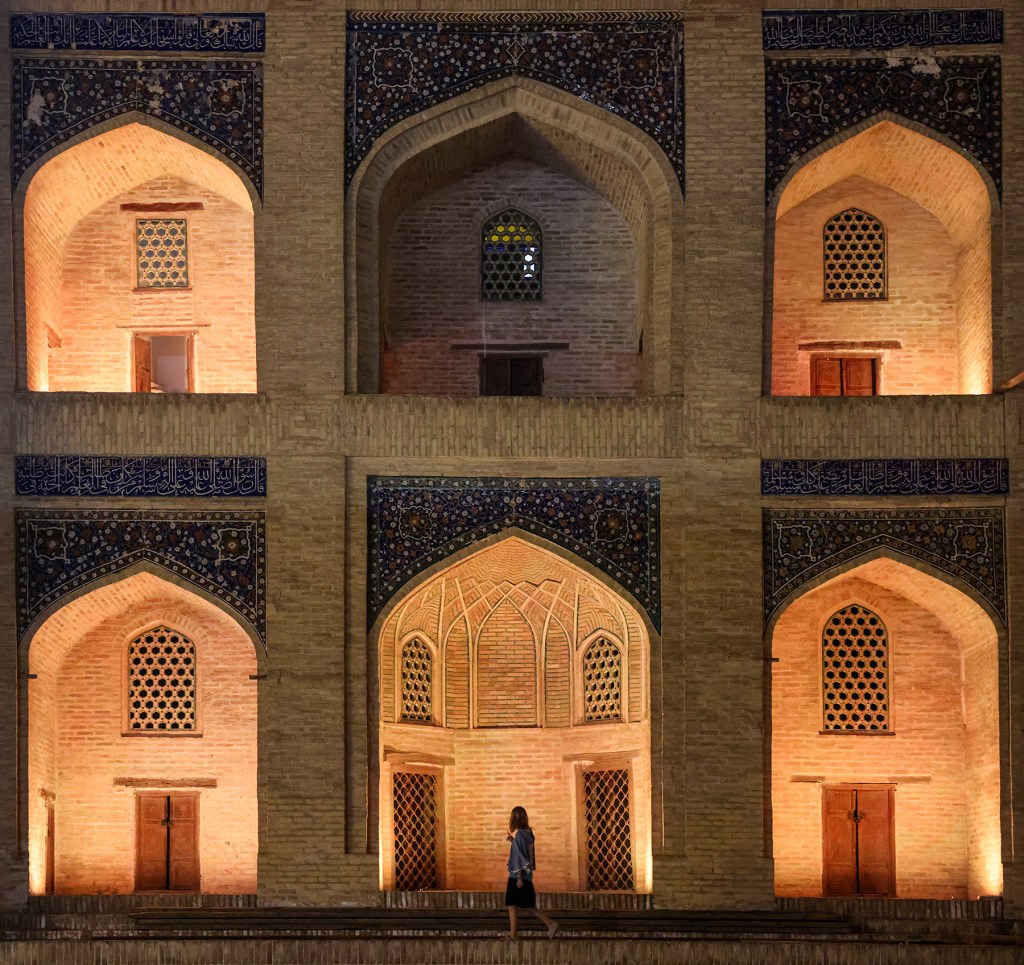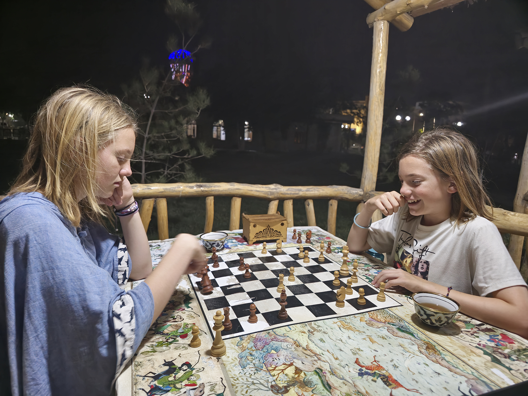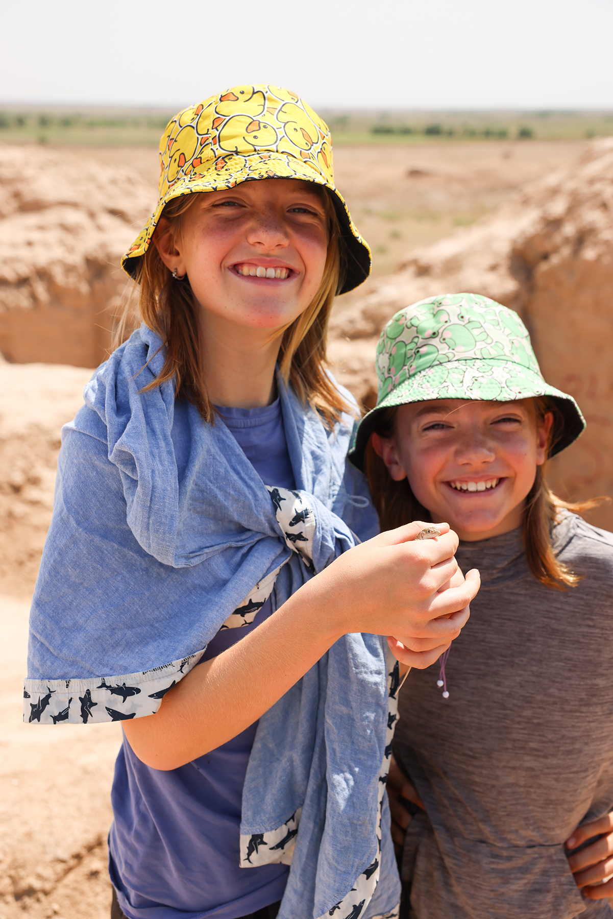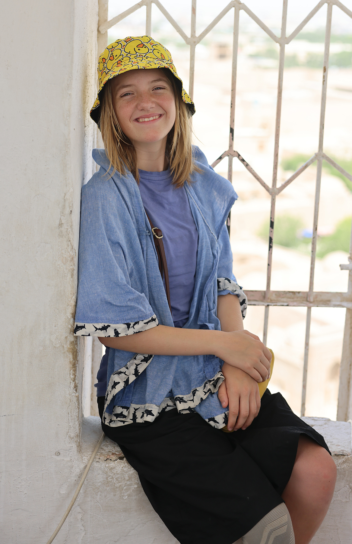 Our family loved exploring the car-free center of Itchan Kala in Khiva, especially during the late afternoon and evenings as the light (and temperature) faded. Some of my favorite moments were spent at our favorite rooftop restaurant, eating plov (a rice pilaf dish) and shashlik (kebabs) as we looked out across the square towards the madrasahs, the enormous unfinished Kaltaminor minaret, and Konya Ark. We concluded our time in Khviva with a final climb to the top of the Islam Khoja Minaret for a sweeping view out over the ancient city.