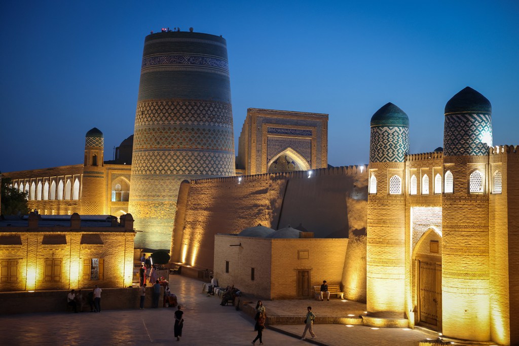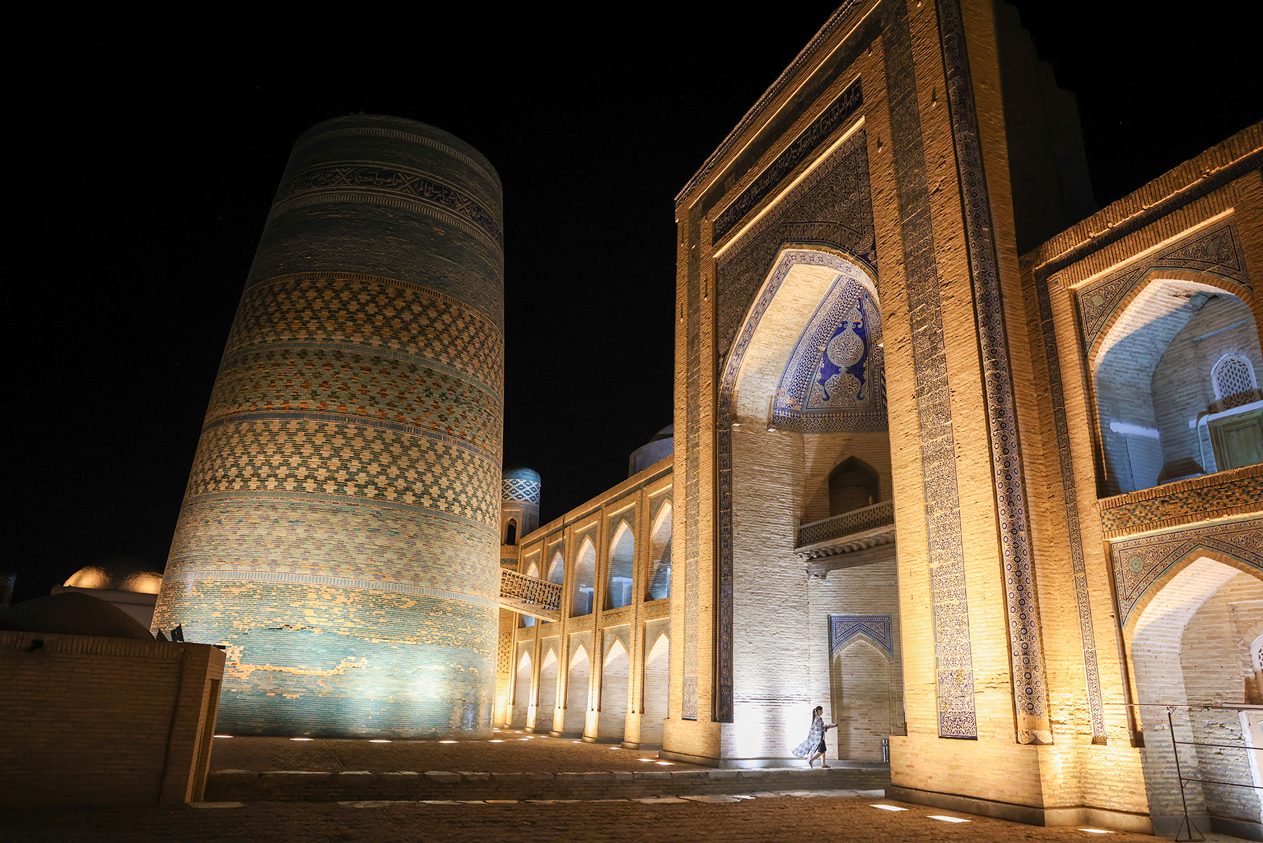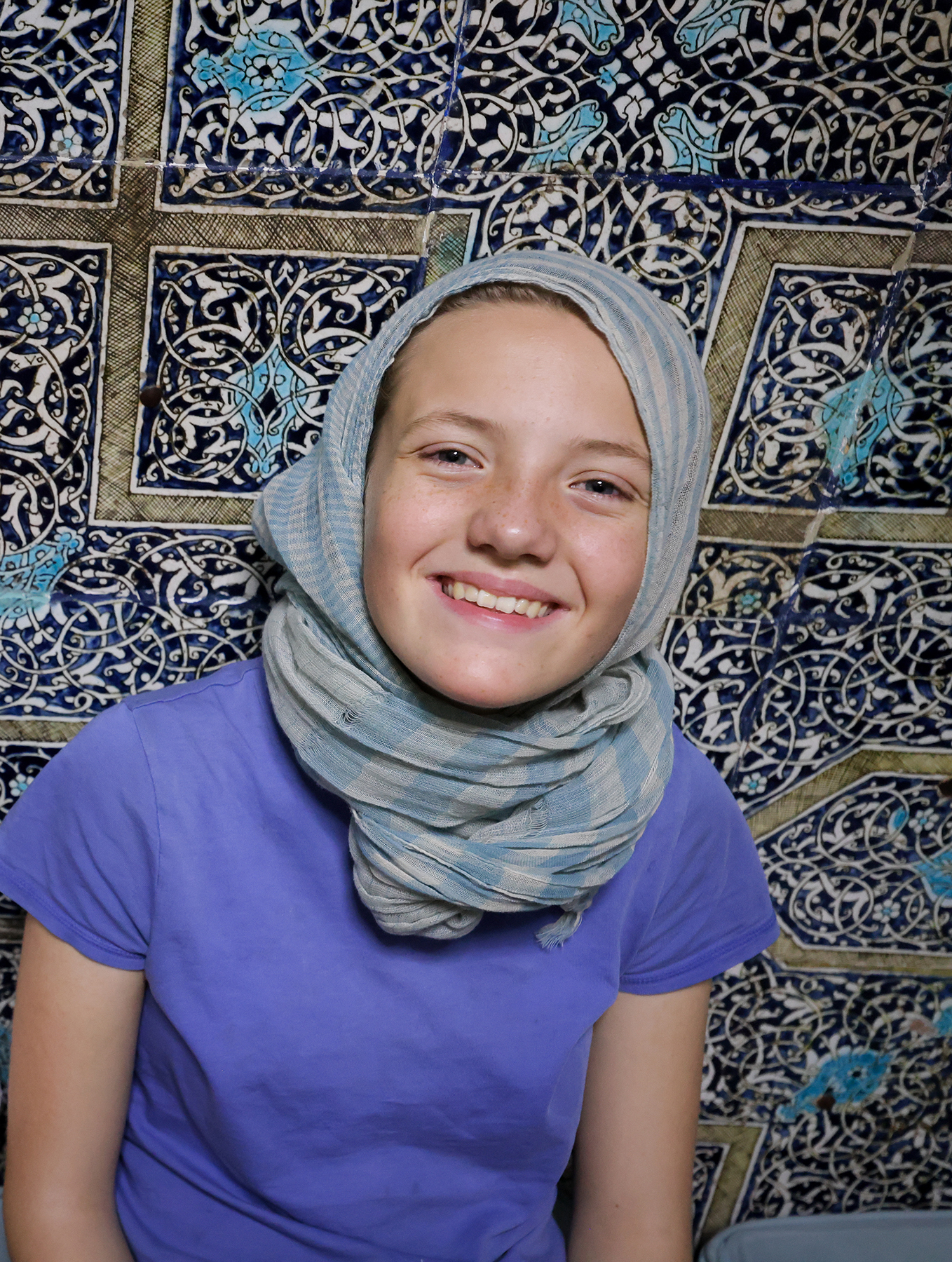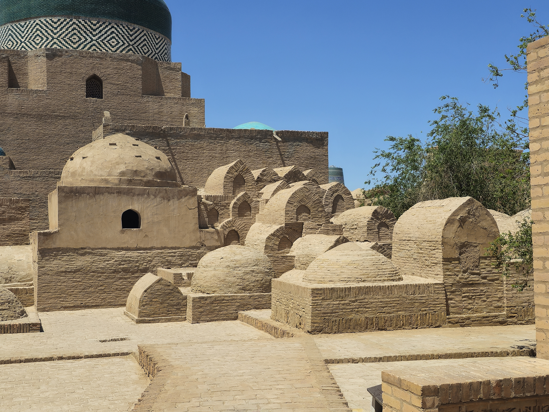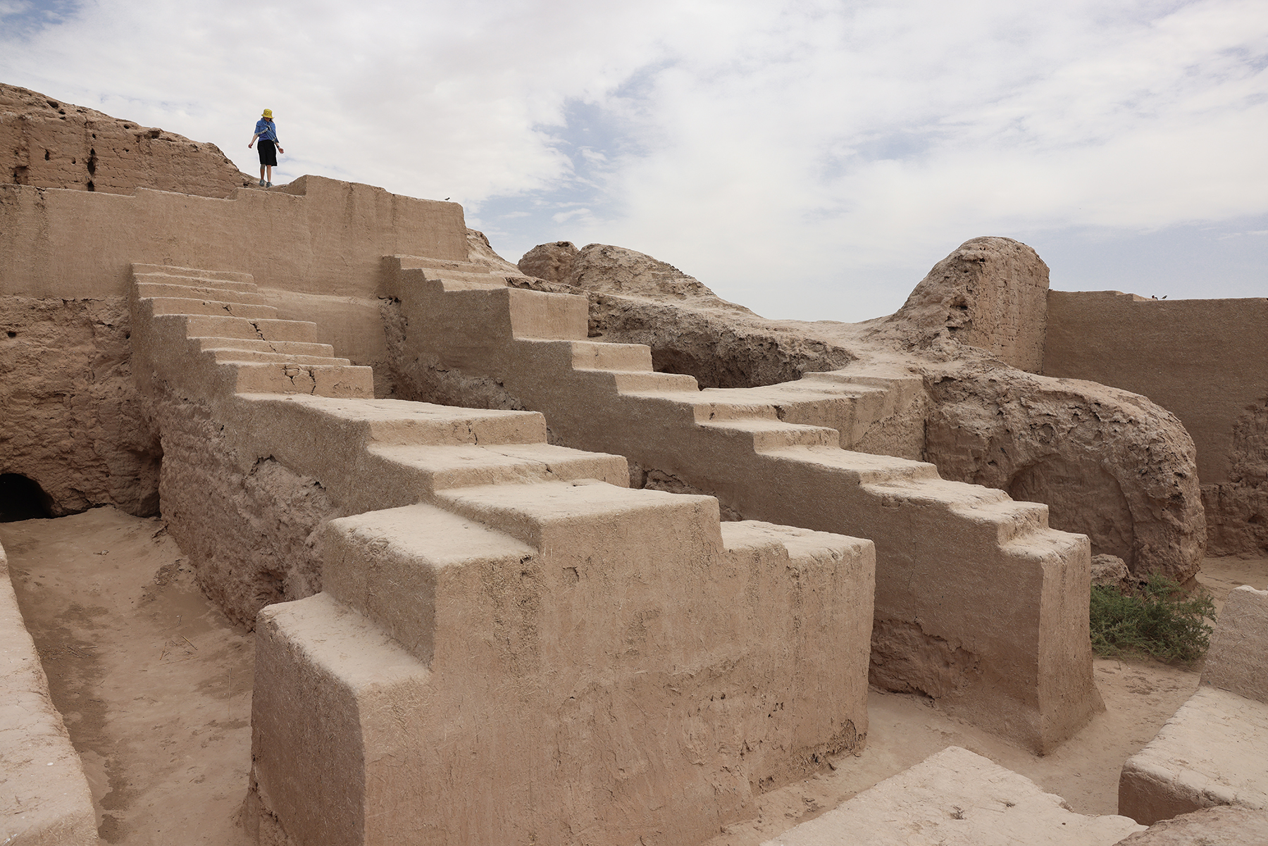 Our family loved exploring the car-free center of Itchan Kala in Khiva, especially during the late afternoon and evenings as the light (and temperature) faded. Some of my favorite moments were spent at our favorite rooftop restaurant, eating plov (a rice pilaf dish) and shashlik (kebabs) as we looked out across the square towards the madrasahs, the enormous unfinished Kaltaminor minaret, and Konya Ark. We concluded our time in Khviva with a final climb to the top of the Islam Khoja Minaret for a sweeping view out over the ancient city.