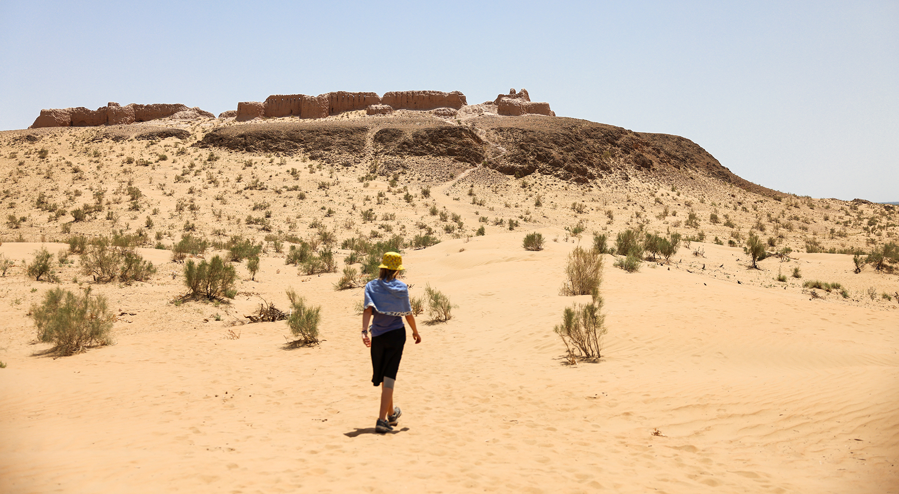 Exploring the ruins of the ancient Khorezm fortresses of Karkalpakstan was an intense experience due to the oppressive heat. We were thankful none of us passed out as we trudged through the desert, hot sand scalding our feet, as we made our way along faint trails to the archaeological sites. We saw very few other people throughout the entire day, with desert lizards far outnumbering other visitors to the ruins. It was a big change from our time in Japan to find ourselves as the only people exploring several of these ancient structures, some of which date back more than 2500 years. Looking out across the vast, empty desert landscape, it was easy to visualize the history and experiences of the inhabitants of these ancient outposts.