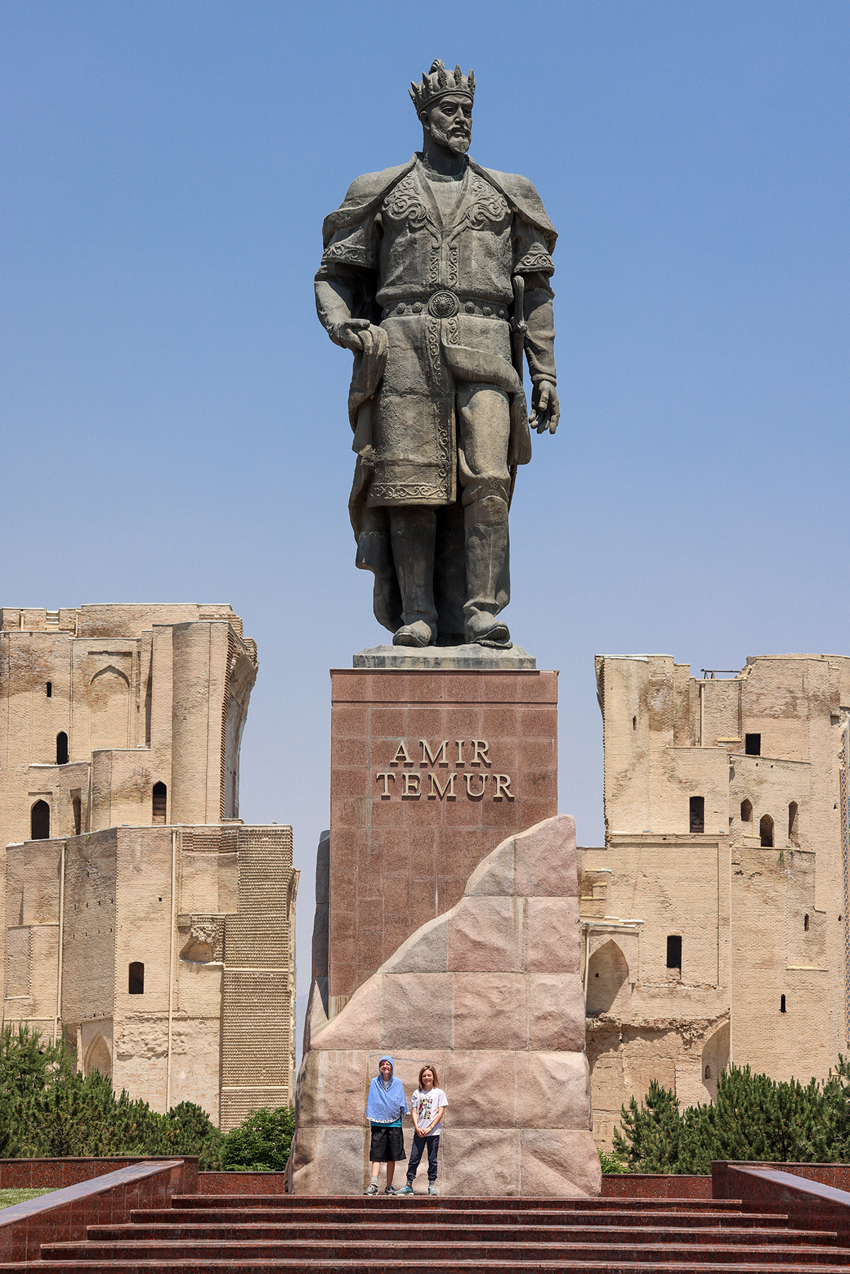 We quickly learned that much of Uzbekistan’s national identity is tied closely to the brutal military commander Amir Temur (also known as Tamerlane), a cruel conqueror who idolized Genghis Khan and established the Timurid Empire to cover much of the Asian landmass, including Central Asia, portions of Iran, Iraq, parts of southern Russia, and even parts of the Indian subcontinent. The Timurid Empire flourished during the years 1370-1507 and was notable for launching the “Timurid Renaissance” which included amazing advancements in math, astronomy, and sciences. These innovative advances in thought then spread west along the Silk Road, towards Rome – inspiring the more commonly recognized European Renaissance.
