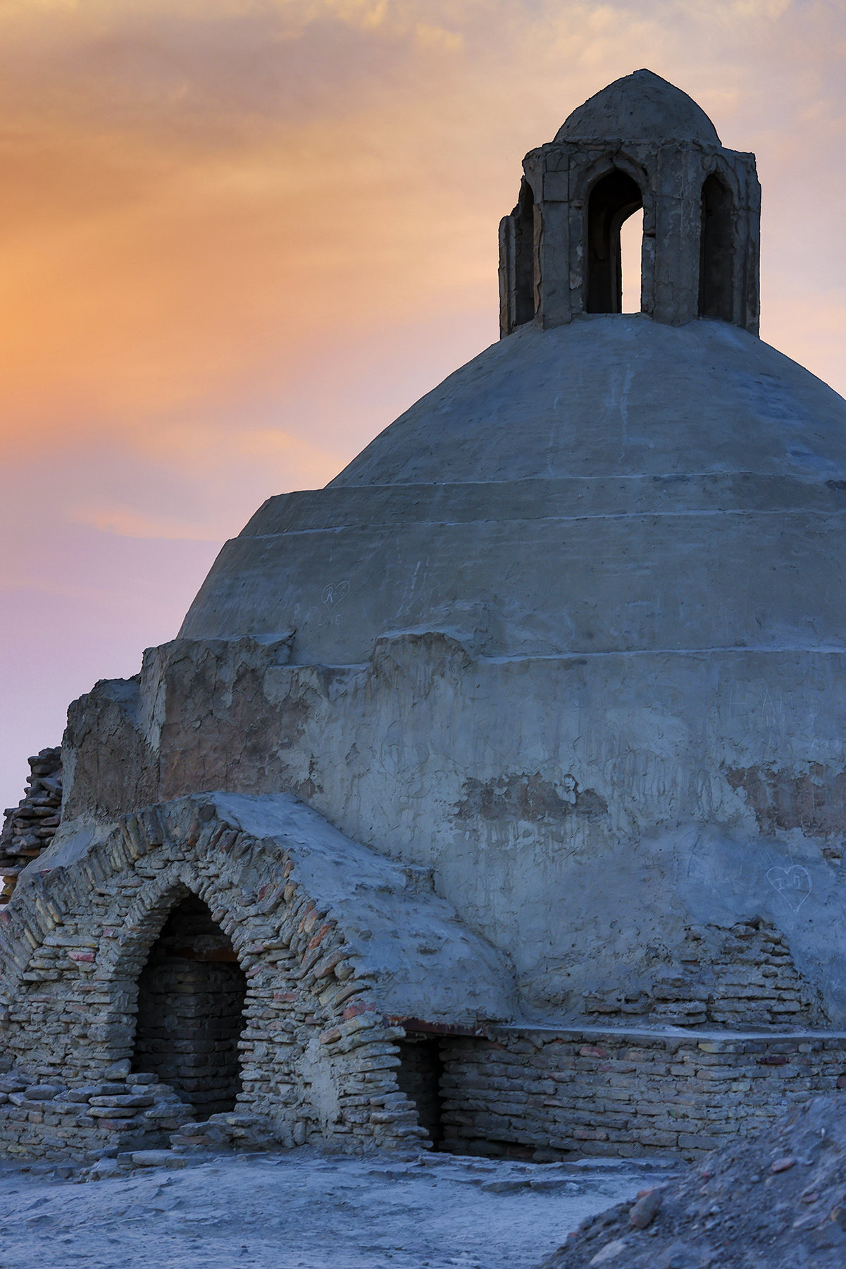 It was here in Khiva we decided to venture out into the desert to visit a number of ancient fortress outposts. To accomplish this plan, we hired a driver for a day to explore the widely dispersed ruins in a white Chevy Cobalt sedan. This was unsurprising, as 90 percent of cars in Uzbekistan are Chevrolets, and 80% of them are white, with the white Chevy Cobalt being the most popular model by far! We found it both amusing and terrifying to be surrounded by a sea of white Chevy Cobalts as our driver aggressively careened and swerved through the city streets as we exited town.