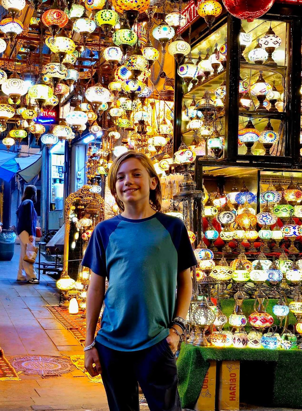 As we sat on the carpet I was just amazed how this just took seven years to make it would take us today 30 years like that is insane. We sat for as long as we could until the call to pray was on and we needed to leave. We then went to dinner at a beautiful cafe that we got up to by using a sketchy elevator without a door. But the food was sorta mid. We then went to something I was looking forward to, The spice market. This market is hudge and has tons of different teas and spices. I “politely borrowed some treats and drank some teas. My parents decided to get a mango saffron tea and dried fruit that I did not drag them into by taking 1 to many samples. It was like winding through a maze of shops in the best way 10/10.