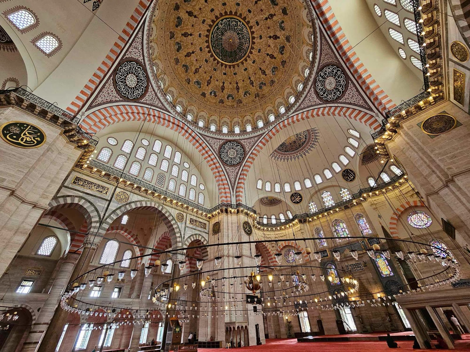 So at last Suleiman the magnificent leader of the majority of the Islamic world at the time started to cry about what a tragic thing he had to do. He made this mosque in his kids honor. Shortly afterwards his most beloved wife died and the country was now led by the only kid that was left.” That was a brief glimpse into the whole story but let’s talk about the present right now. Before we entered this giant mosque I needed to change into long pants and a button up shirt and MB and my mom needed to wear headscarves inside. When we entered we could see giant prayers written on the walls. Each Arabic word is spelling out different prayers.