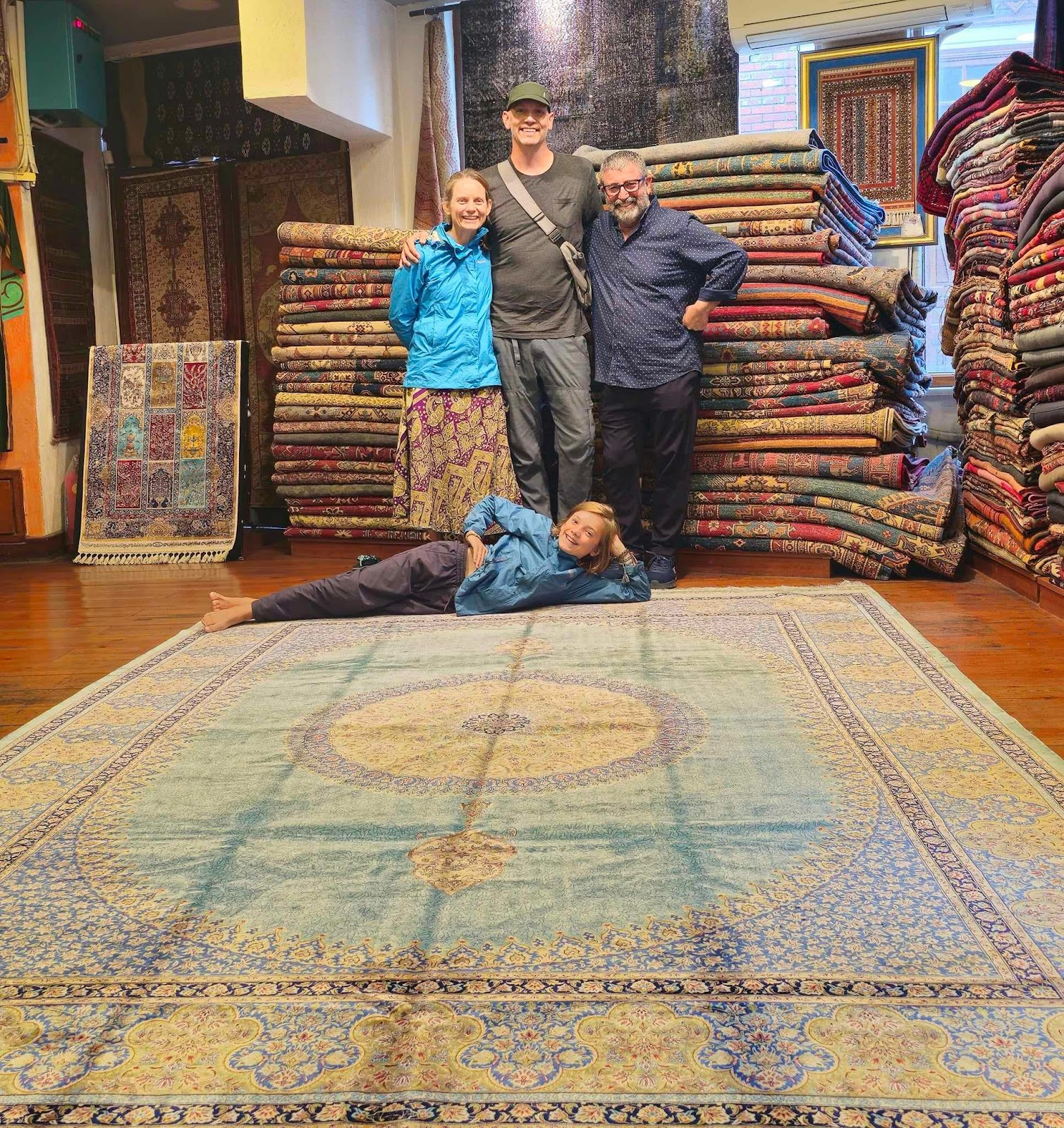 Today we went to an underground water holder called the basilica cistern. This cistern still has around 3 inches of water on the ground so you get a really cool reflection of the columns. These columns were re-used by the Romans; they were found all over Türkiye so the ancient Romans used them to build the cistern. We also found out that they found a Medusa statue in trubble so that is displayed here too. After the cistern we got sucked into a carpet shop where they were very keen on the idea of us buying a 5,000 euro carpet. (We clearly decided).