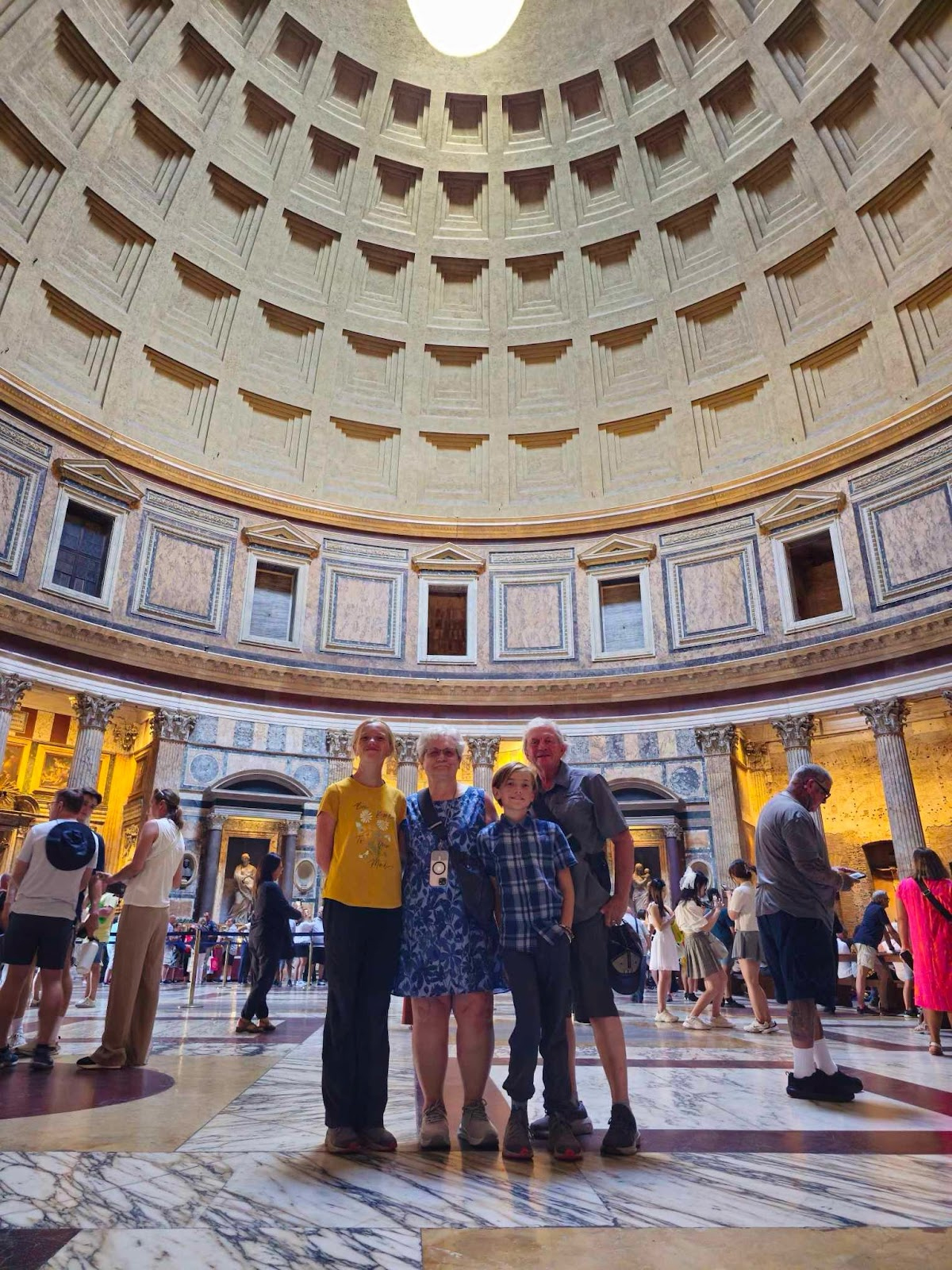 We had a short travel day in which we took a bus and a train and now we are in Rome. When we got back we were all sweaty and exhausted. Evian with my moms parents we took a golf cart tour, my mom made a huge mistake by at the beginning asking to see “All of Rome” which would literally take centuries. But at last he took us on a 5 hour tour that was meant to be 2 hours after our long travel day. I loved the tour. It was mainly going around ancient Rome like the outside of the coliseum and “The circus Maximus” which was epic. After the long tour he had a surprise for us, he got us tickets to go inside the Pantheon!! Wow that is amazing, we went inside and it was even bigger than the Duomo in Florence. It was stunning. When we got back we Collapsed on the beds and fell asleep.