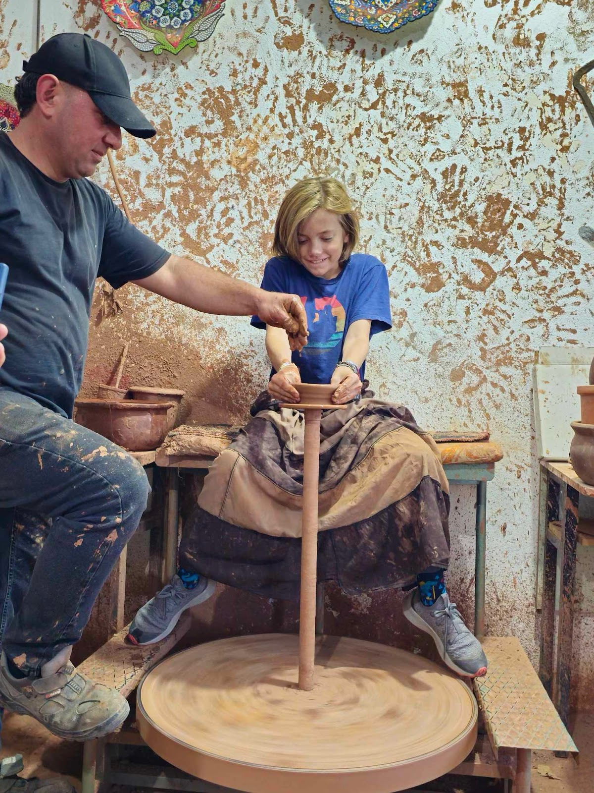 You know what is not so epic is my ridiculous mom she never buys anything extra but then she buys a ring in turkey like what? We teased her for a while afterwards. We then went to a restaurant that had outdoor seating above apple trees with fresh apples. The food was good and the apples were a nice dessert. We made many tiny stops at viewpoints. We also went to this amazing pottery shop where we got to make our own pottery on a spin wheel. I had been looking forward to doing this and I loved it. We even got a small hot air balloon to be nice because the shop owners kept it open extra late for us.